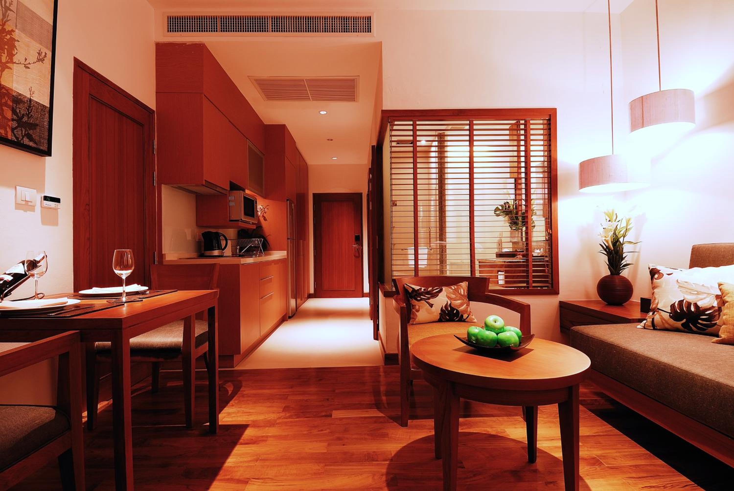 Escape the city to the peaceful Woodlands Suites Serviced Residences - SHA Extra Plus, offering 74 luxurious studios and apartments, each with a private balcony and teak wood flooring.