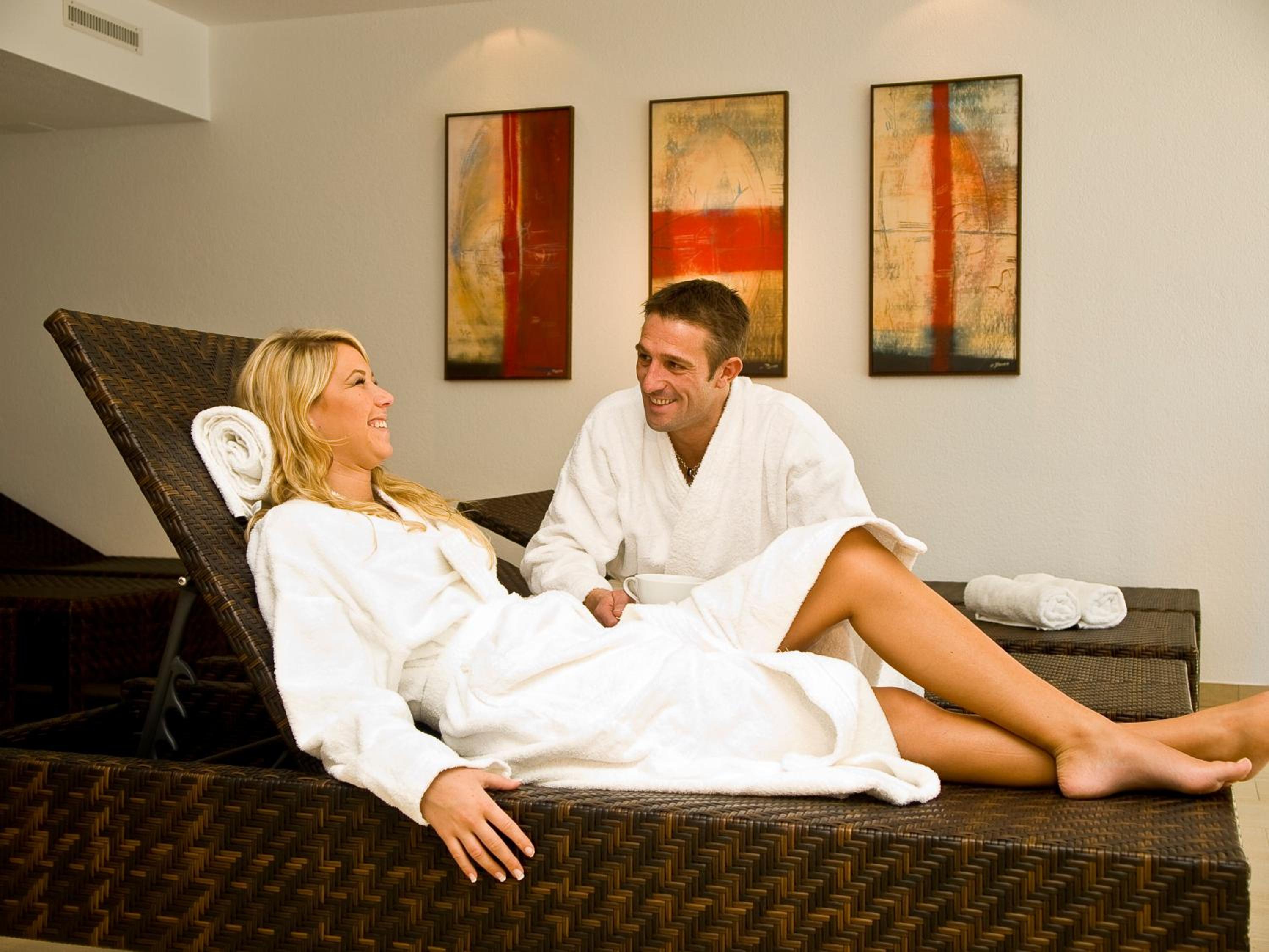 Indulge in relaxation at the Alpenstern's spa area, featuring a sauna, steam bath, infrared cabin, and a serene relaxation room.