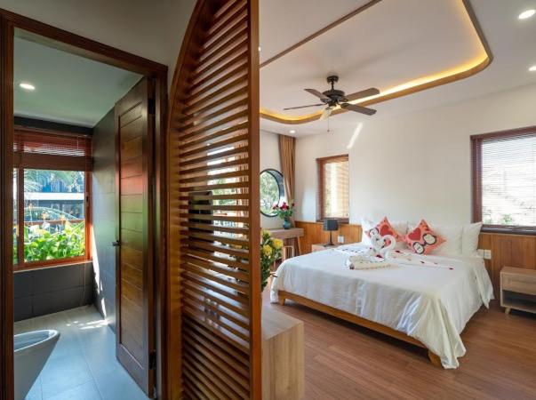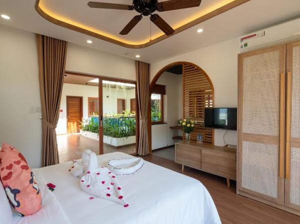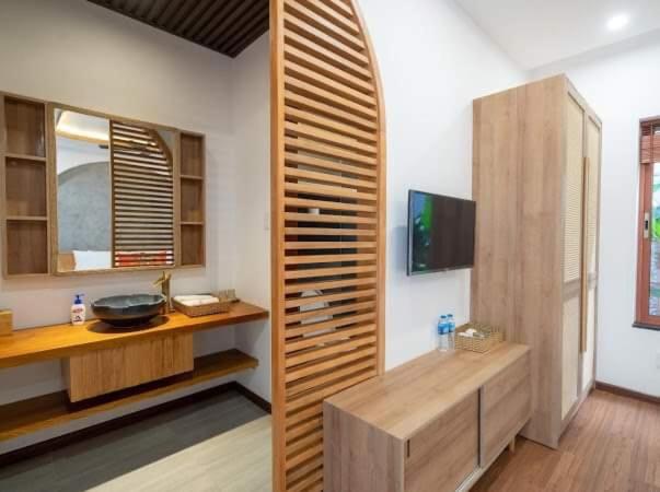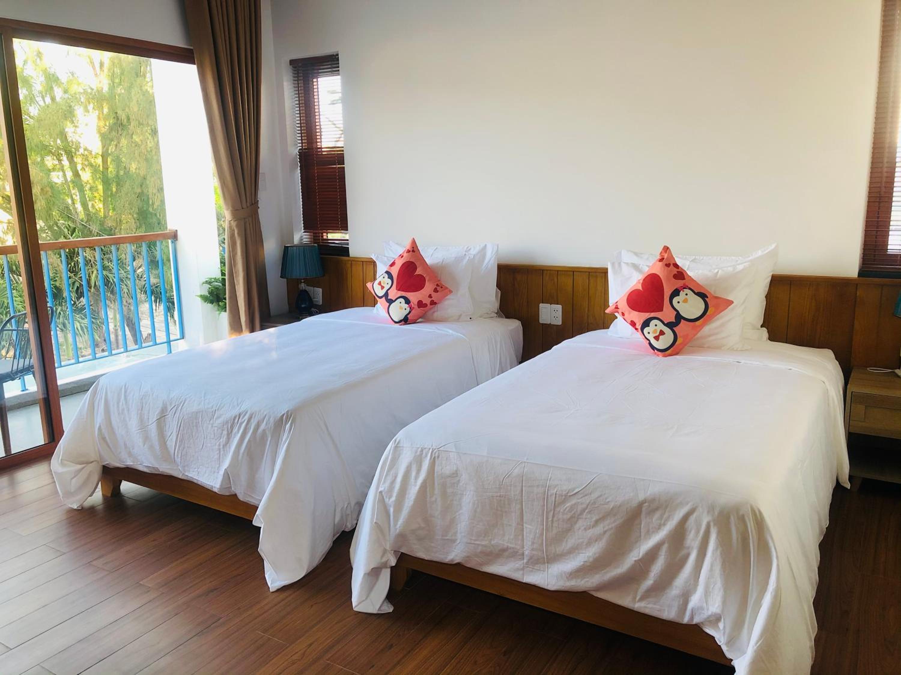 Wonderful homestay! Super clean modern yet tasteful Vietnamese designed building. The room has lovely bedding, modern bathroom and balcony. Great breakfast, beautiful pool, with only a few minutes walk to a nice sandy wave beach and restaurants. The owner of the villa has an excellent seafood restaurant on the beachfront. You can stay on her banana lounges for free if staying here.