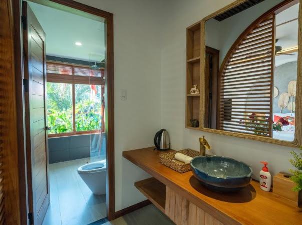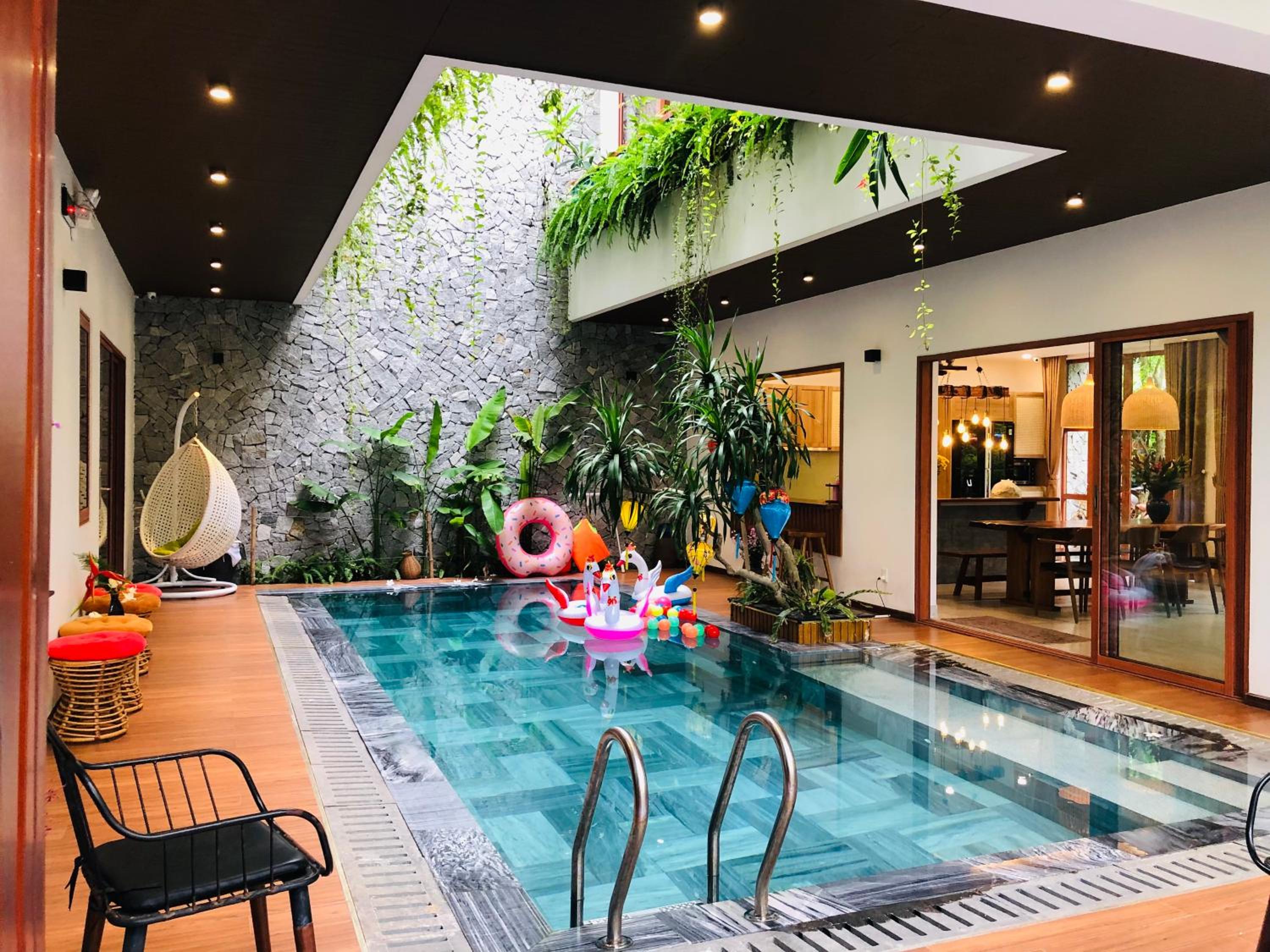 An Bang Sunset House offers a luxurious experience with its outdoor swimming pool, free bikes, and lush garden for guests to enjoy. The sustainable homestay provides a tranquil setting for a relaxing getaway.