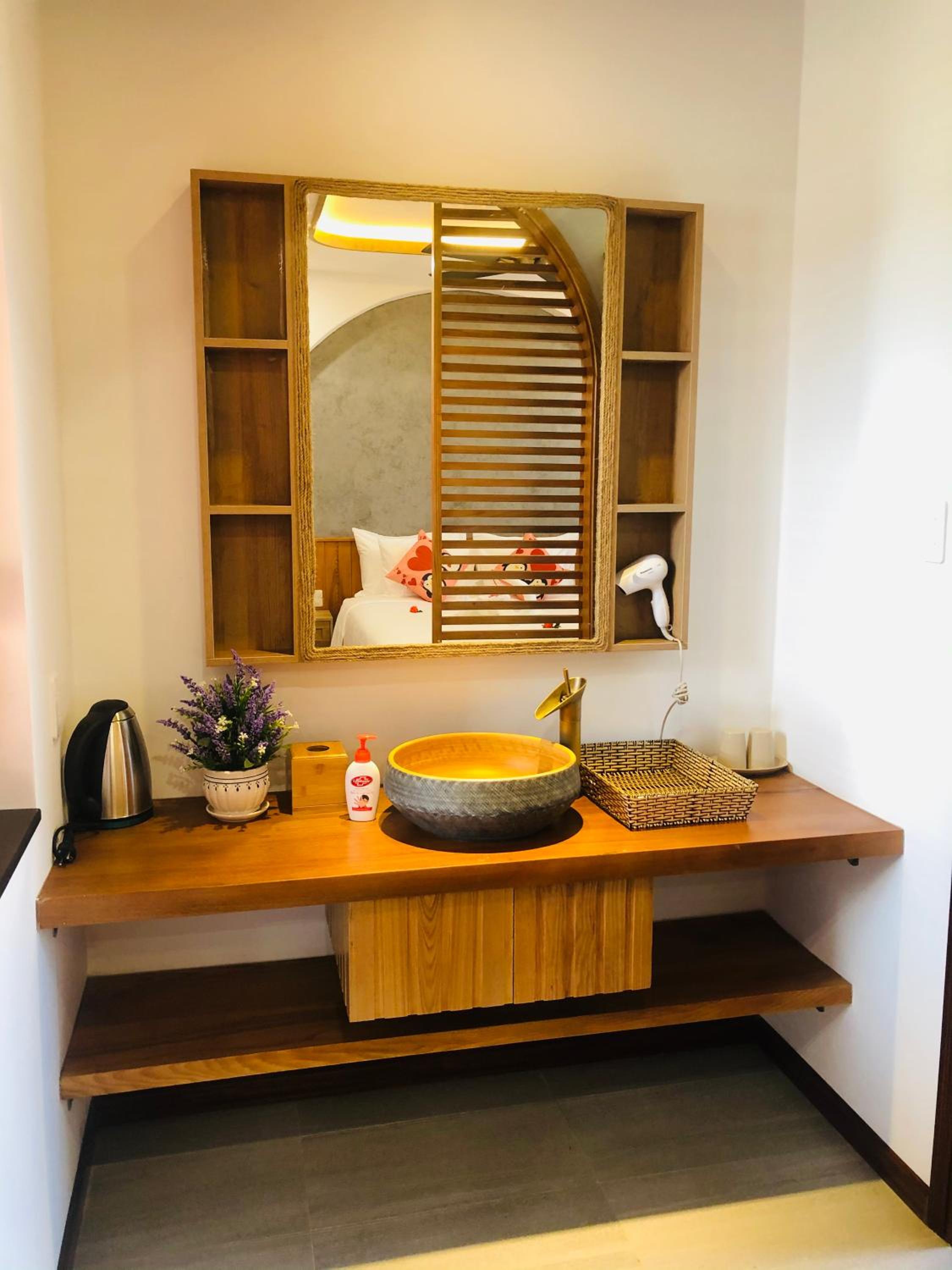 Each unit at the homestay is thoughtfully equipped with modern amenities such as air conditioning, flat-screen TVs, and private bathrooms with a hairdryer. Some rooms even feature terraces and pool views, ensuring a comfortable stay for all guests.