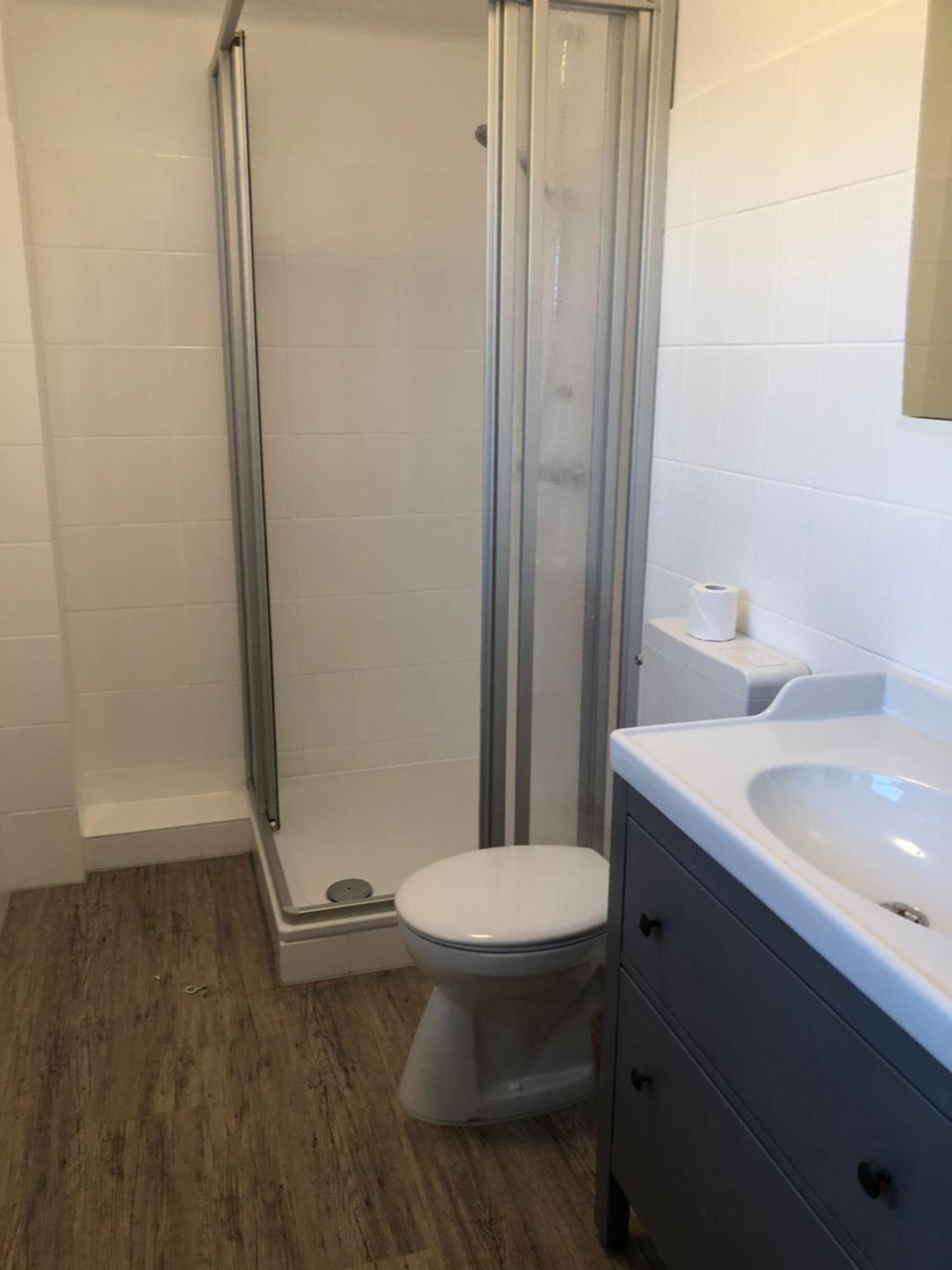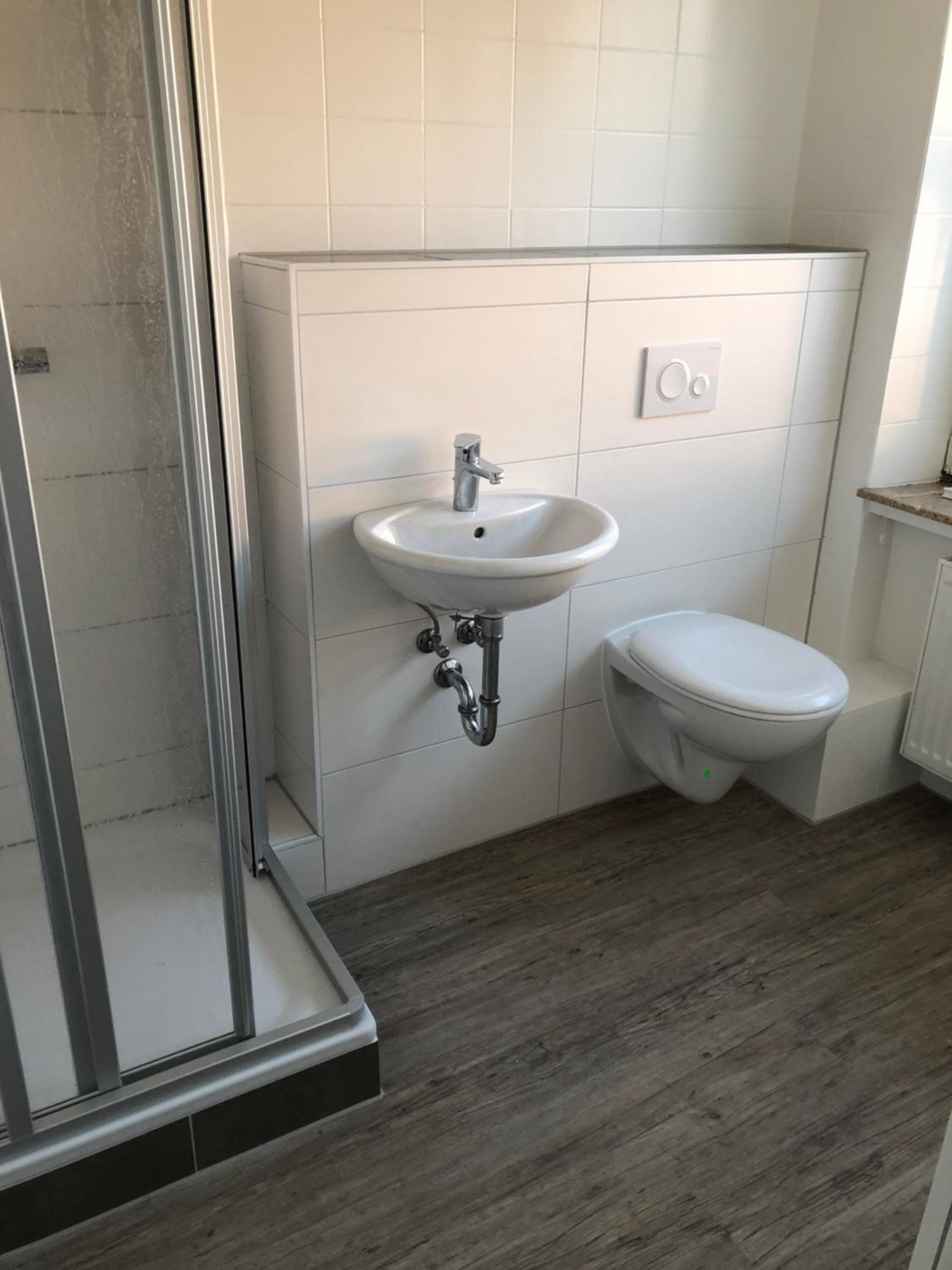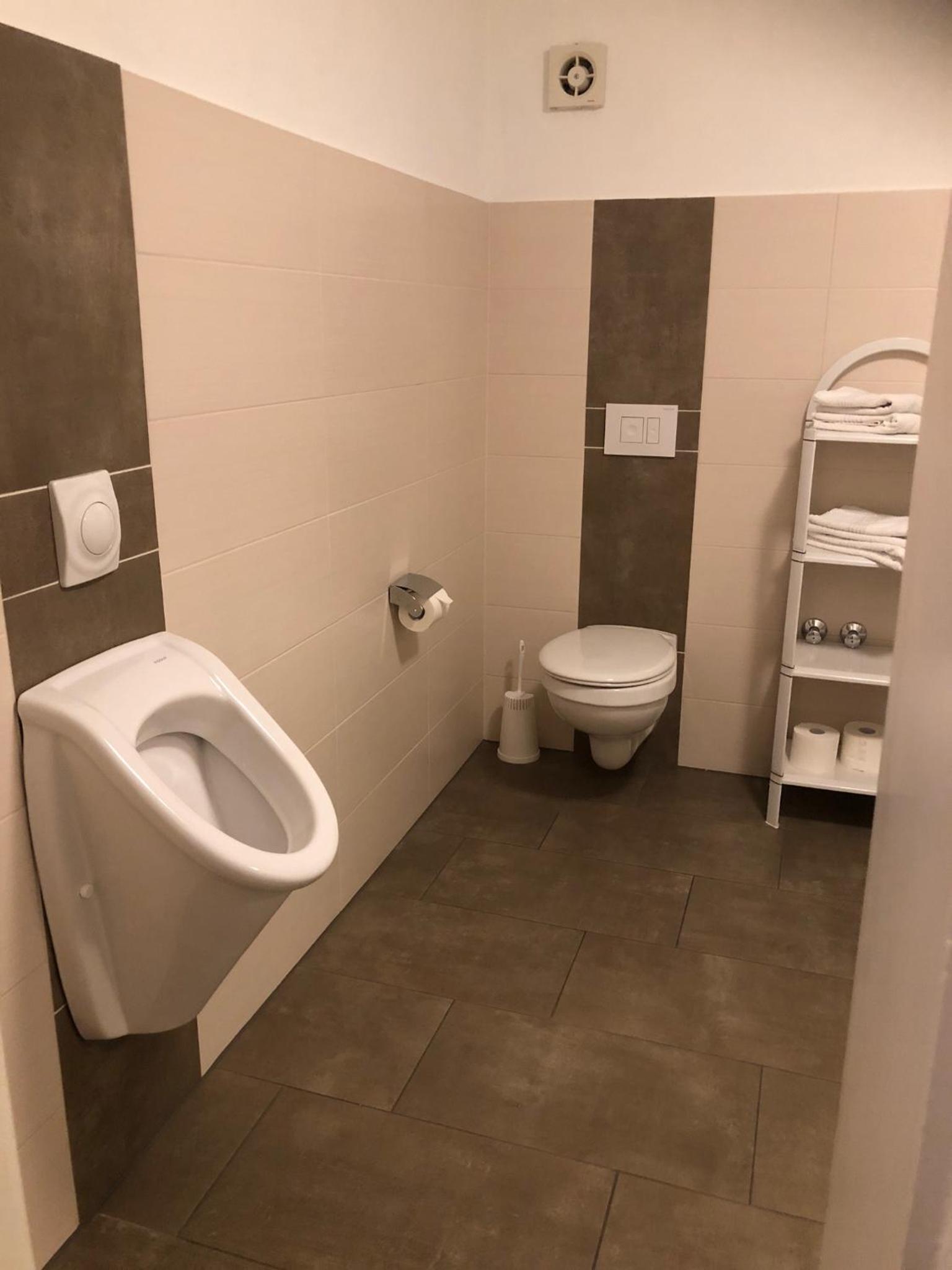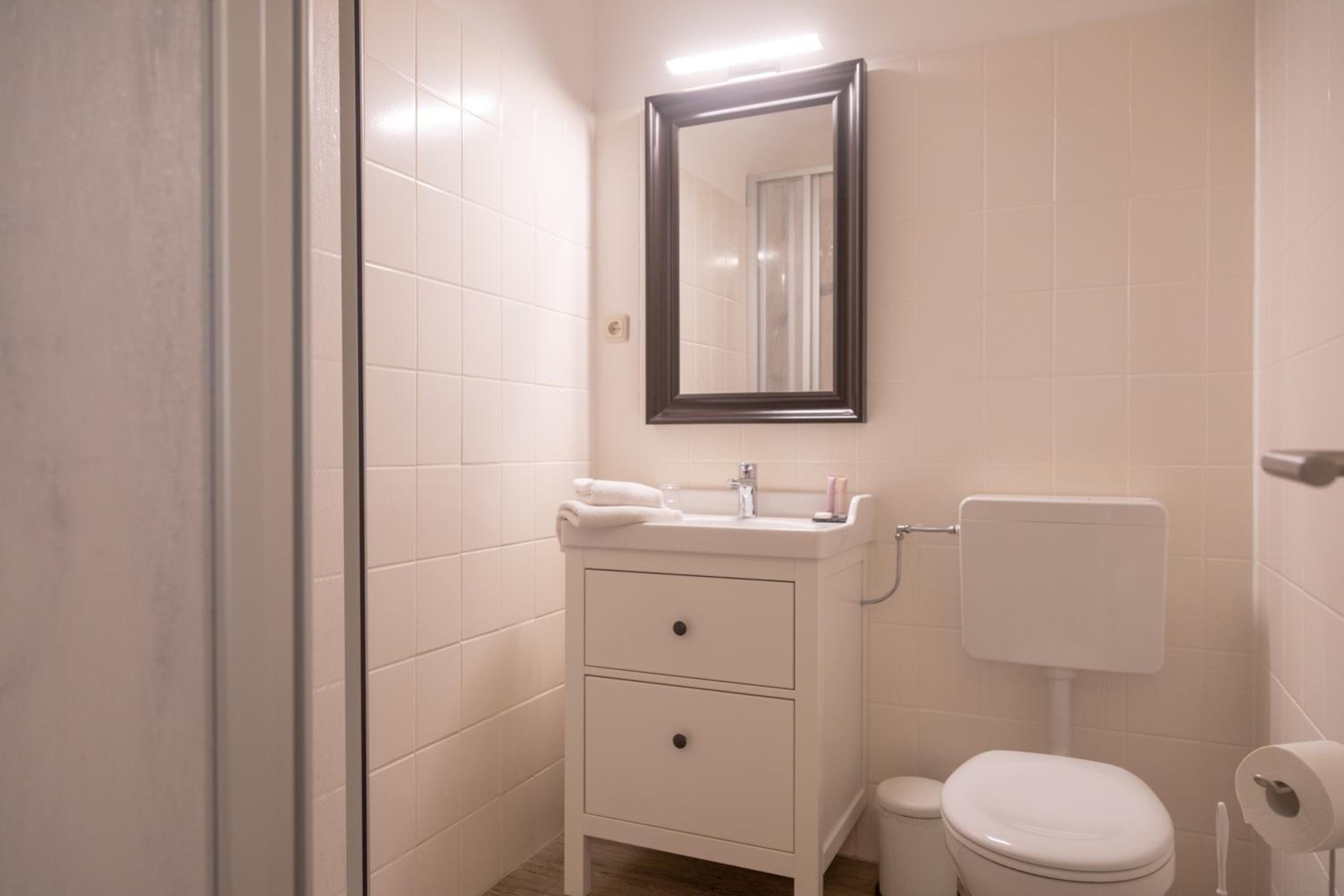 Badezimmer ohne Handtuchstange.