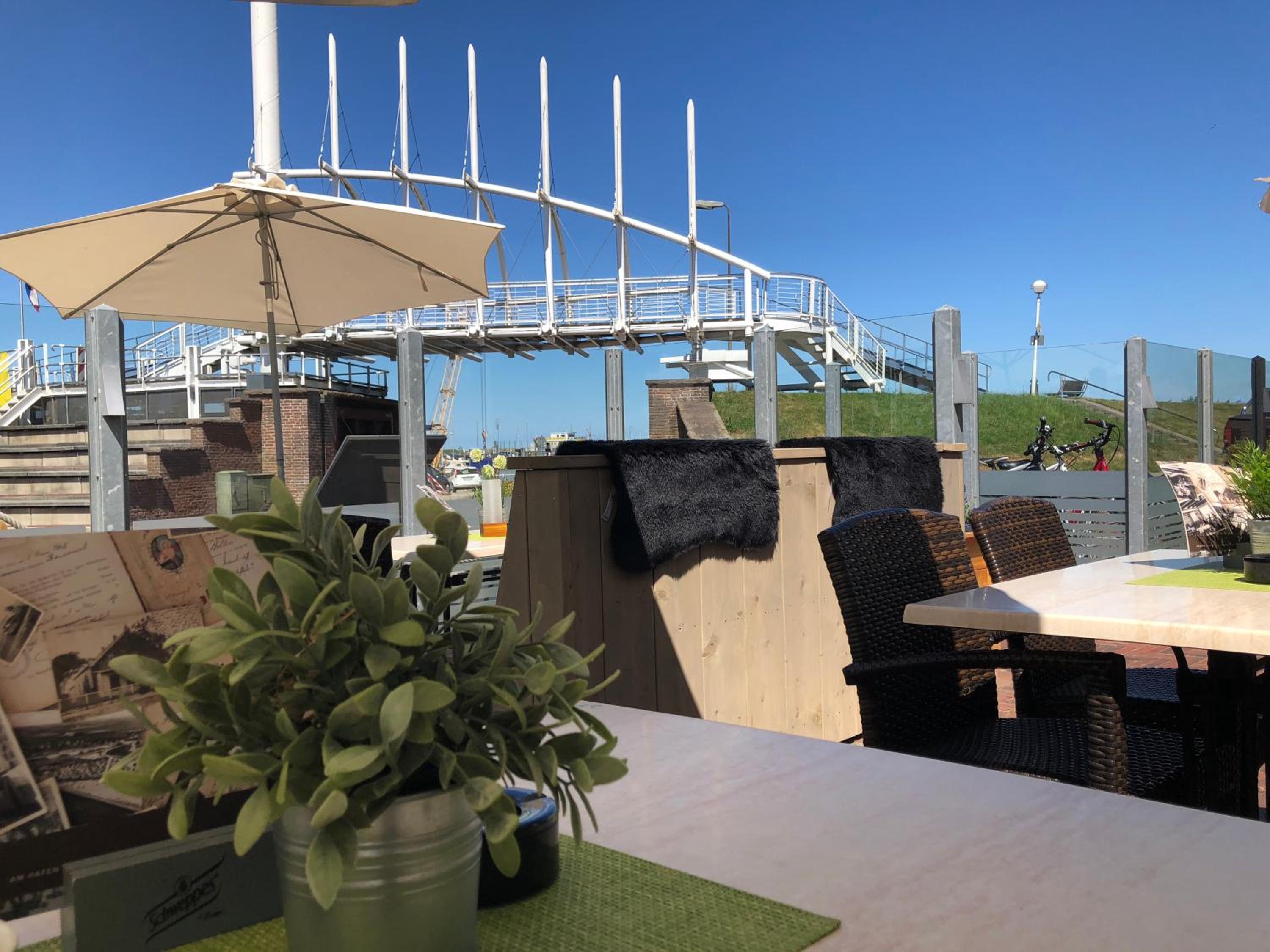 Das Hotel liegt quasi direkt an der Hafenmauer. Zentraler geht es nicht. Restauramts und Geschäfte (die paar, die es in Bensersiel gibt), liegen nahebei. Nur wenige Meter zu laufen. Das Frühstück ist durchaus gut. Immer frisch und alles notwendige vorhanden.