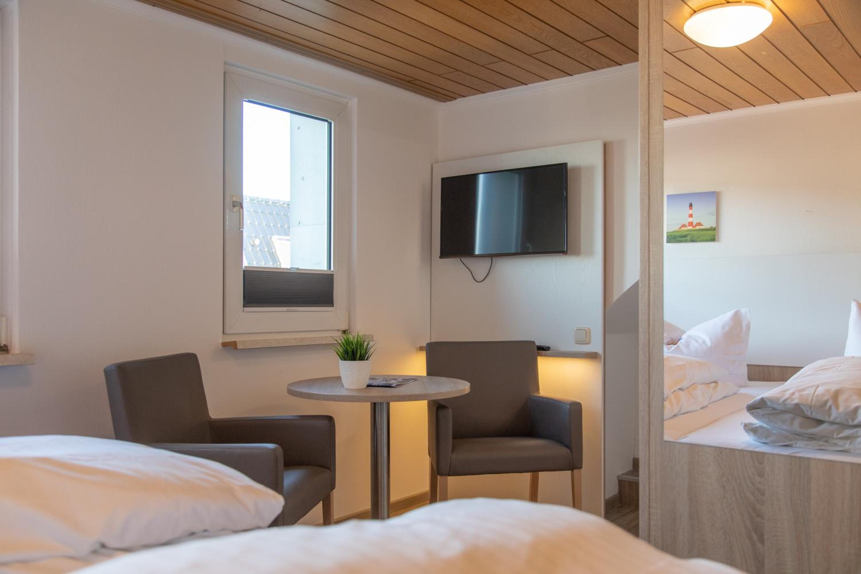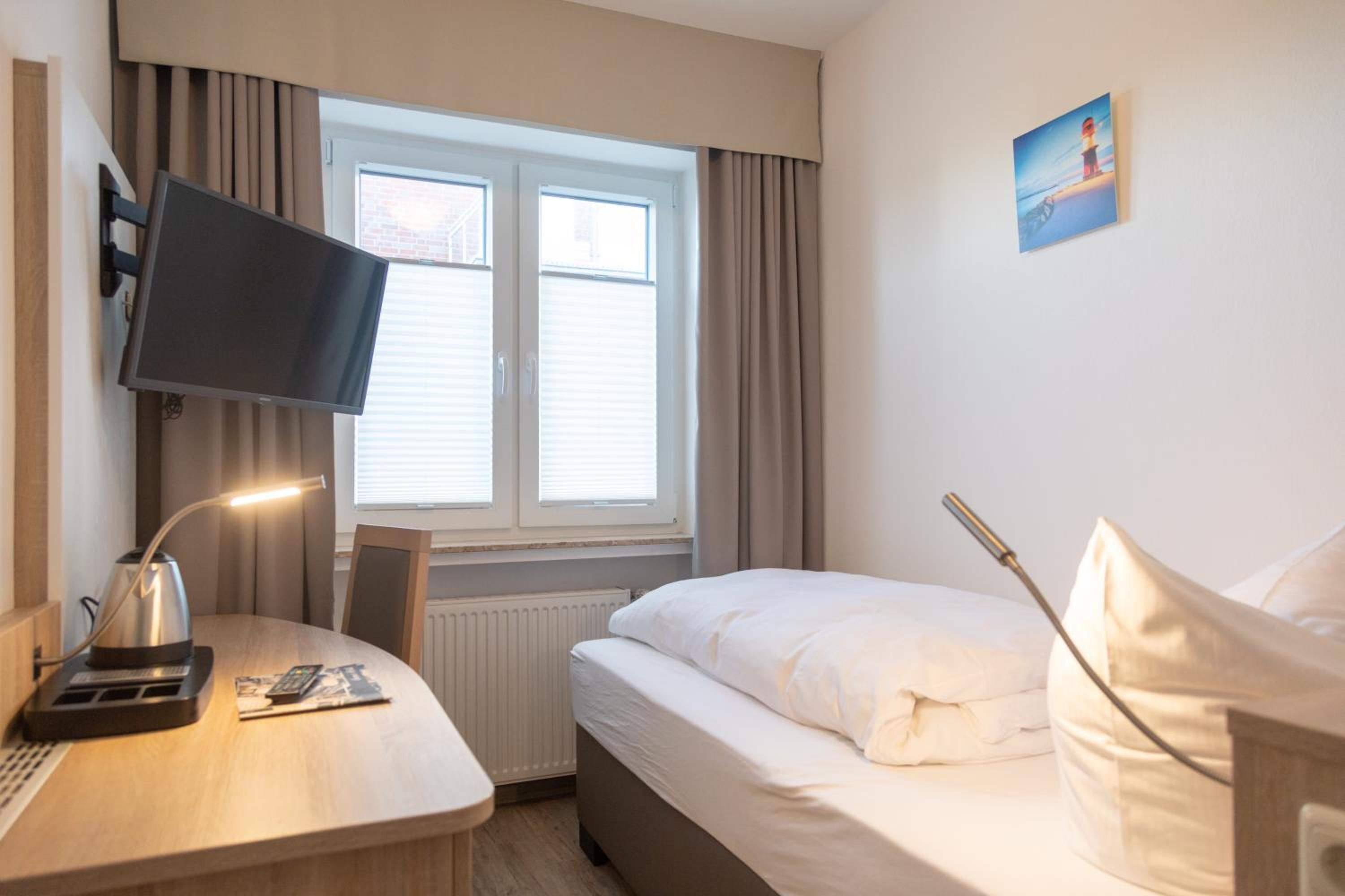 Das Frühstück bestand aus einem sehr umfangreichem Buffet. Vom ostfriesischen Schwarzbrot über verschiedene Brötchen und Croissant, Rührei mit Speck, bis hin zu kleinen Schälchen mit Fischhäppchen, Obstsalat oder Quark Speisen. Zimmerreinigung erfolgte jeden Tag. Das Hotel ist direkt am Hafen und trotzdem sehr ruhig gelegen. Es liegt zentral in Bensersiel, von wo aus alles fußläufig zu erreichen ist. Eine Parkmöglichkeit besteht hinter dem Haus durch eine steile Abfahrt.