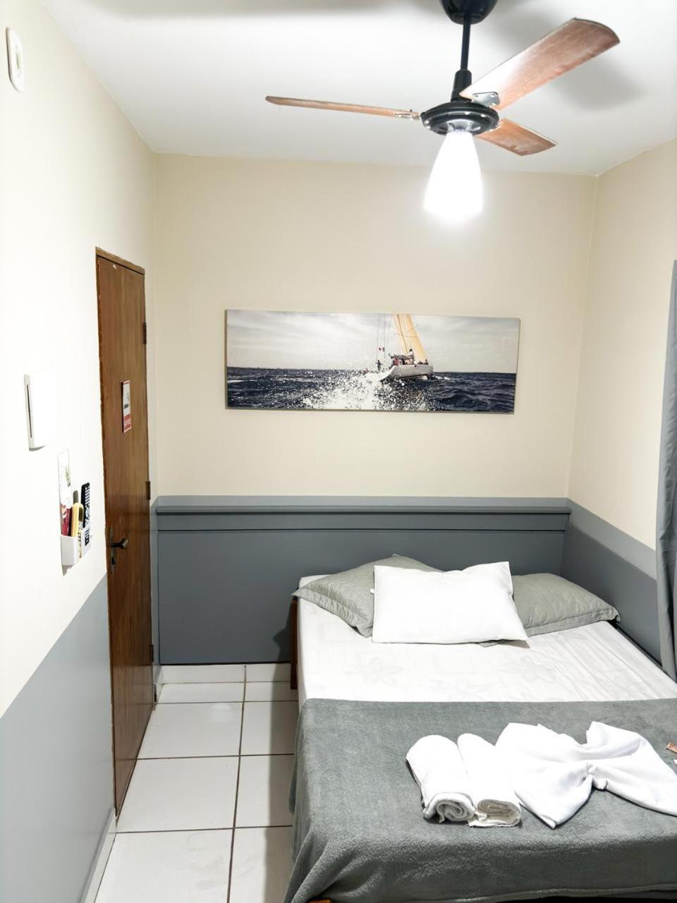 Quarto com uma cama de casal bem apertado