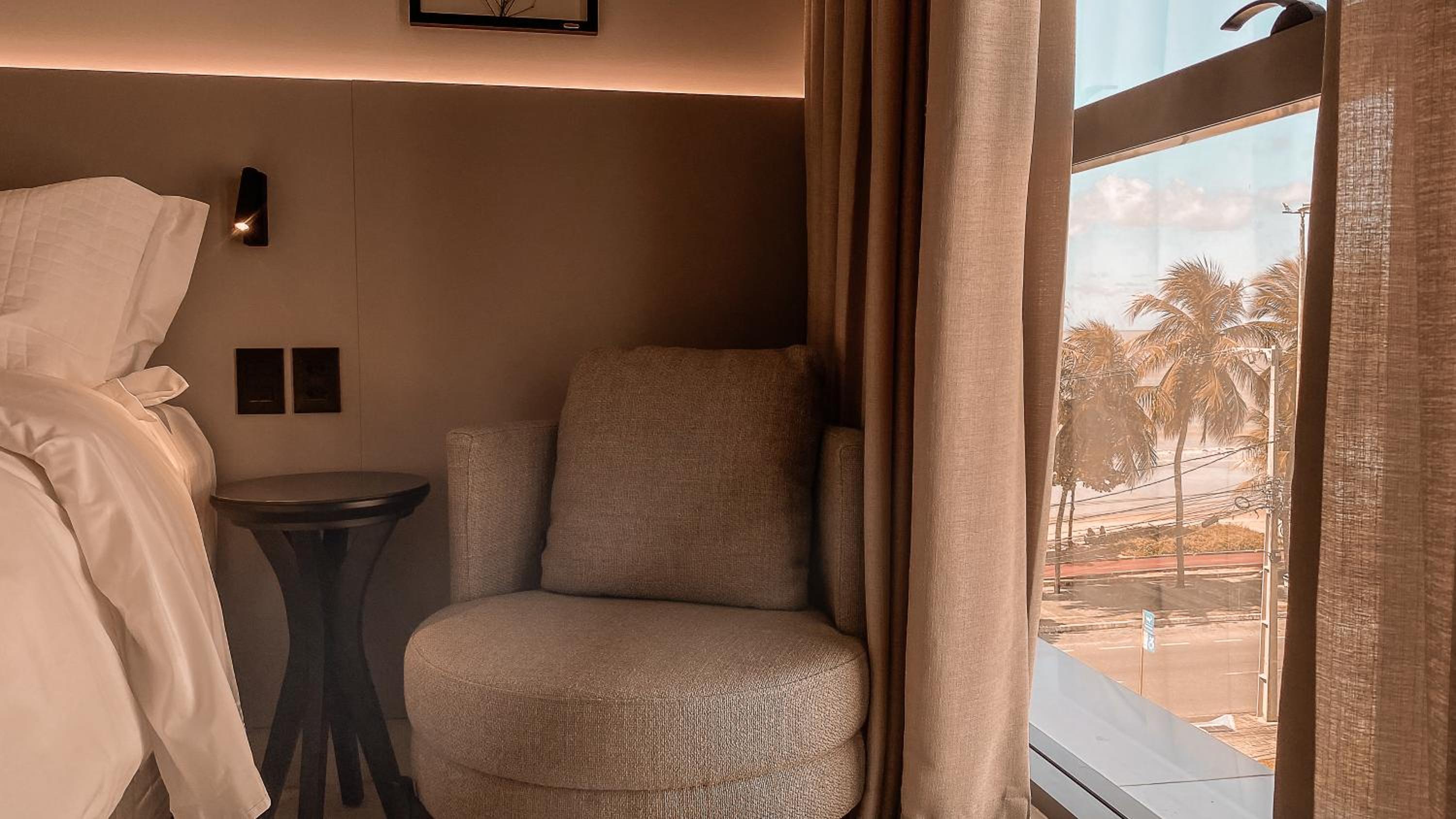 Apesar de ser de frente para a praia, o hotel fica numa ponta com pouco movimento com o mar mais sujo e não dá para considerar “pé na areia”. Se você quiser curtir a praia precisa sair de carro (ou Uber).