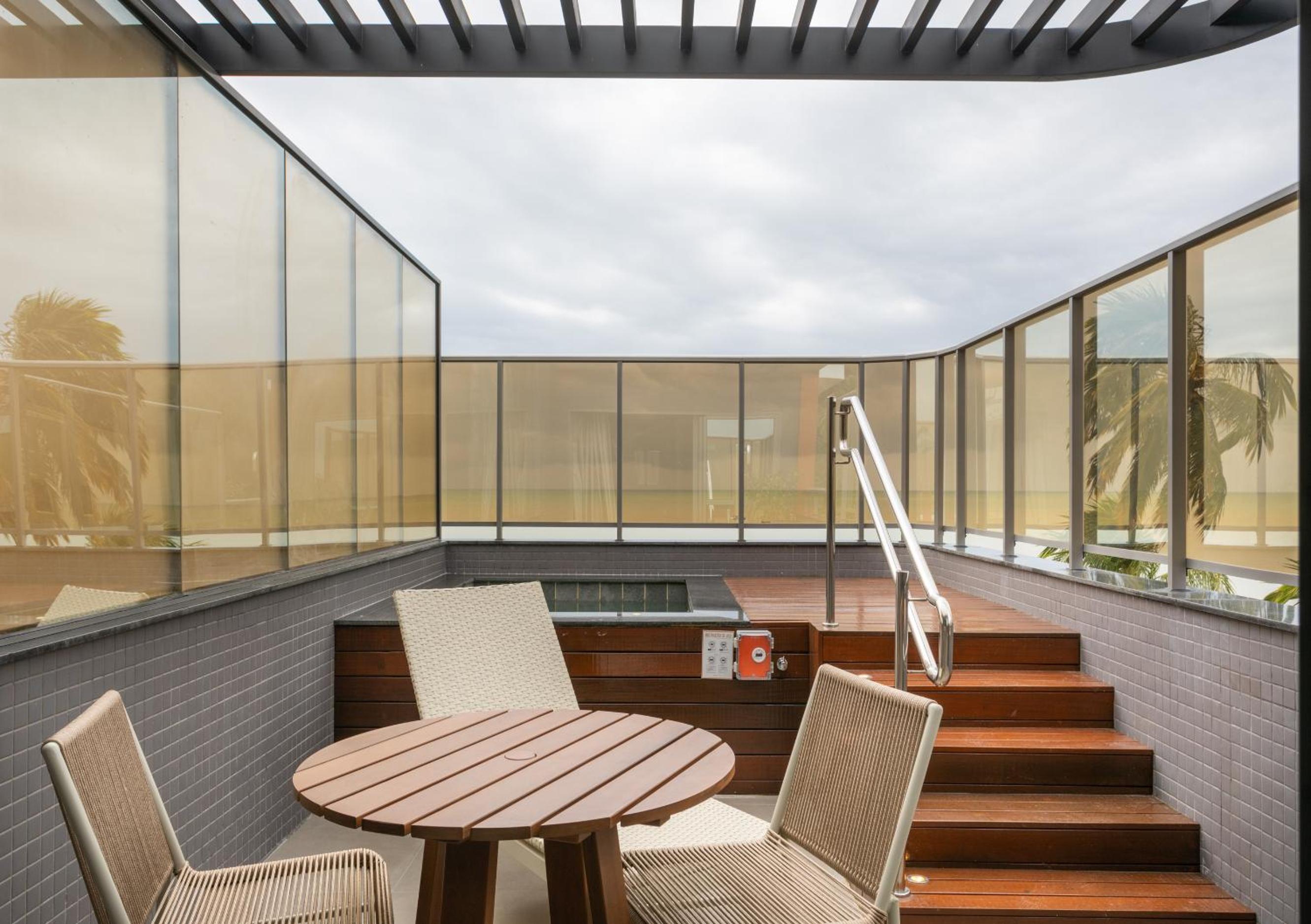 Sou Diego. Ficamos na Suíte Deluxe com Banheira de Hidromassagem do Icon de 09 a 14/02/2026. O anúncio do booking prometia “piscina privativa”, o que recebemos não tem nada a ver com privacidade. A “piscina” é minúscula (aprox. 1,5 × 1,5 m) e fica de frente para o deck comum: outros hóspedes conseguem ver TUDO e fazem questão de ficar olhando. Minha esposa chegou a se sentir constrangida ao tomar banho com o nosso bebê de 6 meses nessa área “privativa”.