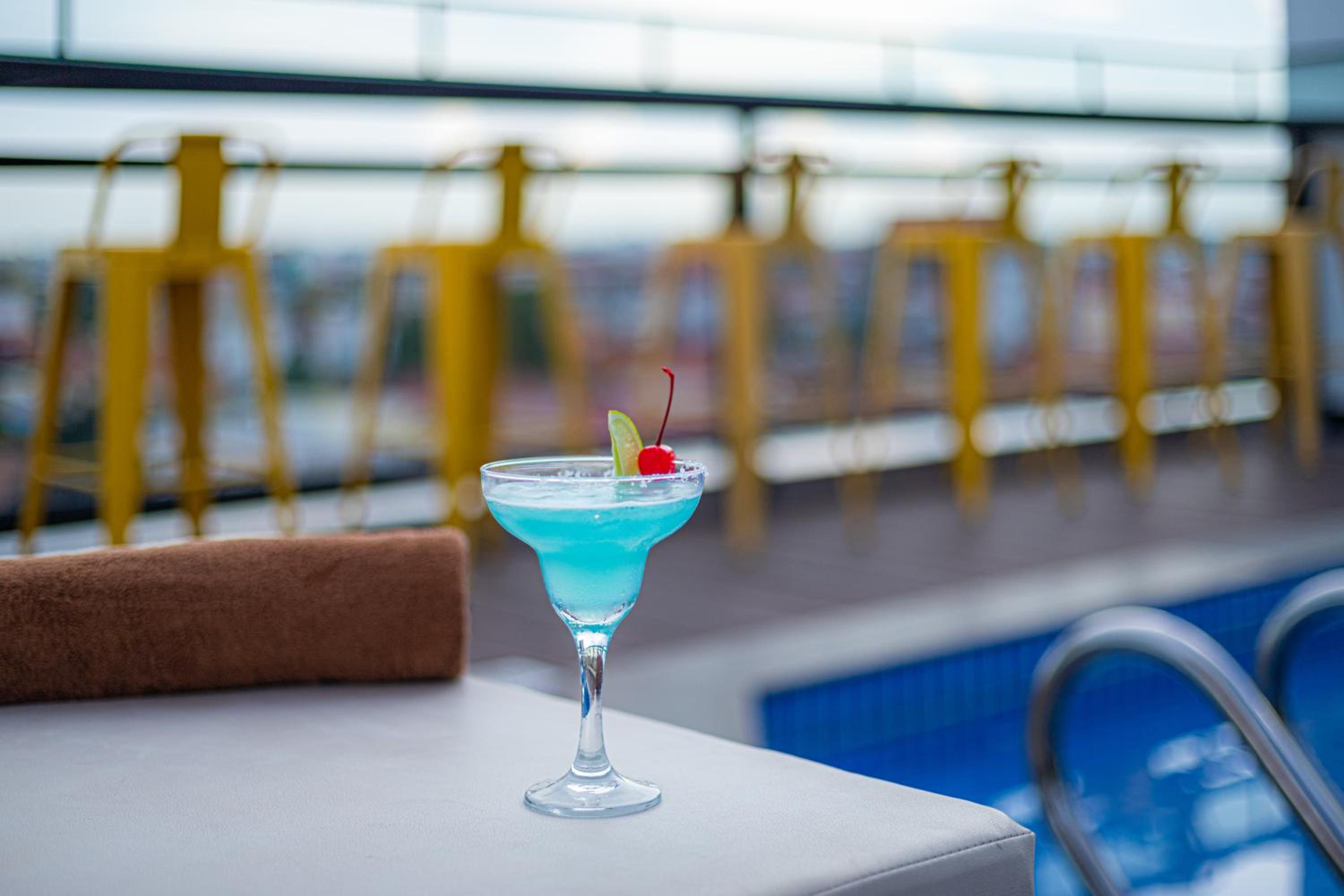 Rimelige priser på drikke i hotellbaren på takterrassen. Fikk gratis oppgradering av rom etter at vi påpekte litt dårlig utsikt.