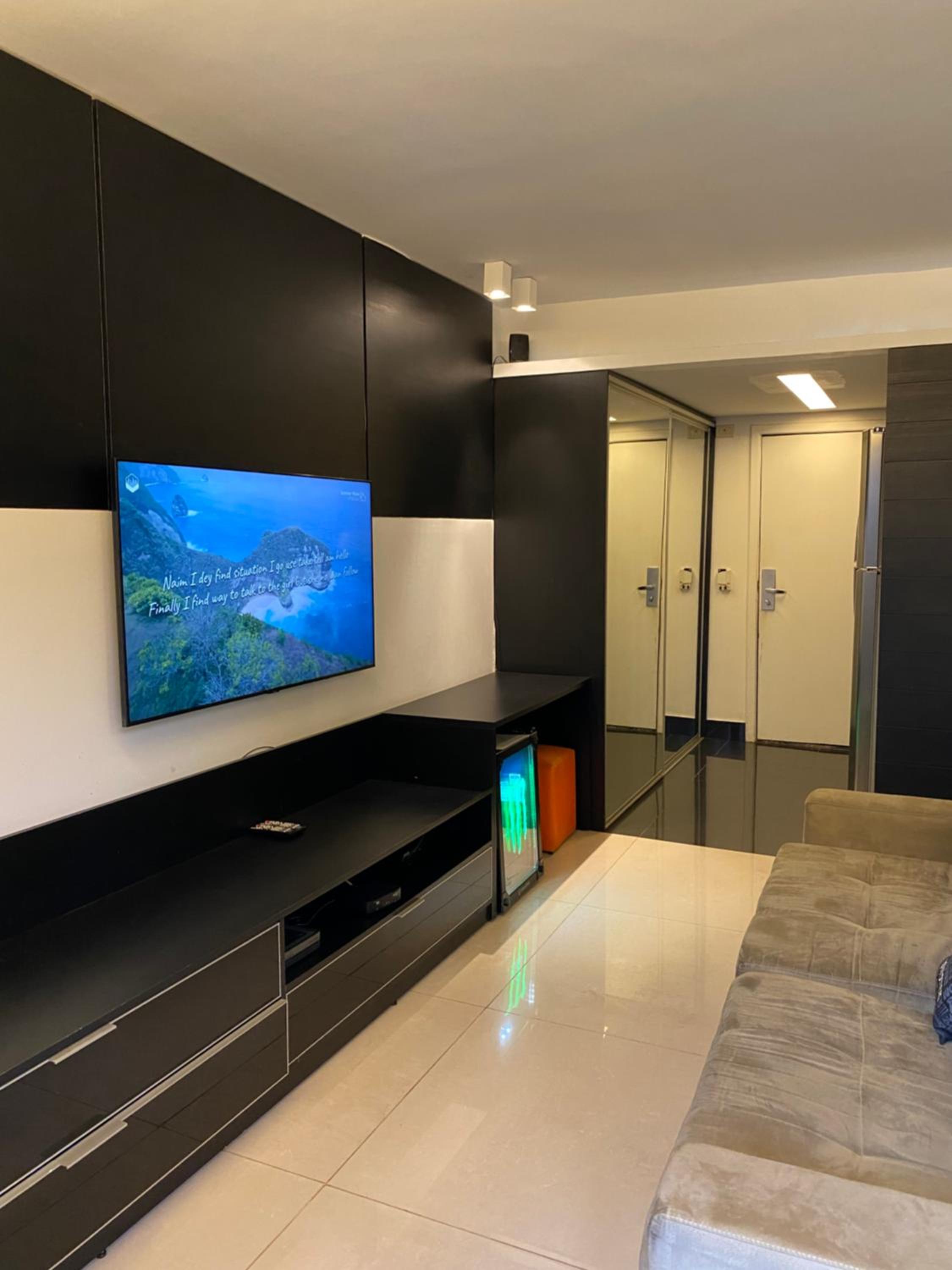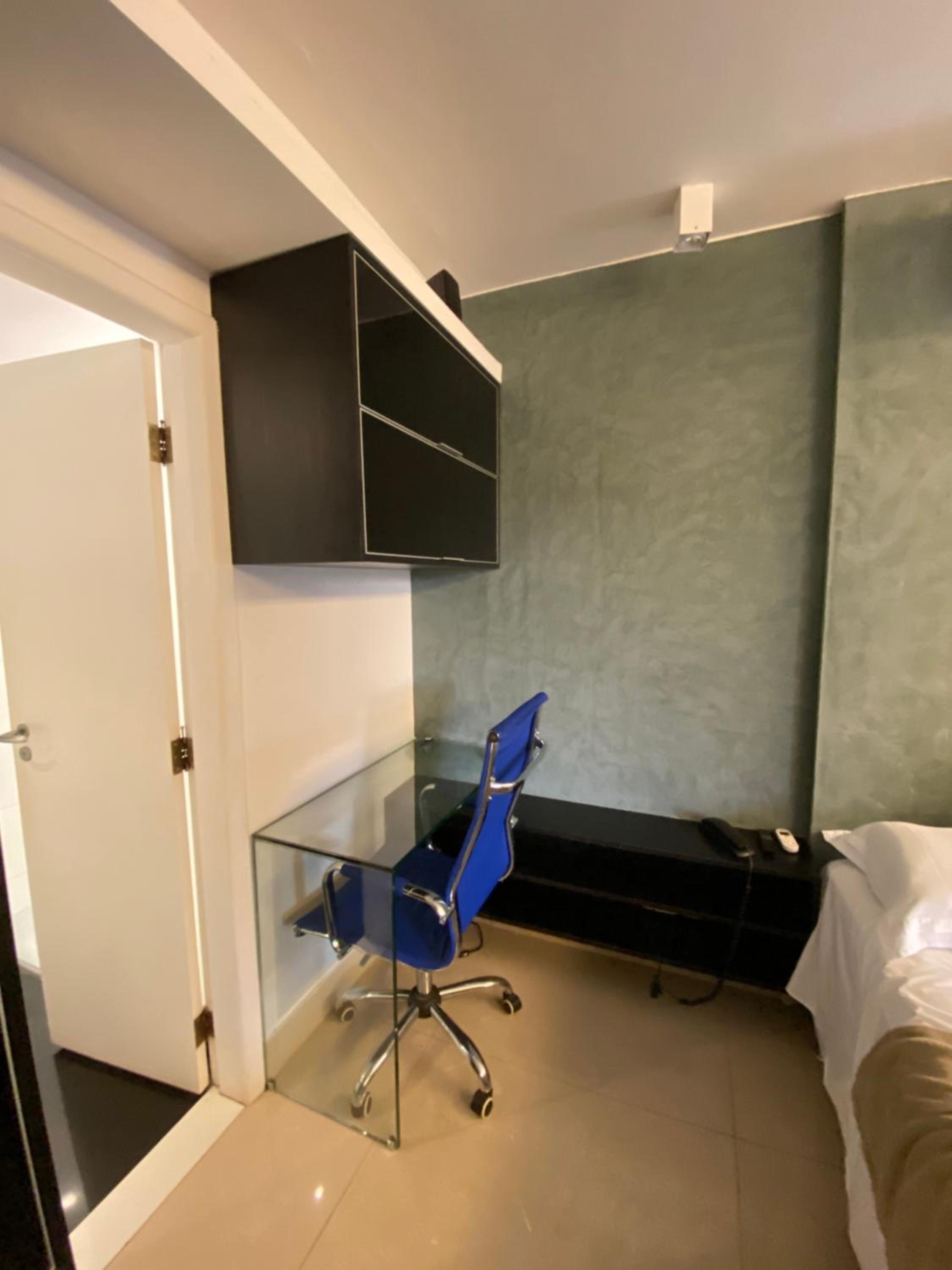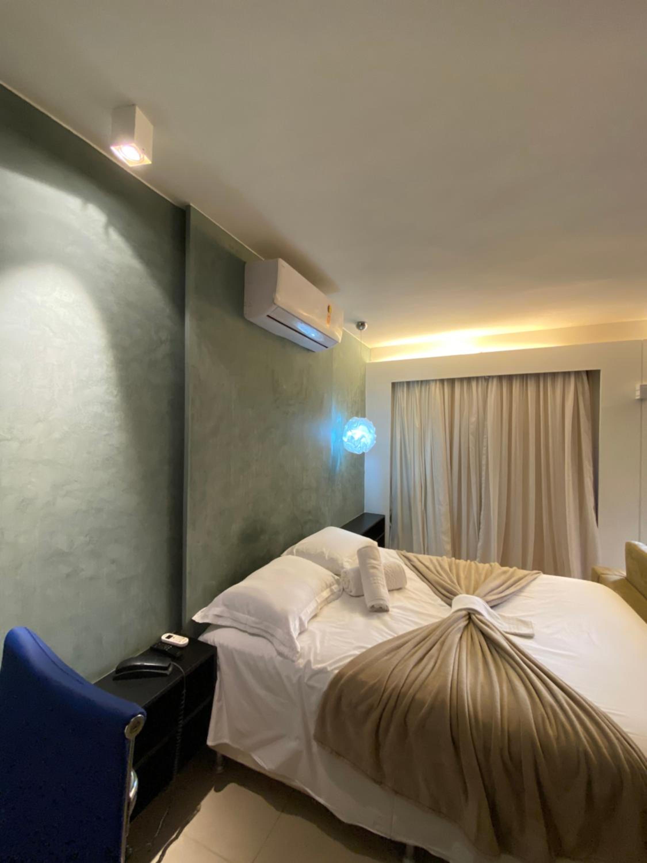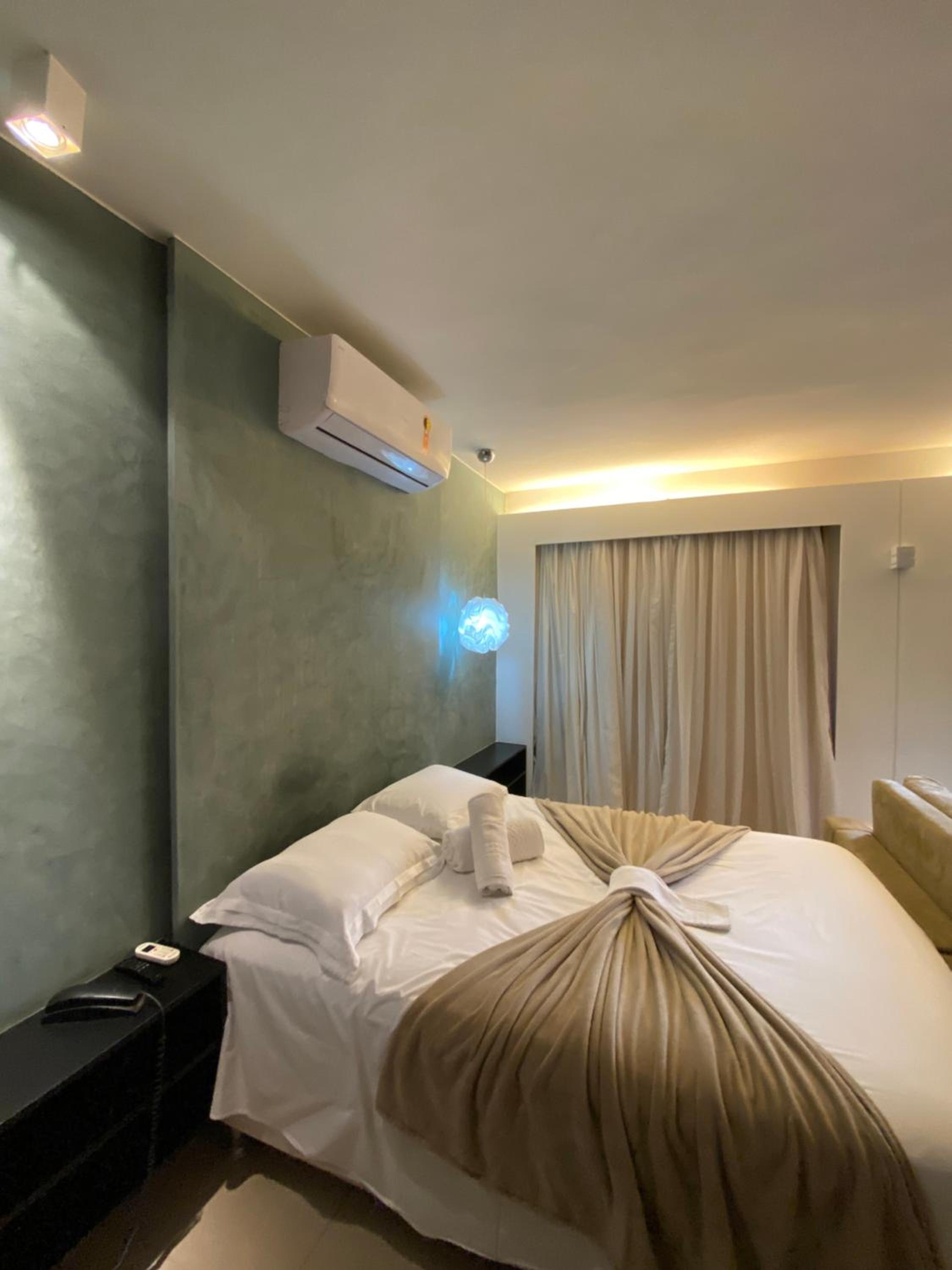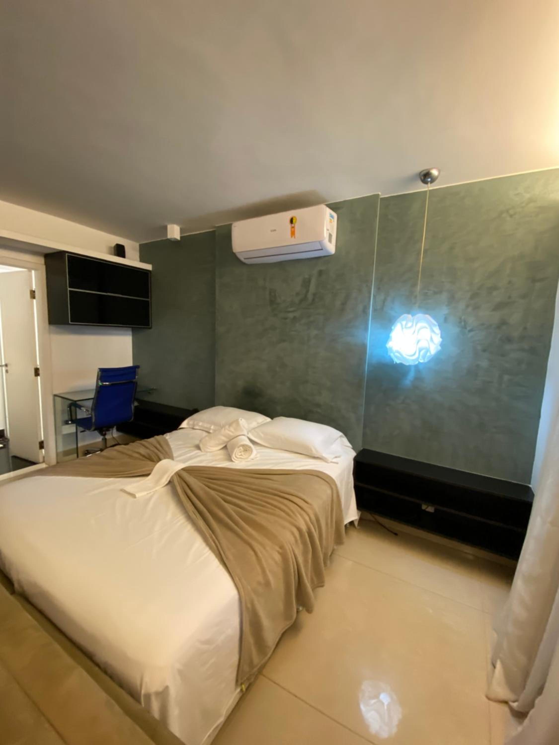 Flat espaçoso, cama confortável, chuveiro muito bom, bem localizado dentro do condomínio.