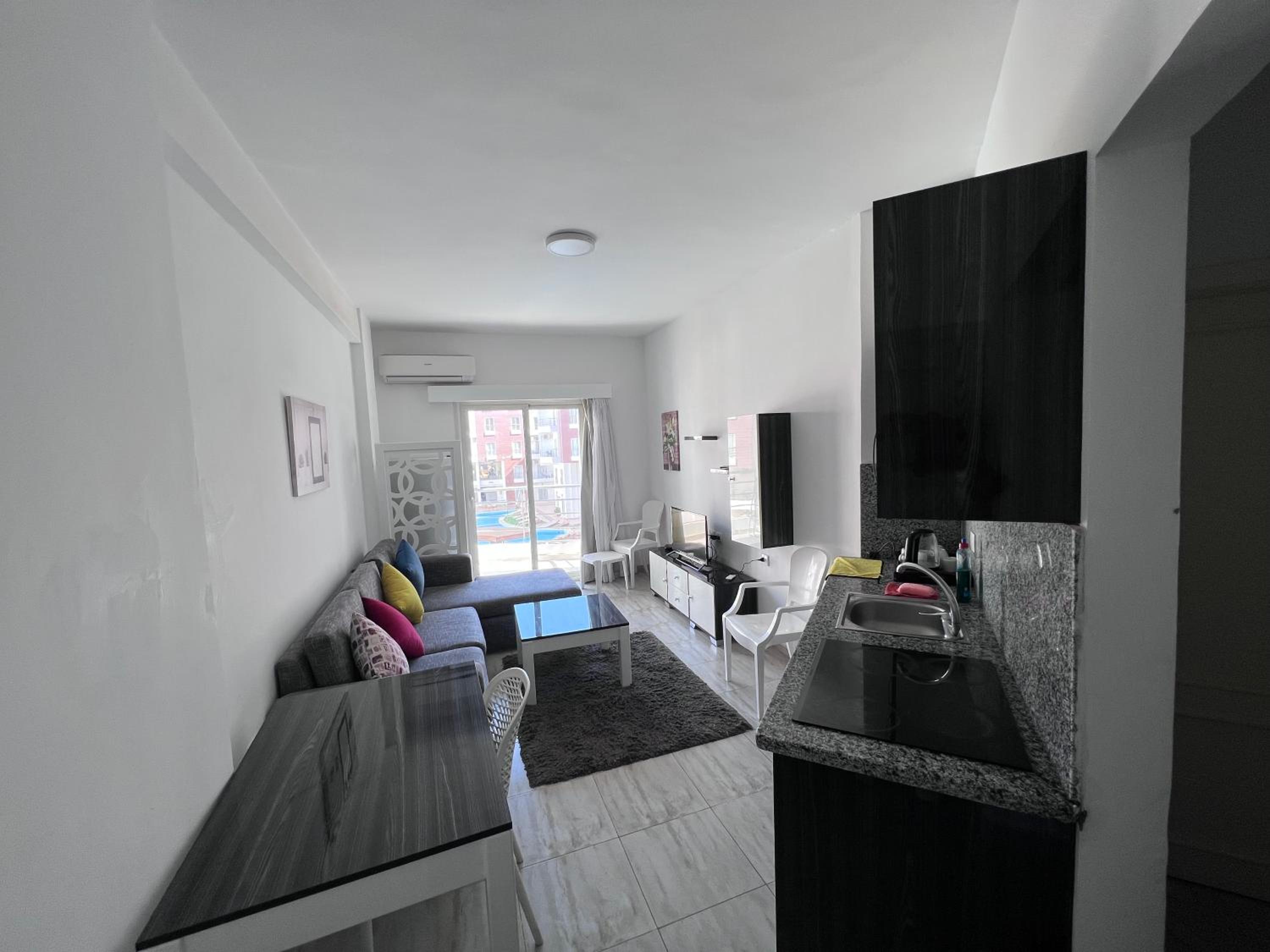 Experience comfort and style at Aqua Palms Resort Hurghada. With spacious 3 bedrooms, a fully equipped kitchen, and pool views, our air-conditioned aparthotel offers the perfect retreat.