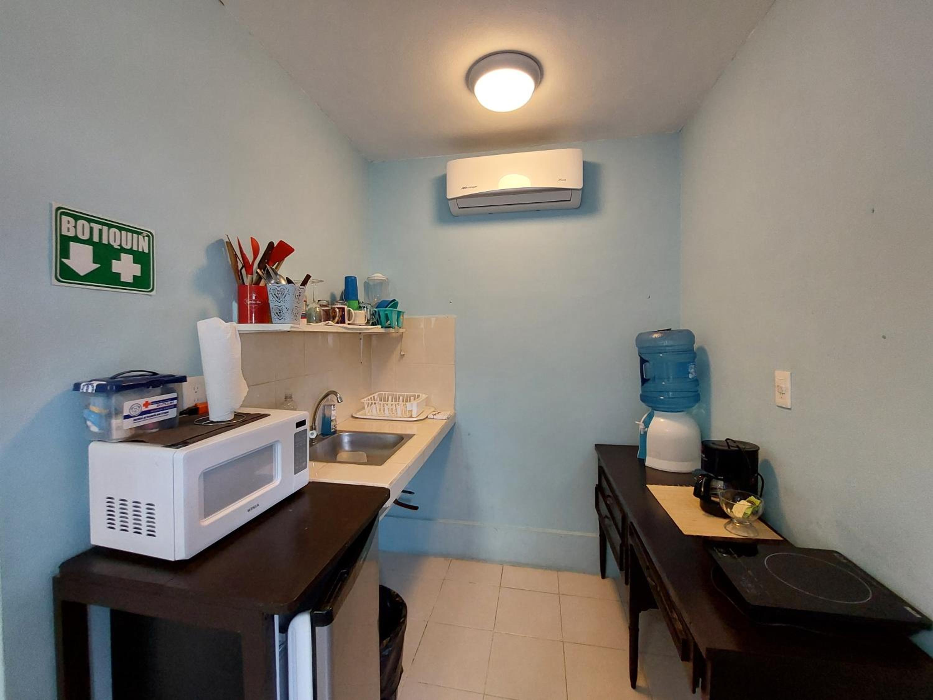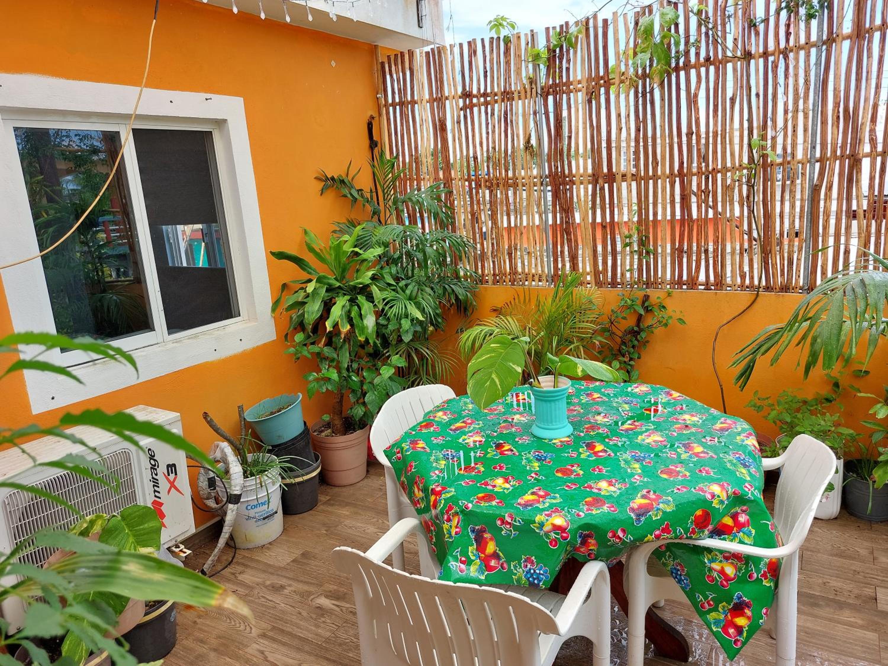 Sustainable Comfort: Habitación Cozumel offers a fully equipped kitchen, air conditioning, and a private terrace with outdoor dining, ensuring a comfortable stay.