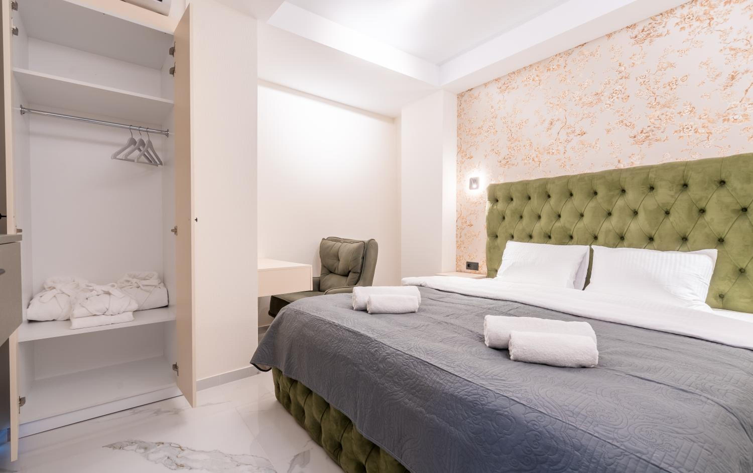 Очень хорошее расположение отеля. Все в шаговой доступности. Номер большой. Кухня оборудована полностью. Есть стиральная машина, что очень удобно)) Два санузла с душами. Три сплит-системы, но, кстати, в номере было совсем не жарко при +40 на улице. Нам очень понравилось. Спасибо🤝