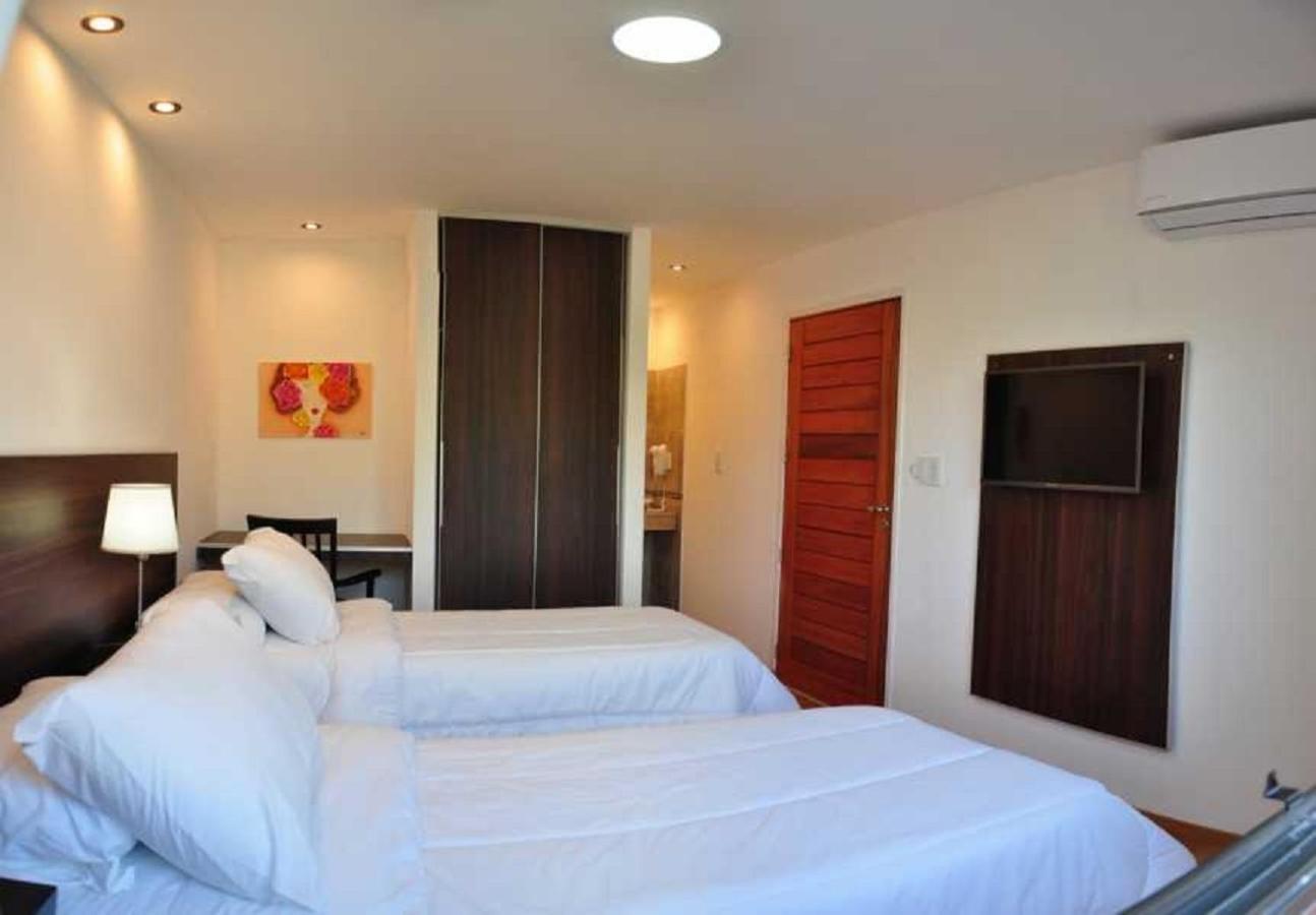 La atención del personal es eficiente.el lugar está limpio y es carísimo para el servicio q presta.dos habitaciones un con ventilador de techo,sin placard,son frigobar sin buen aislamiento de luz con una mesa de luz de juguete con un solo velador.con un TV del año del ñaupa.la otra habitación normal con aire y con placard.nl tiene servicio a la habitación.hay a pagar extra por el sauna...en fin.cobran 5 estrellas y brindan 3