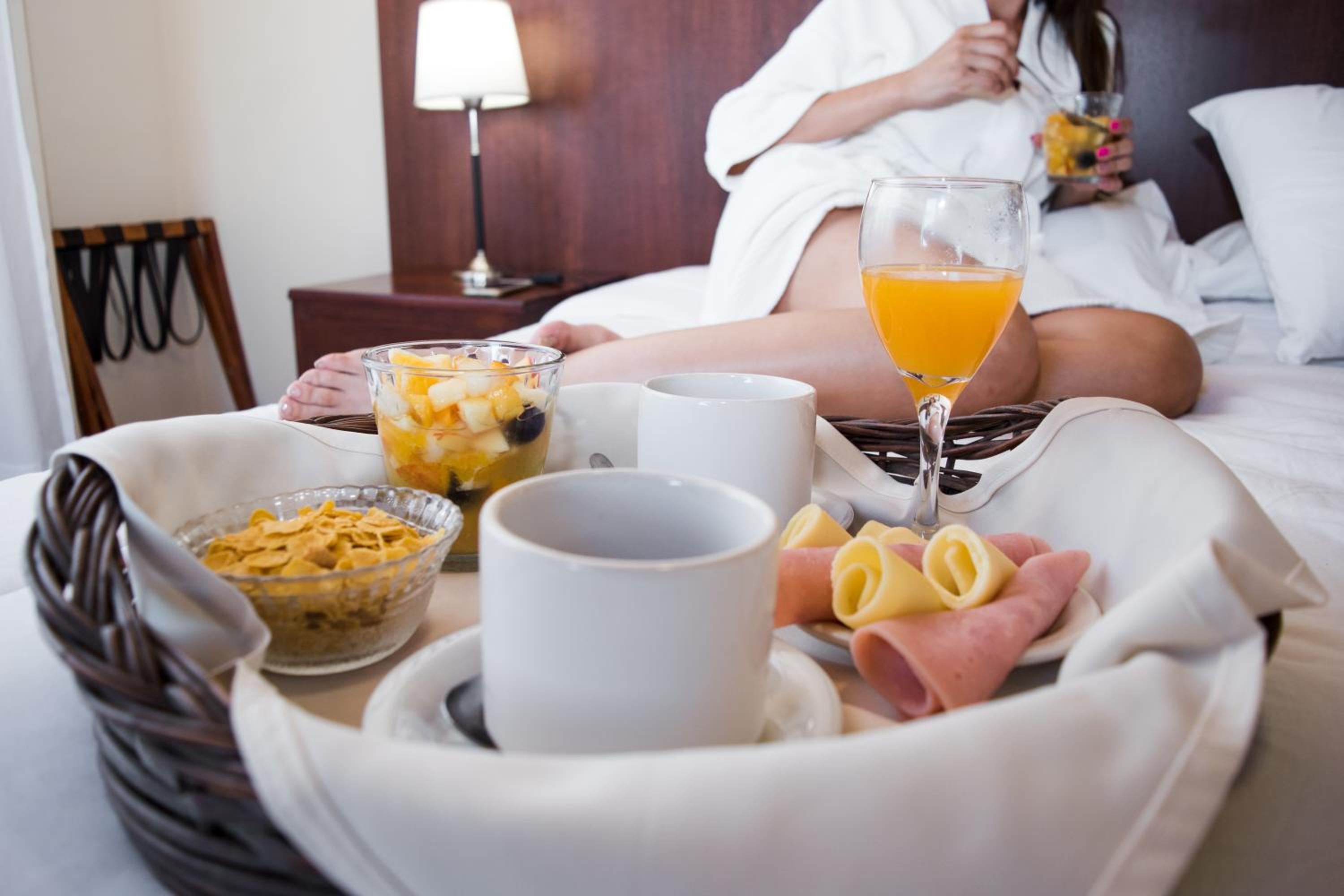El desayuno y la chica de recepción.