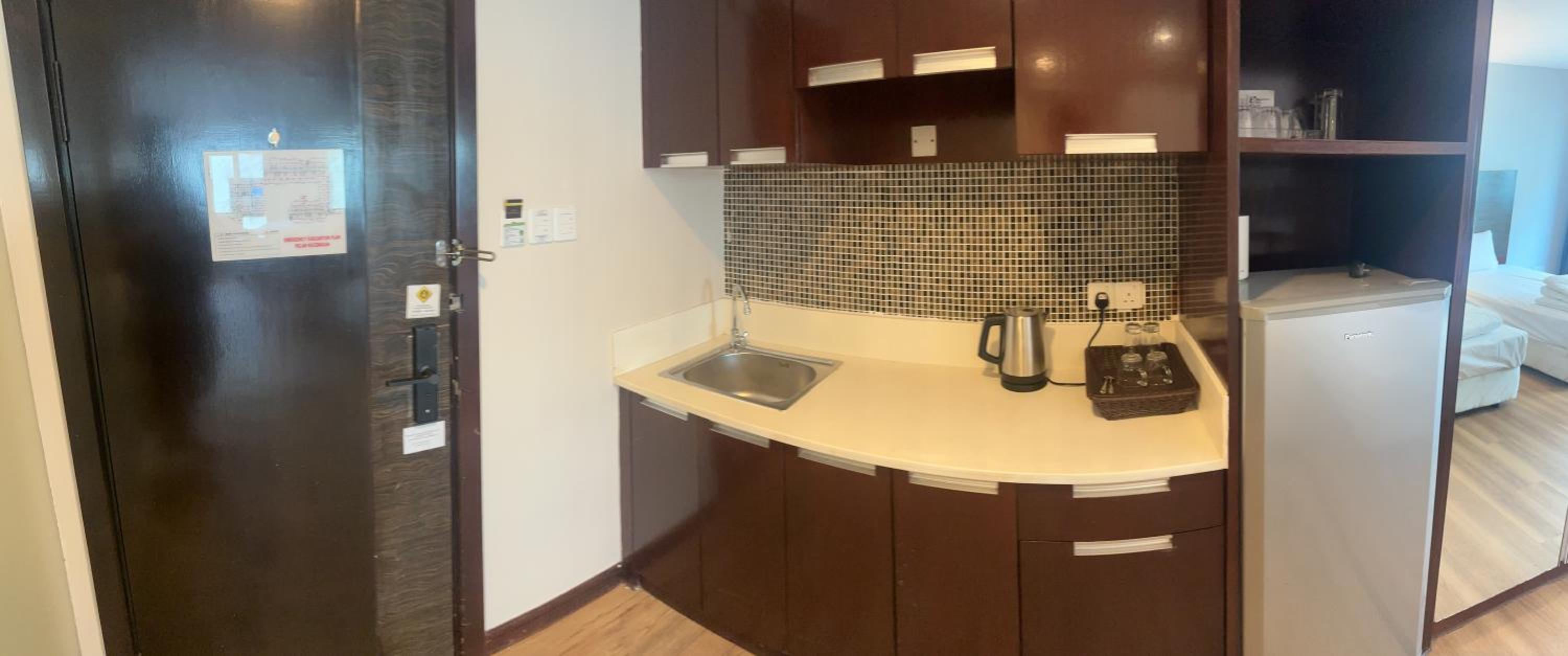 Gebäude inkl Pool und Gym sind wenig einladend. Zimmer braucht ein Update. Sehr veraltet. Den Preis finde ich für die Unterkunft zu hoch. Habe zum gleichen Preis in weitaus besseren Apartments übernachtet.