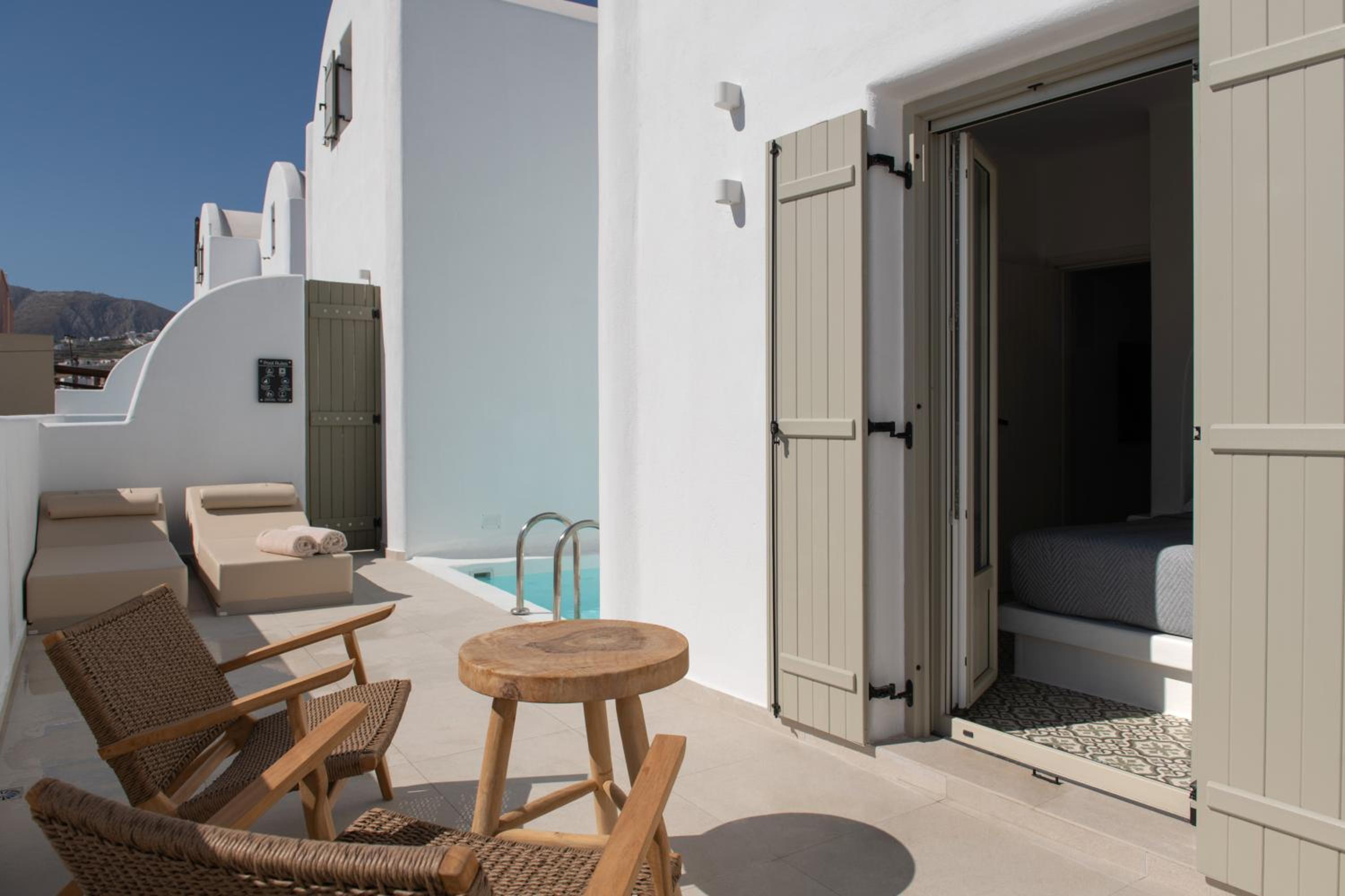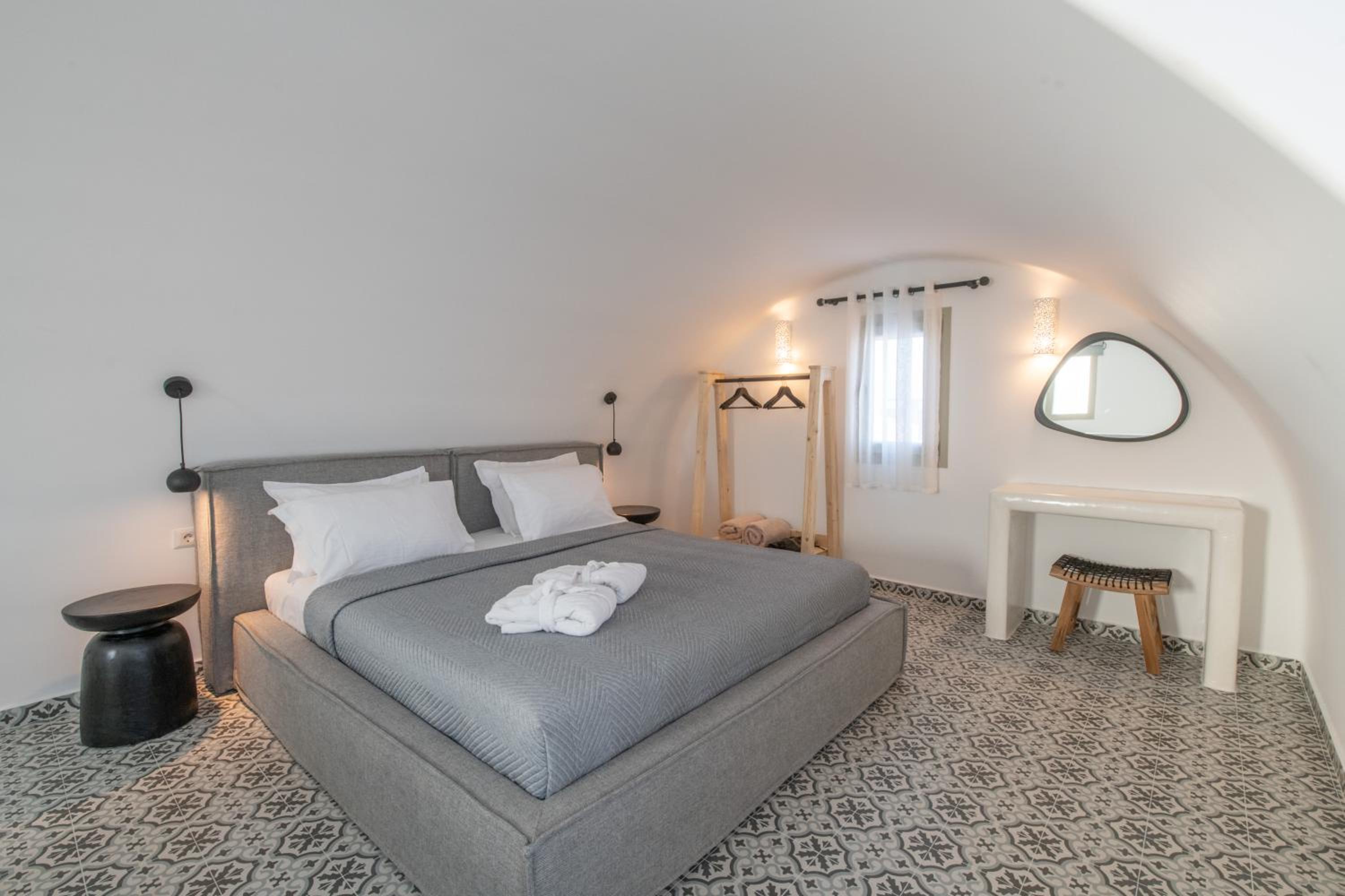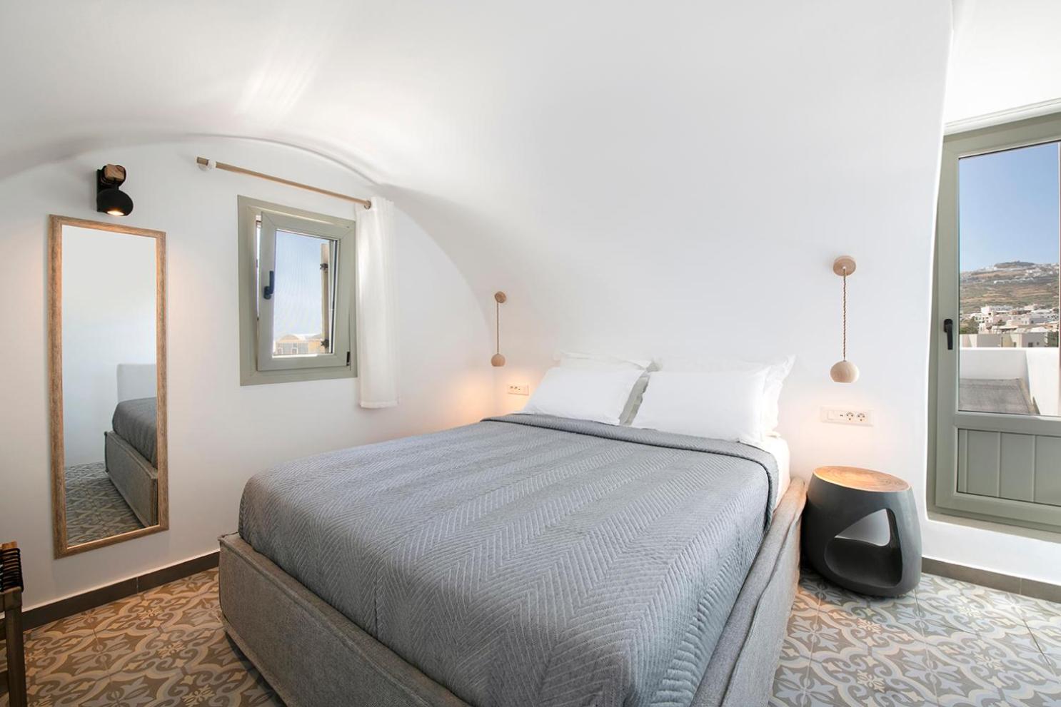 La posizione poi è perfetta: a soli 7 minuti da Fira, 4 minuti dall’aeroporto e circa 15 minuti dal porto. Comodissima anche per raggiungere tutte le spiagge più belle dell’isola senza stress.