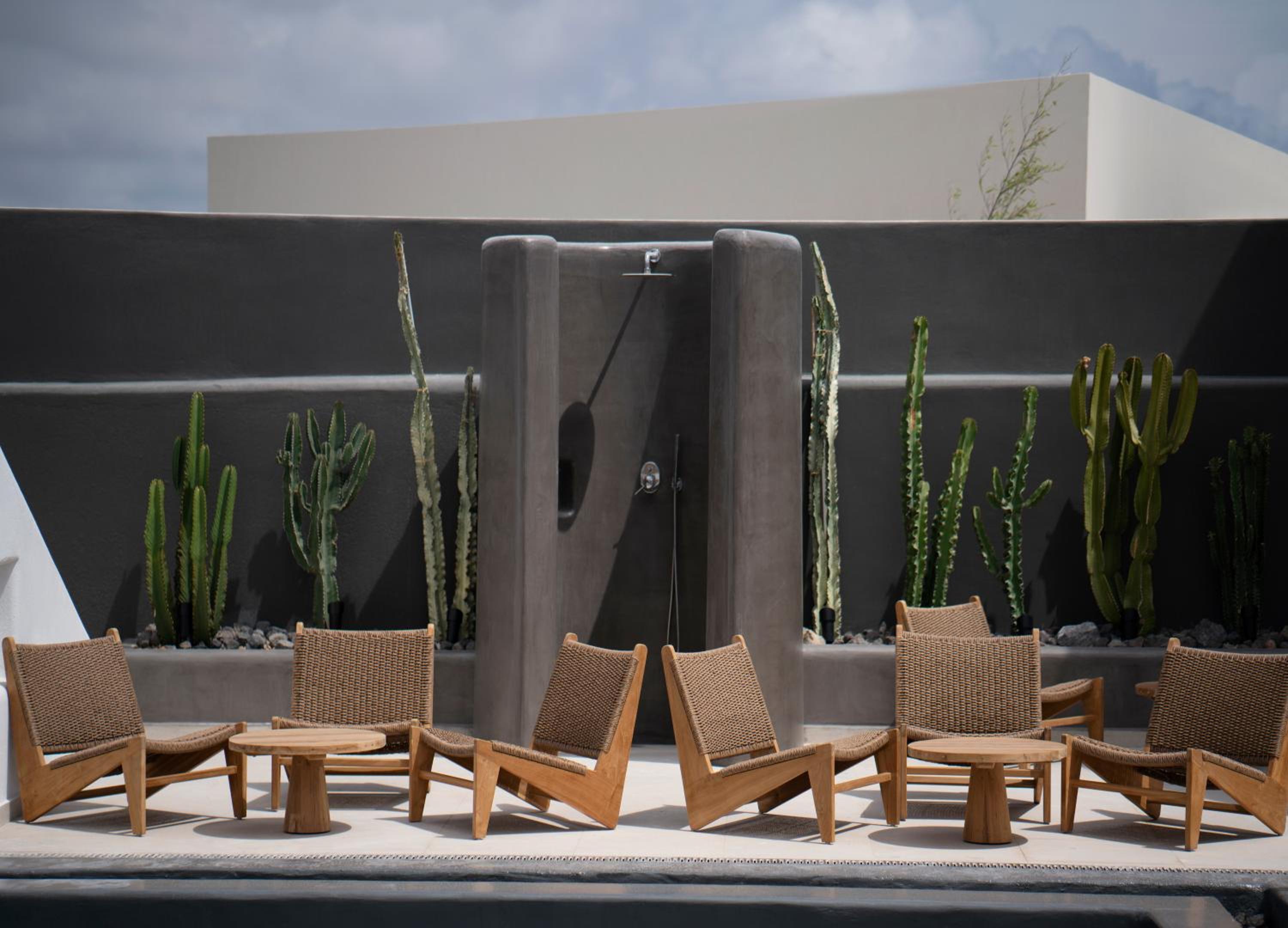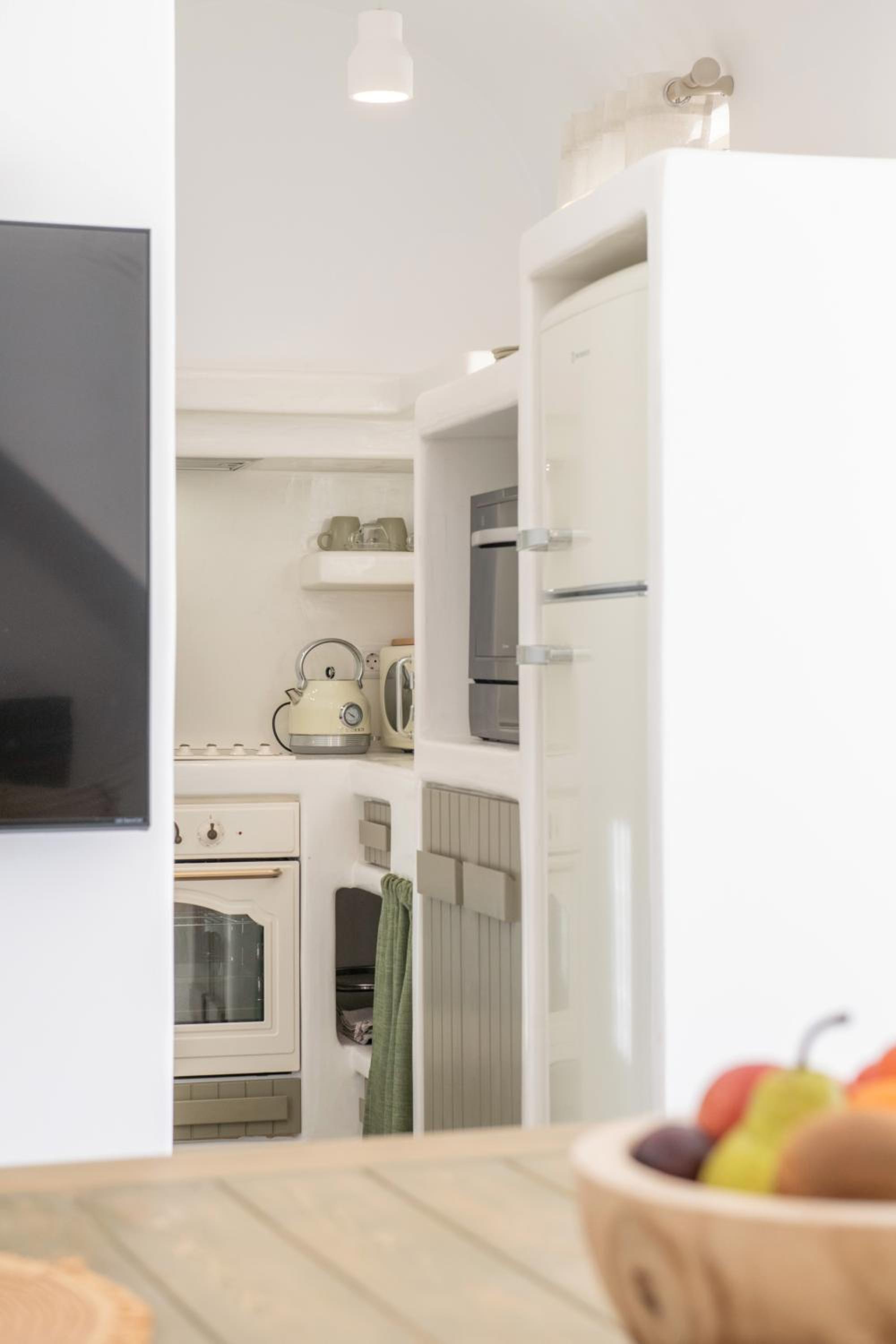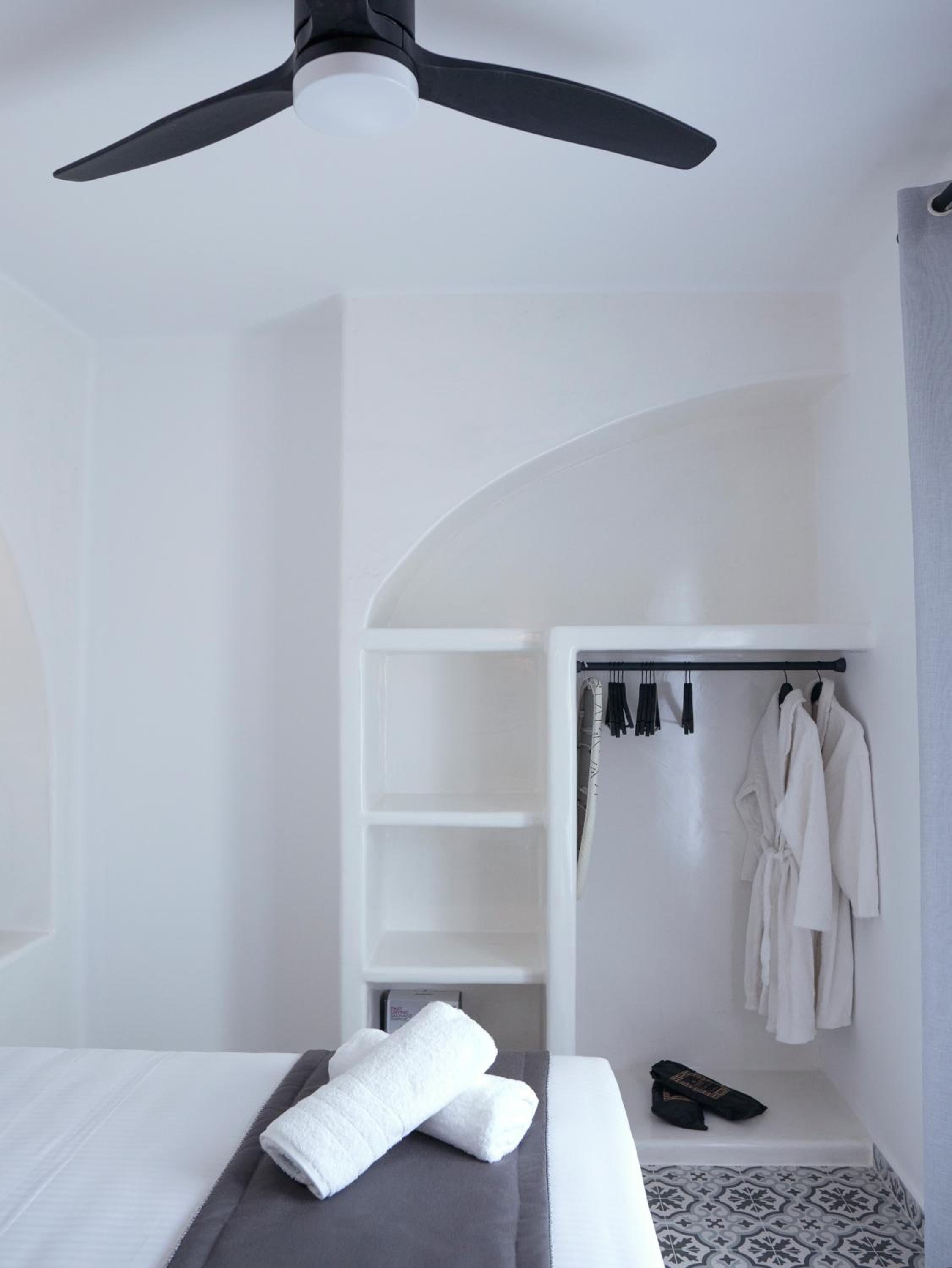La posizione poi è perfetta: a soli 7 minuti da Fira, 4 minuti dall’aeroporto e circa 15 minuti dal porto. Comodissima anche per raggiungere tutte le spiagge più belle dell’isola senza stress.