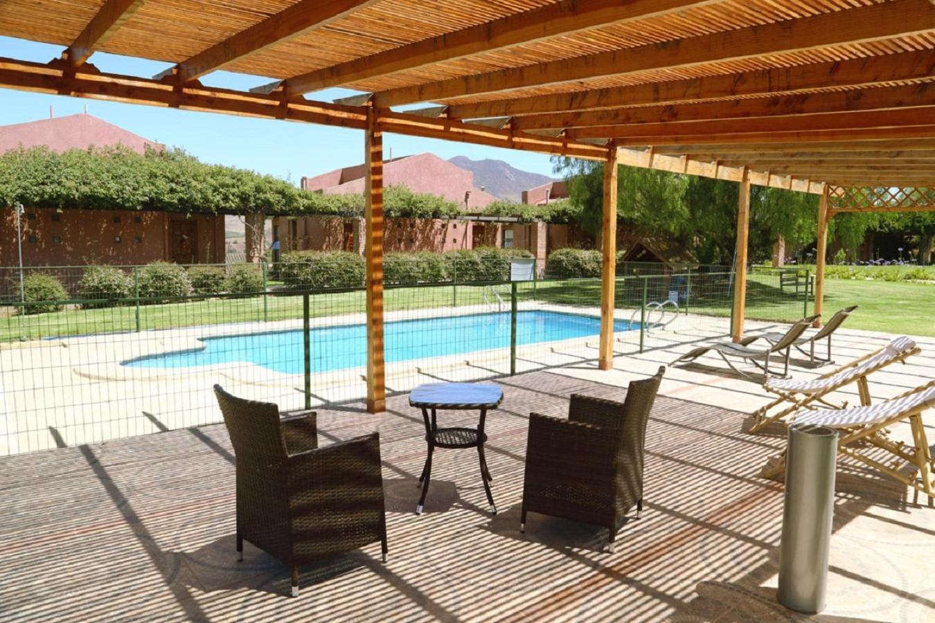 Desayuno agradable, habitaciones con closet grandes y frazadas extras, cocina con utensilios para cocinar o tomar te y frigobar, buena ducha con bastante agua y caliente, las cabañas tienen sus terrazas, piscina limpia , áreas verdes y sector con mesa al lado de la piscina.. vista maravillosa al valle donde en la mañana puedes divisar conejos y aves .al frente hay un casino , bombas de bencina muy cerca , a 10 min del centro de Ovalle donde hay mercado , museos restaurante, bancos atc