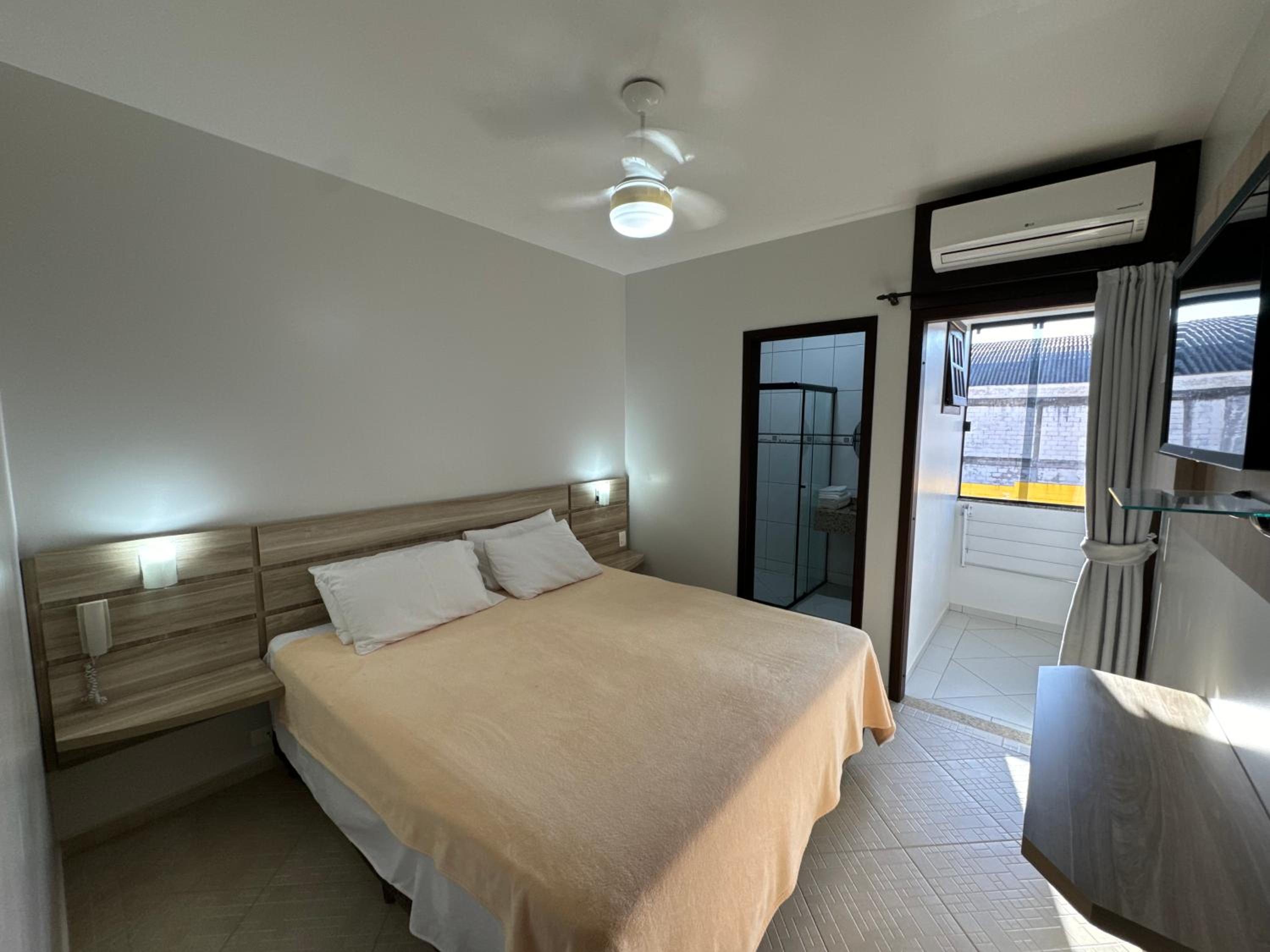 Ar condicionado estava funcionando porém não estava gelando como deveria estava mais fraquinho,senti falta de lugares e opções para comer pertinho tem somente na praia a beira mar , seria bacana uma pousada como essa ter restaurante ou até mesmo um cardápio de quarto com algumas opções de comida e lanches .