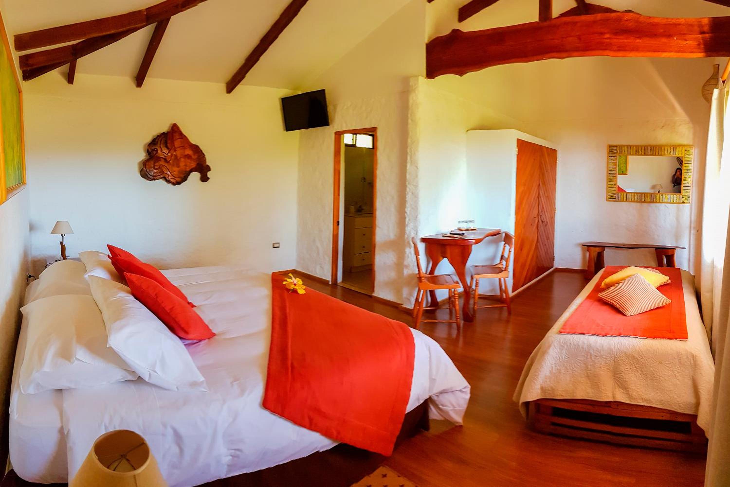 Sehr schöne und ruhige Unterkunft in nächster Nähe von Hanga Roa.Dort ist man zu Fuß entlang des Strandes in 10-15 Minuten.Man wohnt in kleinen Häusern mit tollem Blick auf das Meer. Wundervolles Frühstück mit vielen frischen Früchten und super Fruchtsäften. Die Gastgeber sind sehr hilfsbereit und unkompliziert bei der Organisation eines Reiseführers oder Mietautos. Alles hat immer bestens funktioniert. Die Atmosphäre und die Freundlichkeit im Hotel war äußerst angenehm.