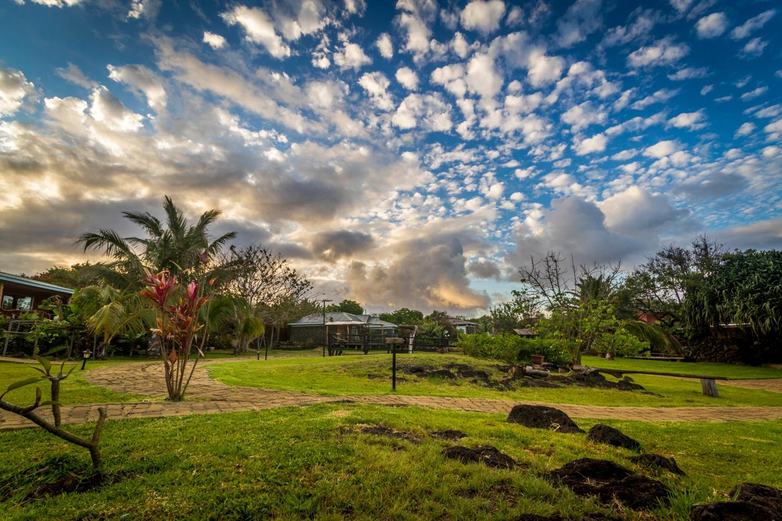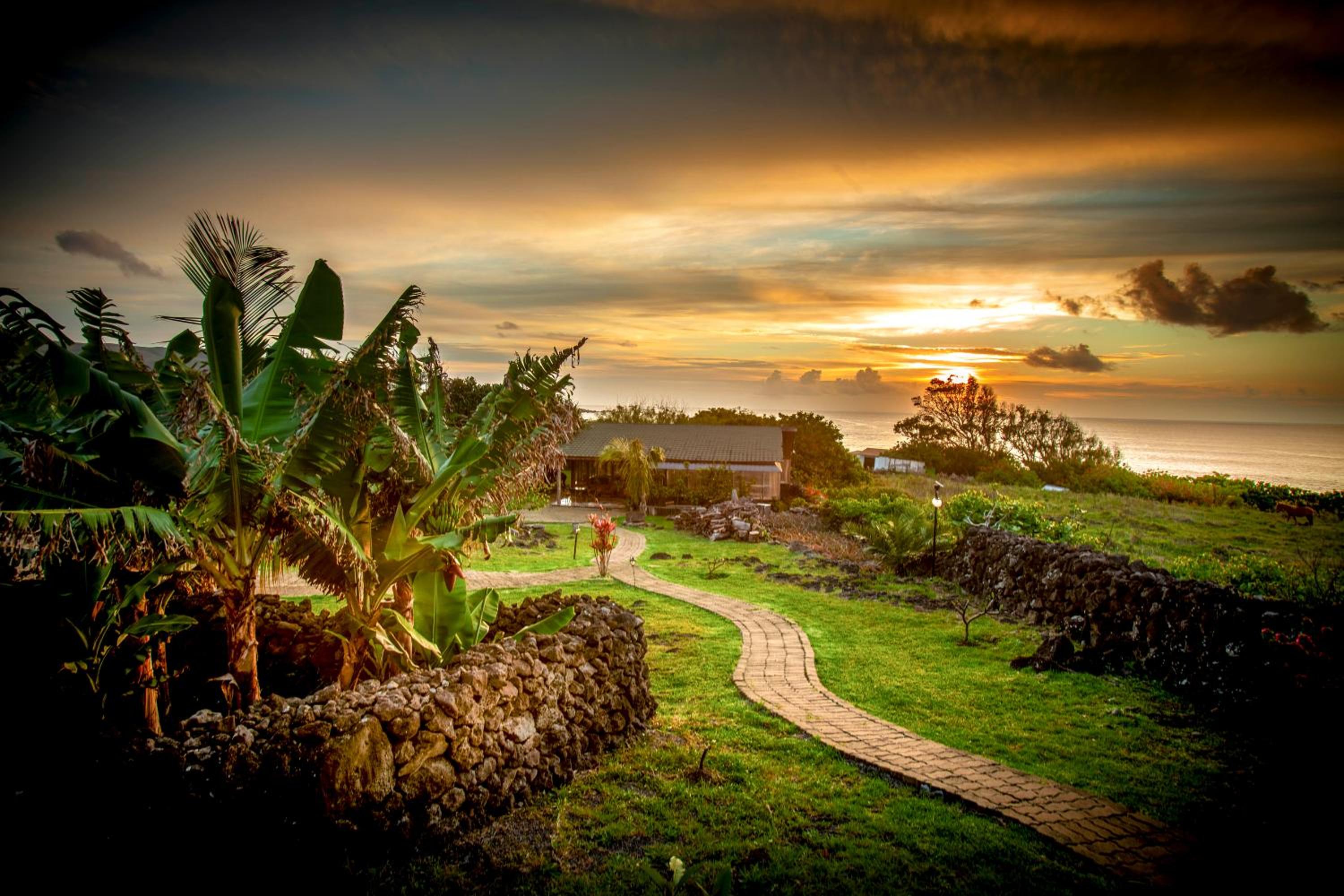 Excellent location, 5 min walking distance to the sunset Moai. Walking through the fields to get to town takes about 20 minutes.