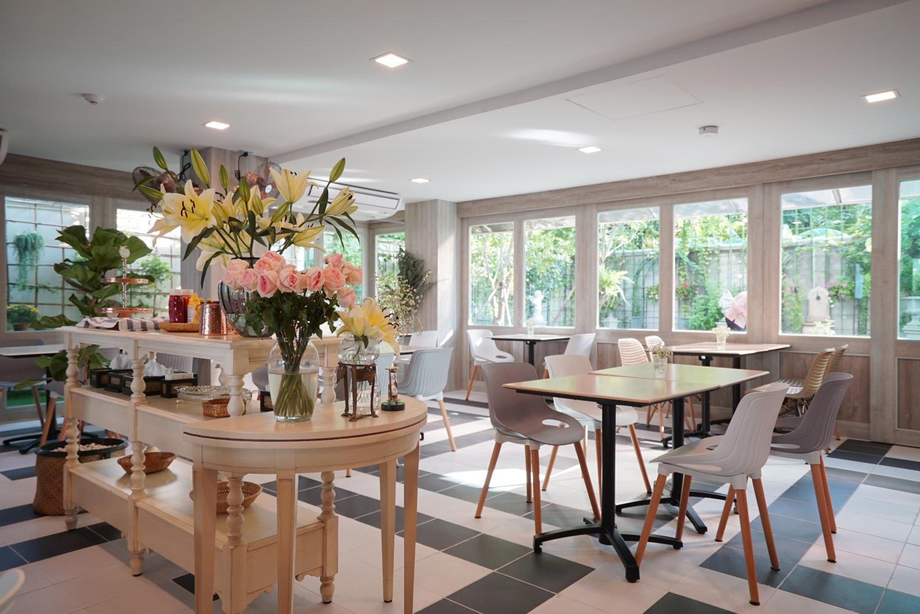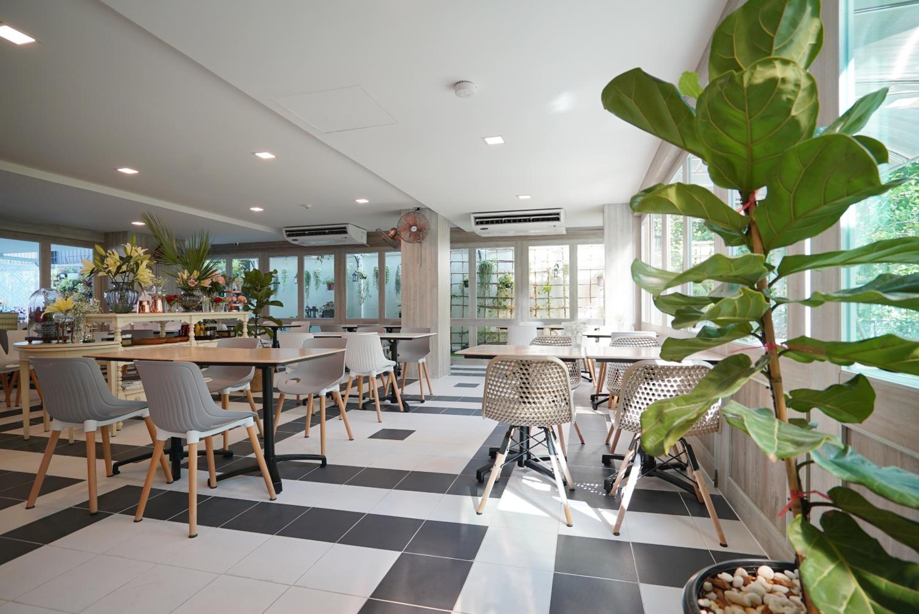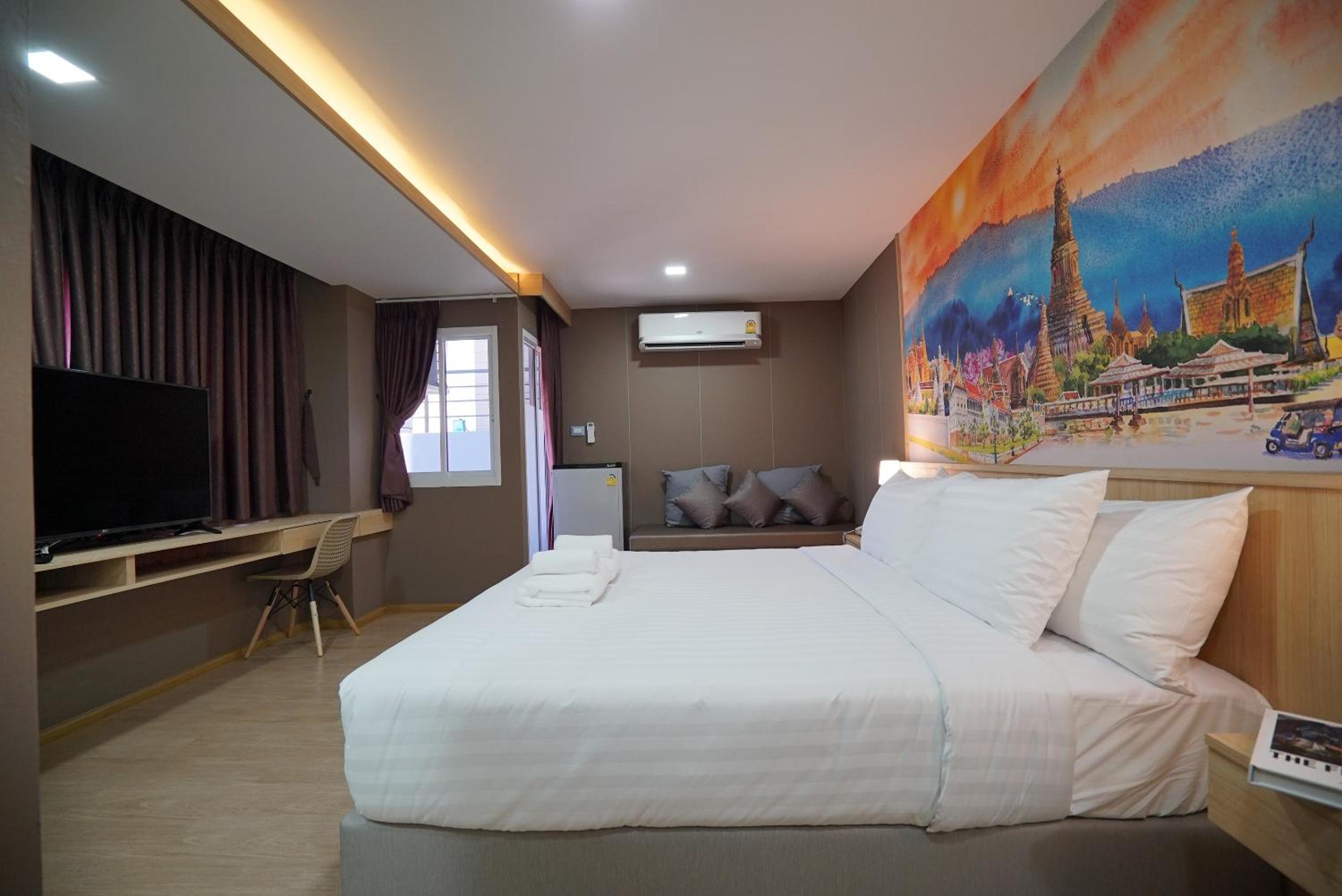 The Qube fifty Hotel, located in Bangkok, offers a tranquil garden, perfect for relaxation, and certain units feature balconies with stunning city views.