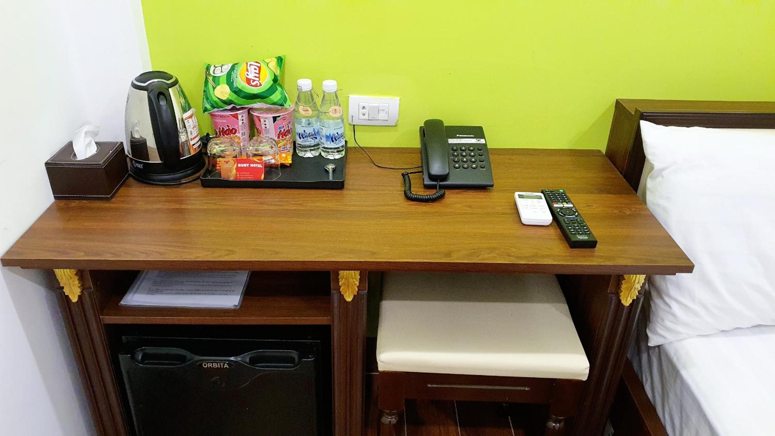 RUBY HOTEL Vĩnh Long presents a luxurious stay with top-notch amenities. Each room is equipped with air conditioning, a flat-screen TV, and free WiFi. Some rooms even feature a kitchenette for added convenience.