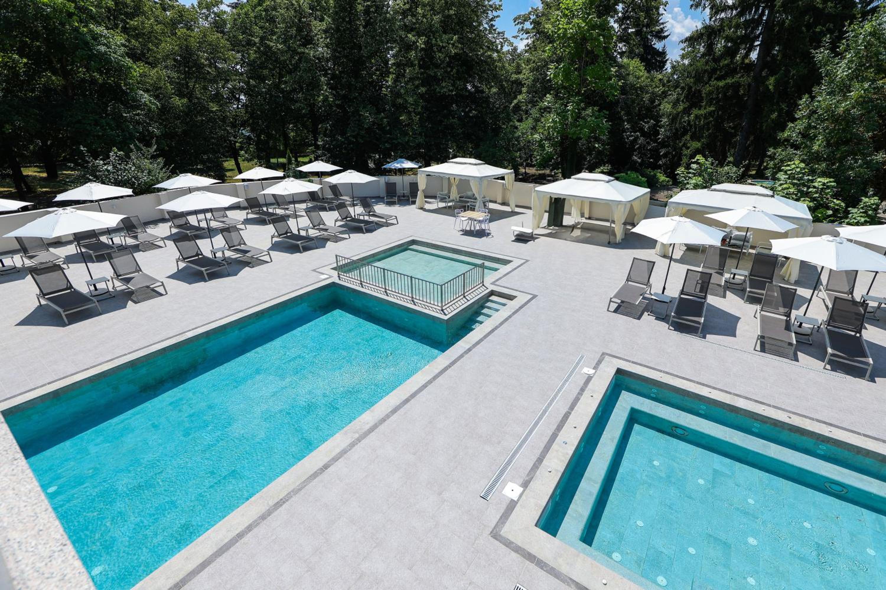 Персоналът на хотела е много дружелюбен и отзивчив, спокойно ни обясниха абсолютно всичко. В целия хотел беше много чисто, има 6 басейна, различни по големина и различна температура подходящи за всяка възраст, в най-топлия беше 31-32 градуса. На покрива на хотела има джакузи, удобни меки шезлонги и шатри за отдих. Закуската е много вкусна и в удобно време до 10:30ч за тези, които обичат да спят до по-късно. Хотелът осигурява кърпи за басейна, които се взимат от рецепция. В Спа зоната е доста спокойно през седмицата. Хотелът разполага с ресторант, който предлага модерна резнообразна кухня и вътрешен двор, подходящ за деца.