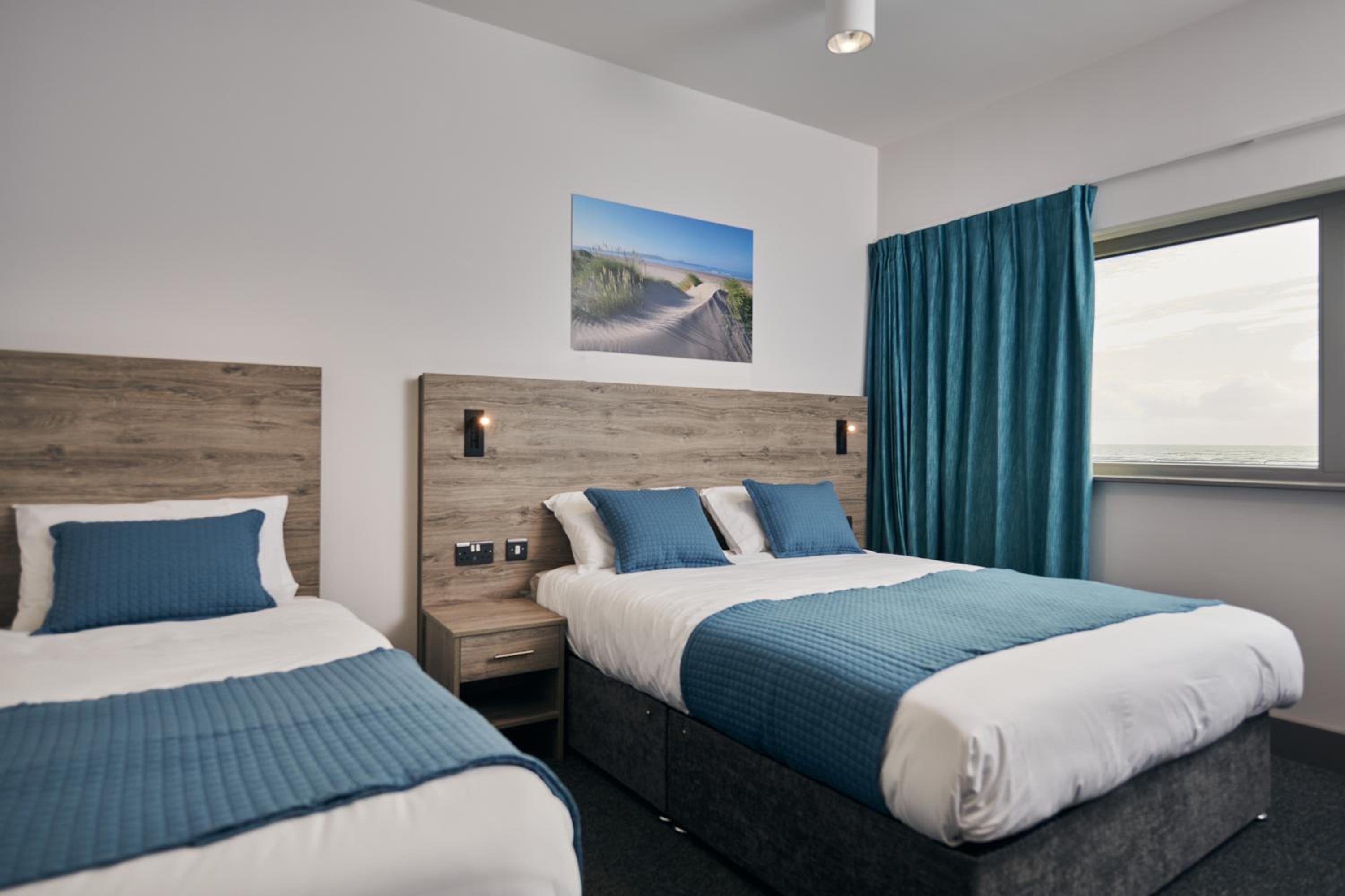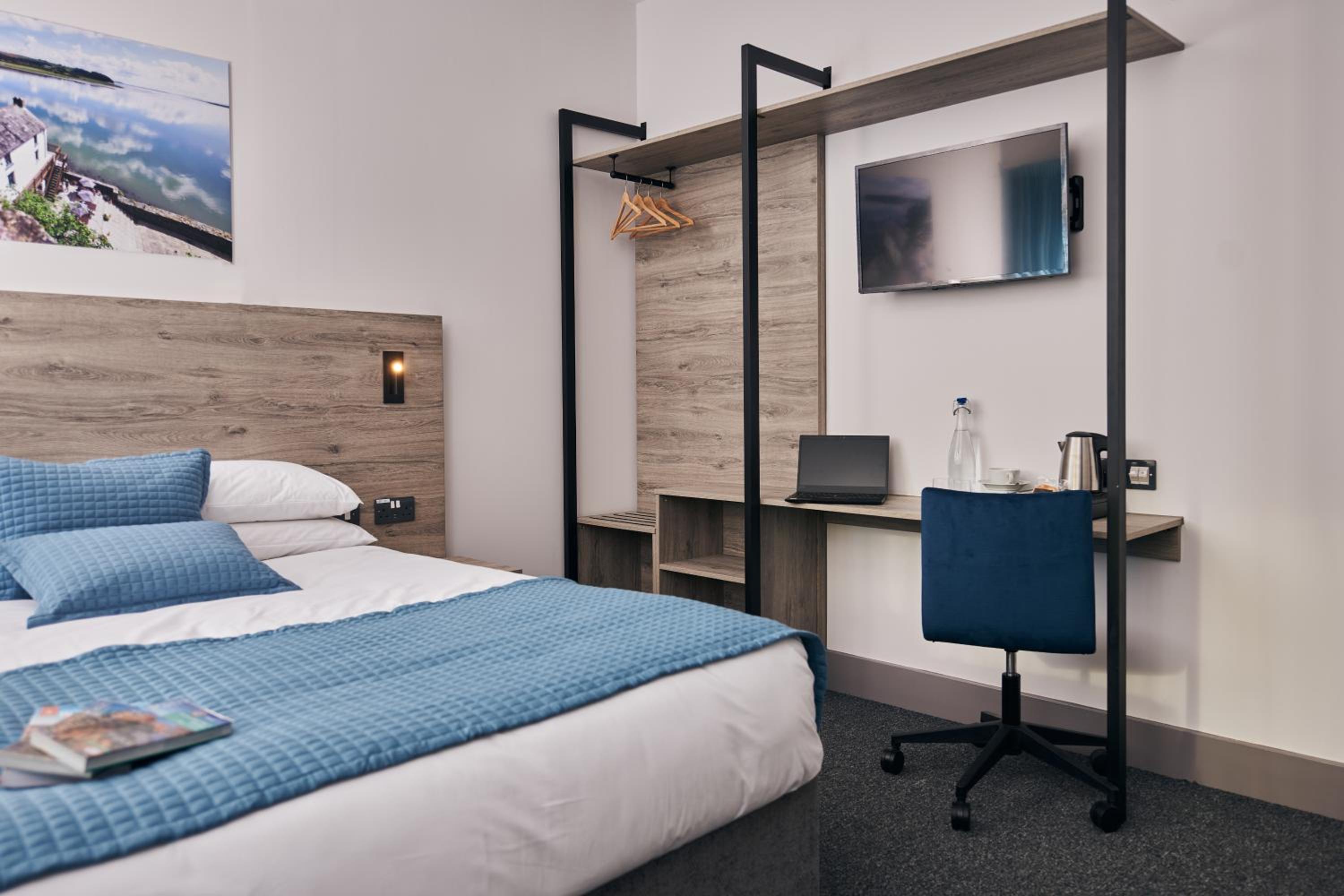 Comfort and Convenience: Each room at Caban, Pendine Sands is thoughtfully equipped with modern amenities for a comfortable stay, including a flat-screen TV, private bathroom, and cozy bed linens.