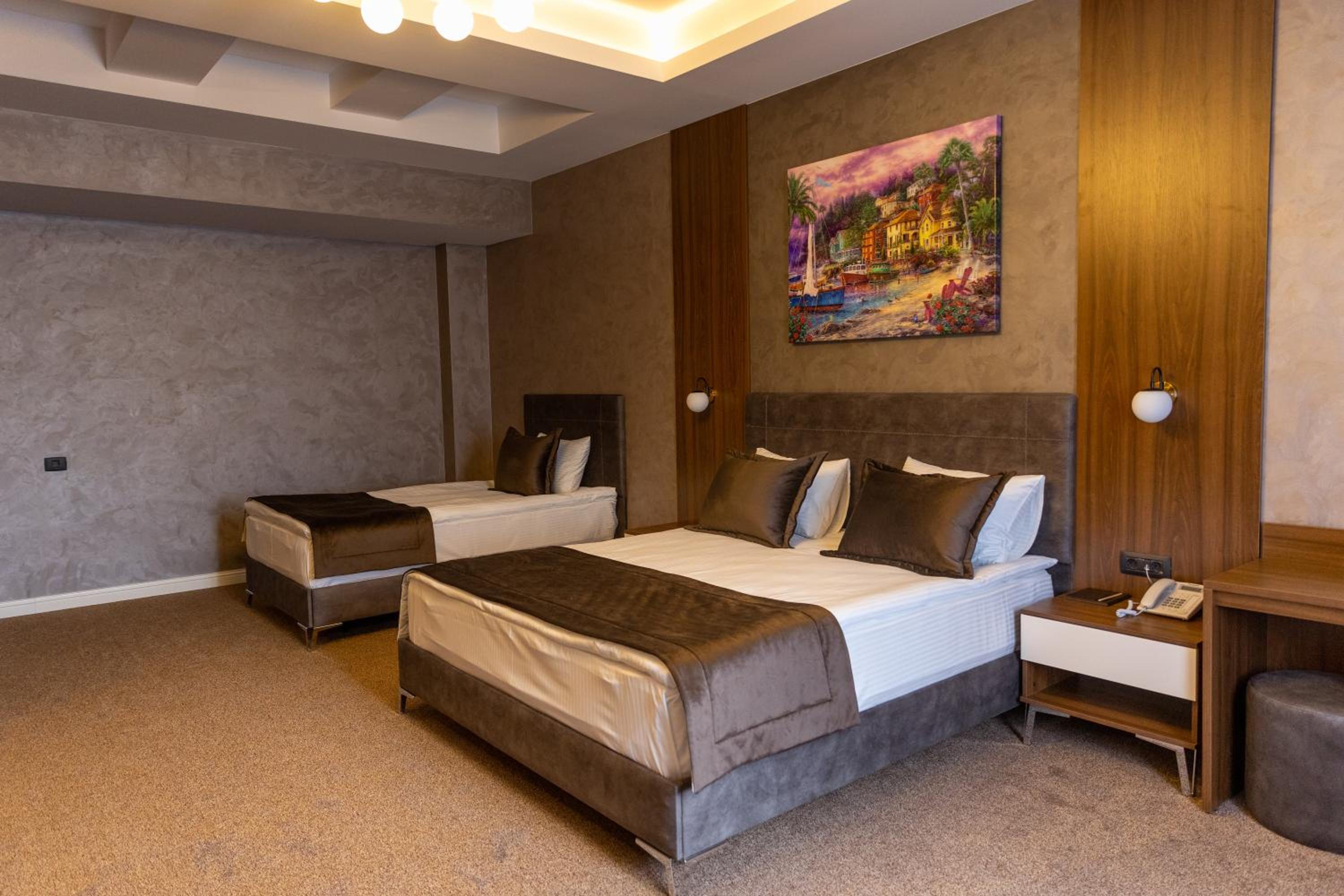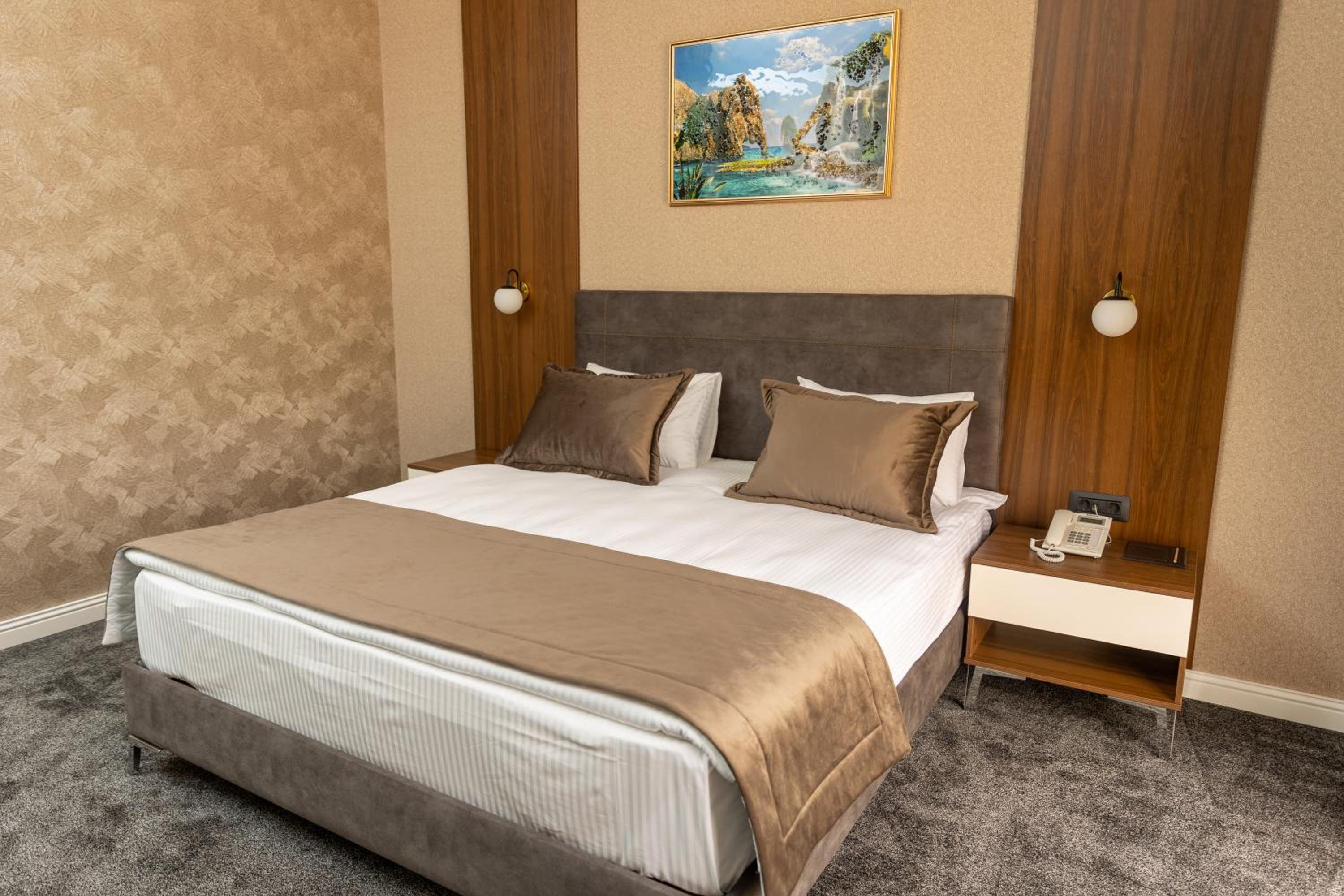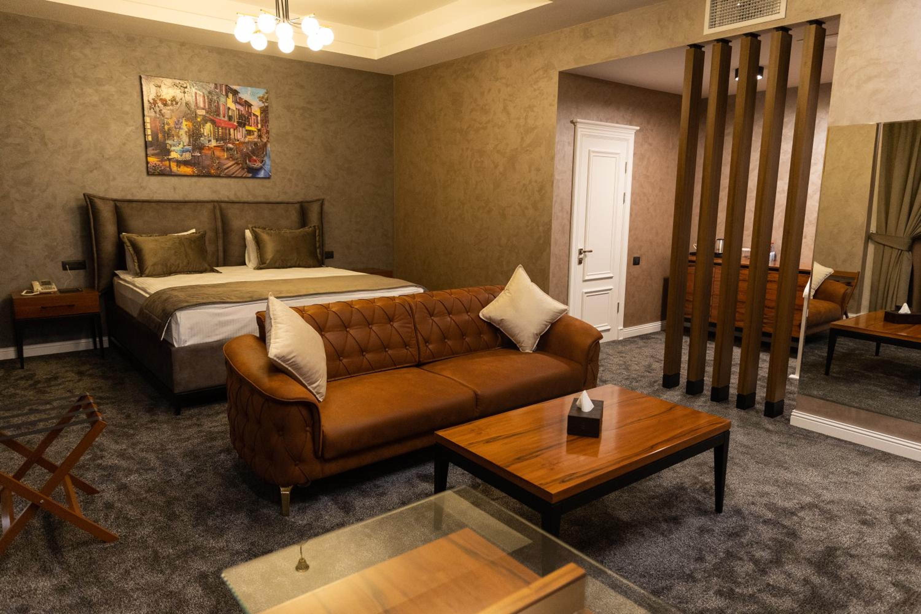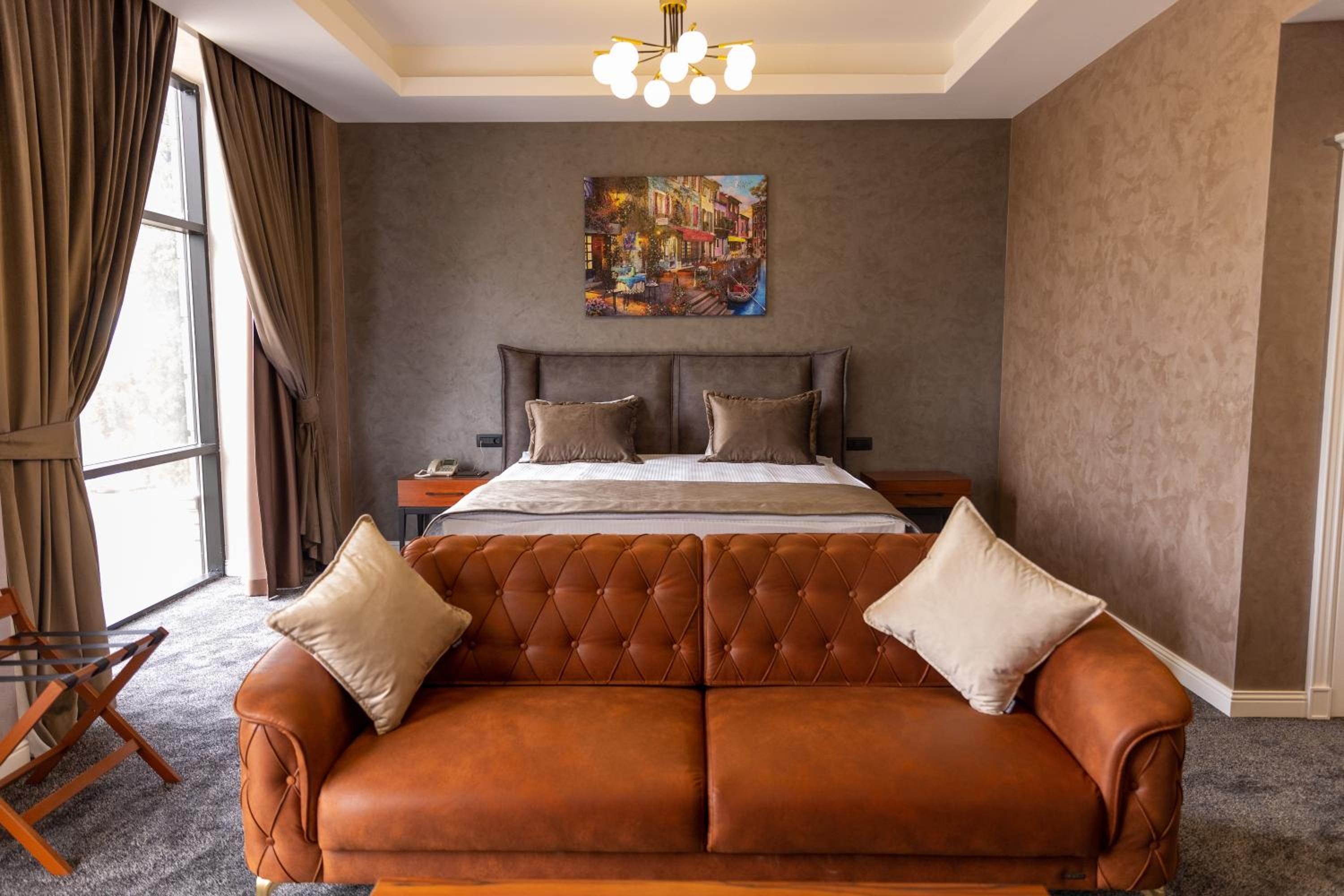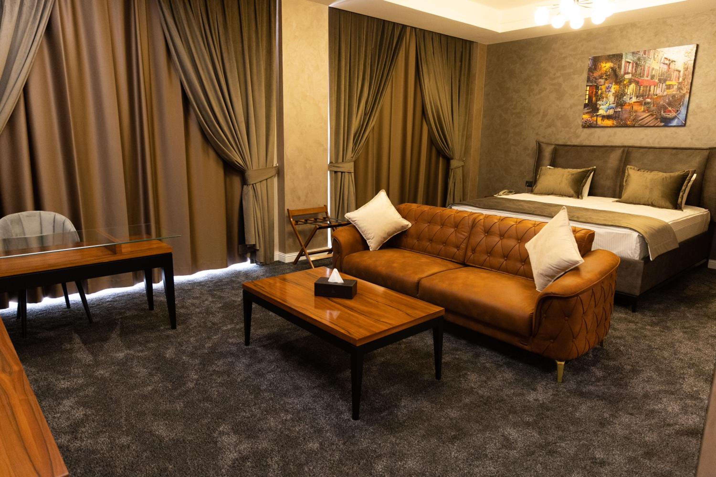 Leon Hotel Spa Ganja offers a luxurious stay with modern amenities. The rooms are elegantly designed, featuring a flat-screen TV, fridge, and free WiFi. Guests can enjoy beautiful city views and relax in the allergy-free environment.