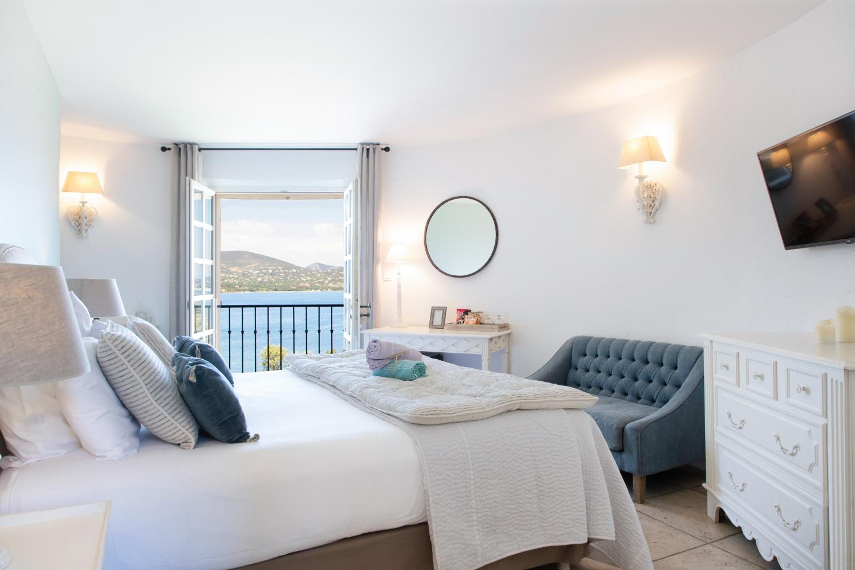 We love the relaxed, boutique-classy experience of well appointed rooms (little tight) but worthy and super comphy beds and pillows. All while enjoying views of the St. Tropez bay from several of the rooms, pool and outdoor dining. Truly a unique experience for those who prefer intimate settings.