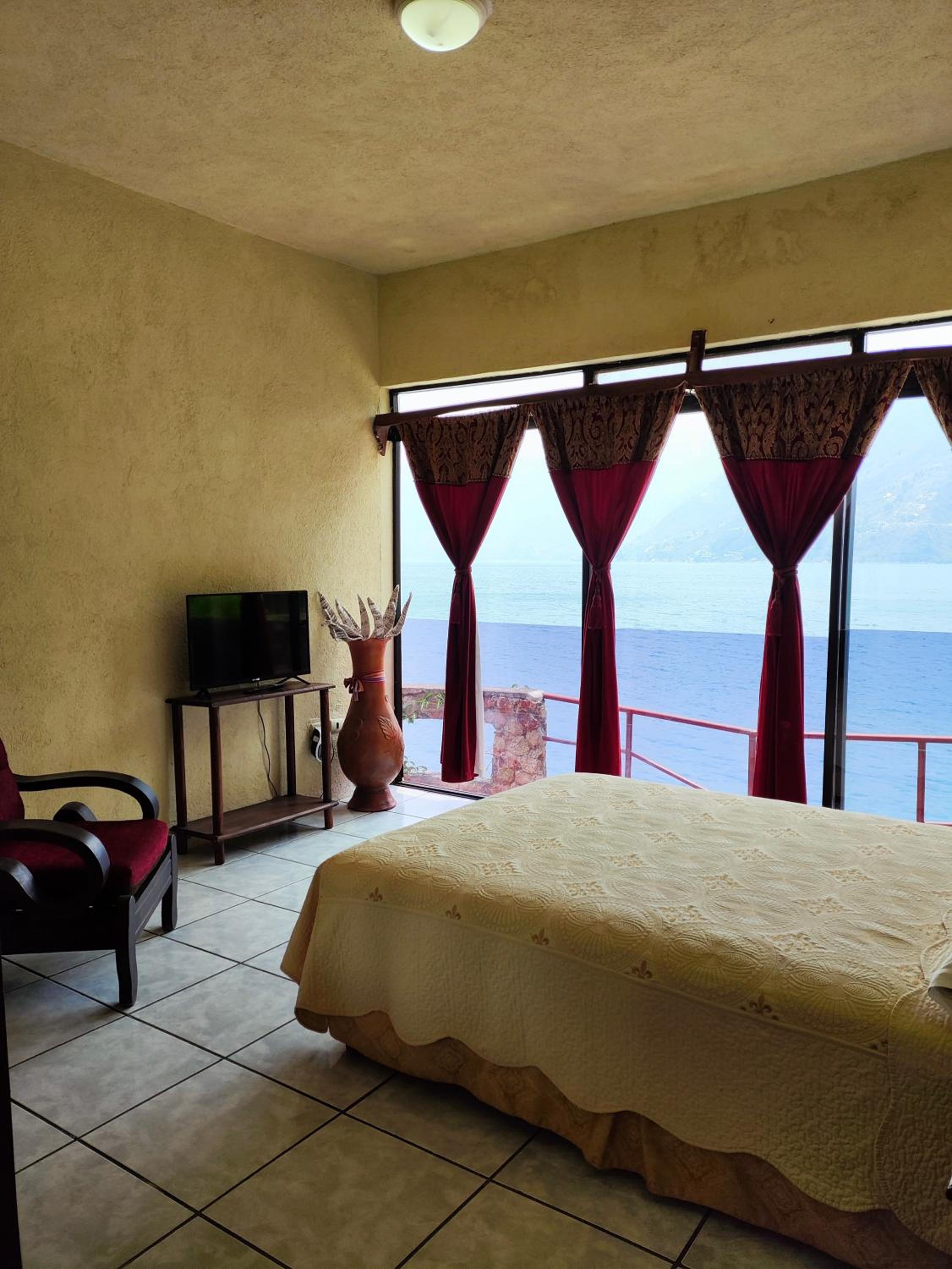 Indulge in our rooms offering breathtaking views of Lake Atitlan or the lush gardens. Each room is equipped with modern amenities including a flat-screen TV and free Wi-Fi, ensuring a comfortable stay.