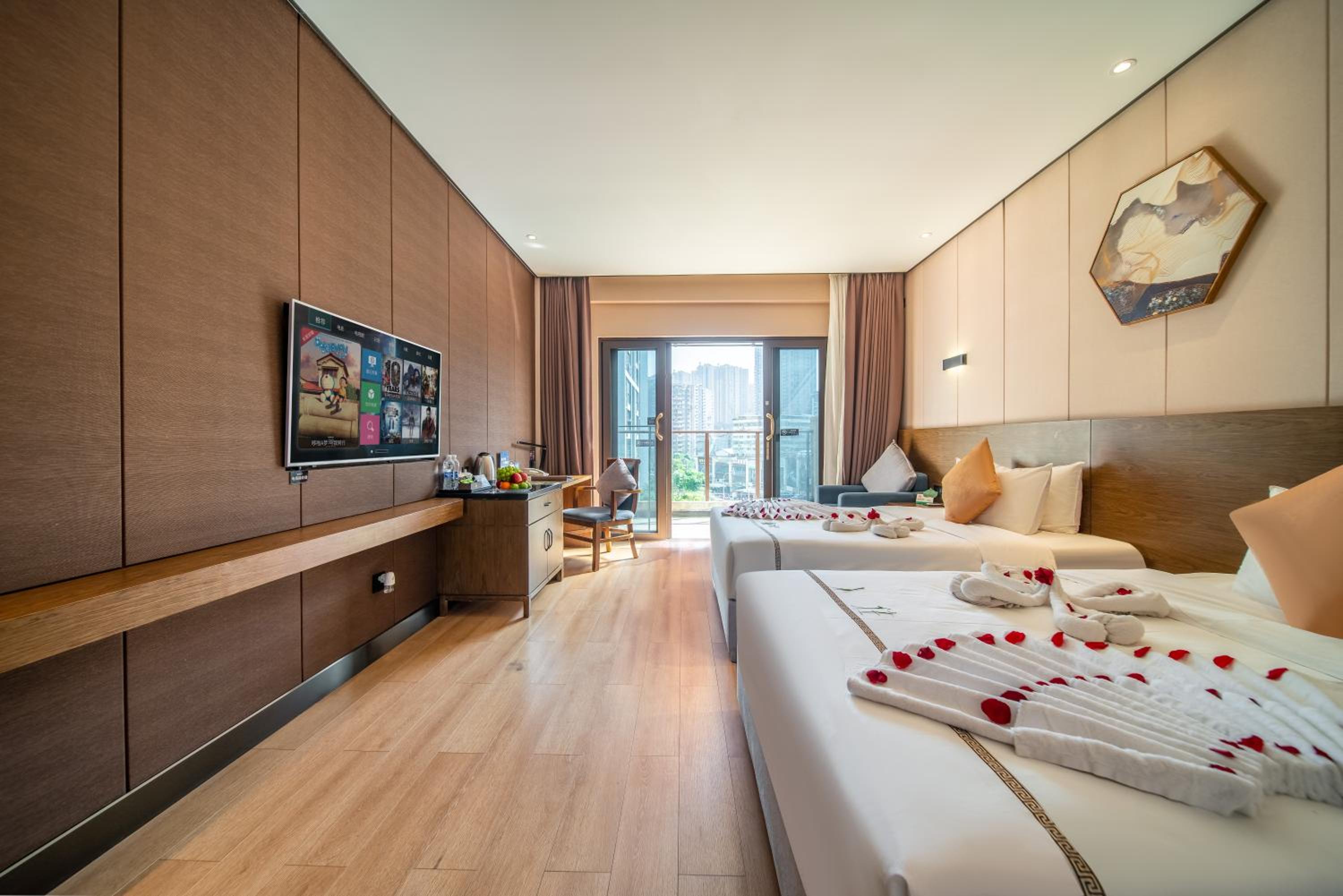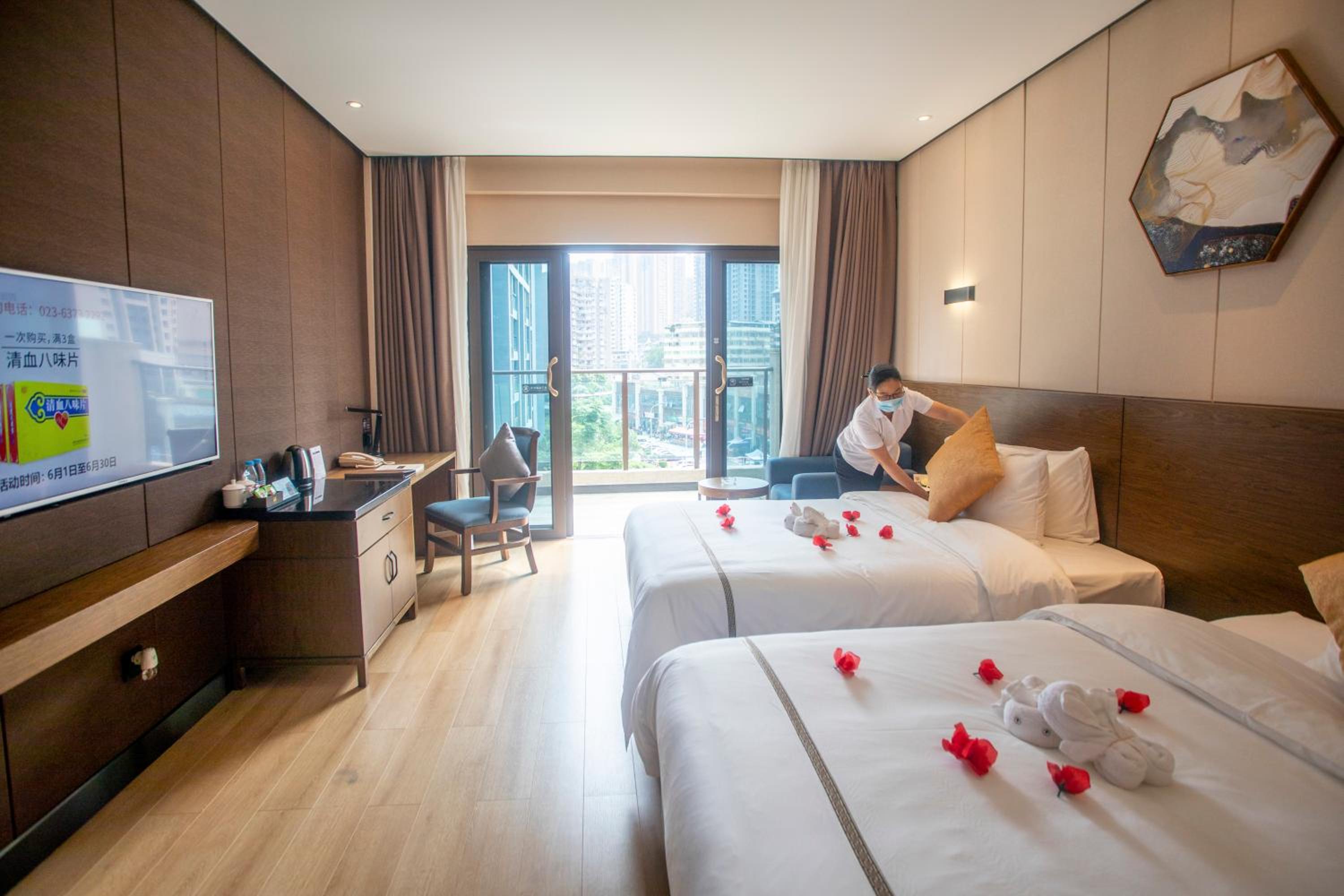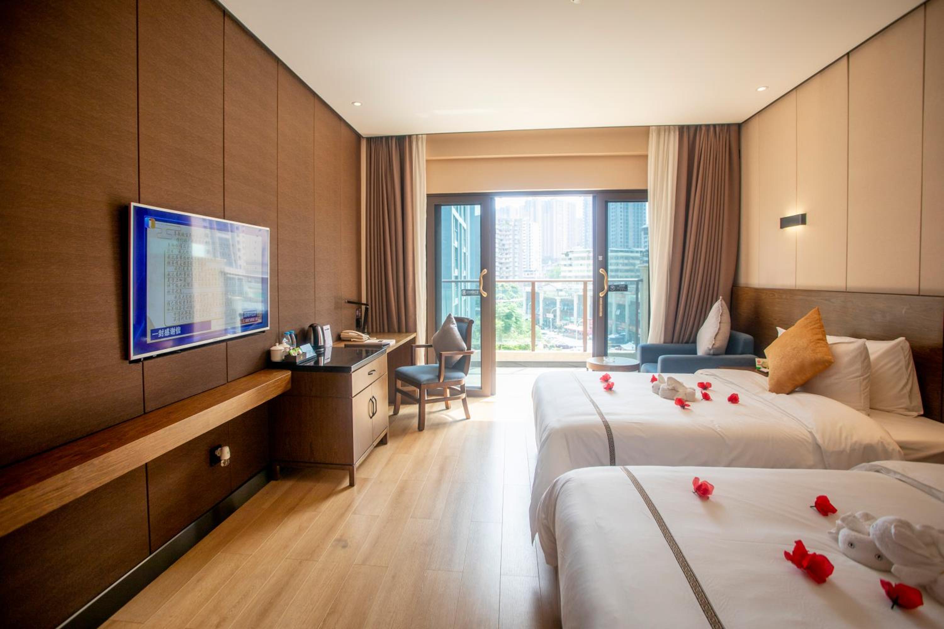Experience luxury at its best at Huanyu Jun Hui Hotel in Shizhu. Indulge in the comfort of well-equipped rooms featuring modern amenities such as air conditioning, flat-screen TV, and free WiFi. Enjoy a relaxing shower with complimentary toiletries, and unwind in a cozy ambiance designed for your utmost satisfaction.