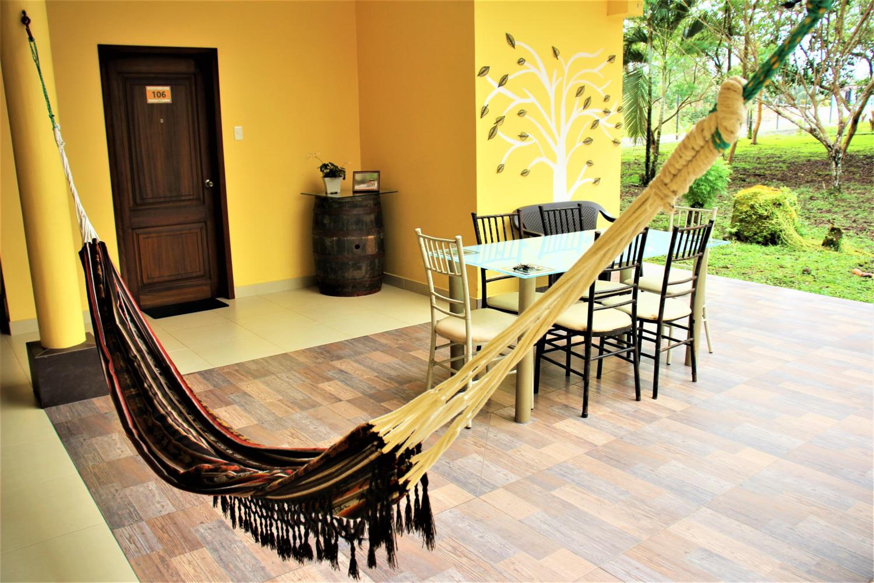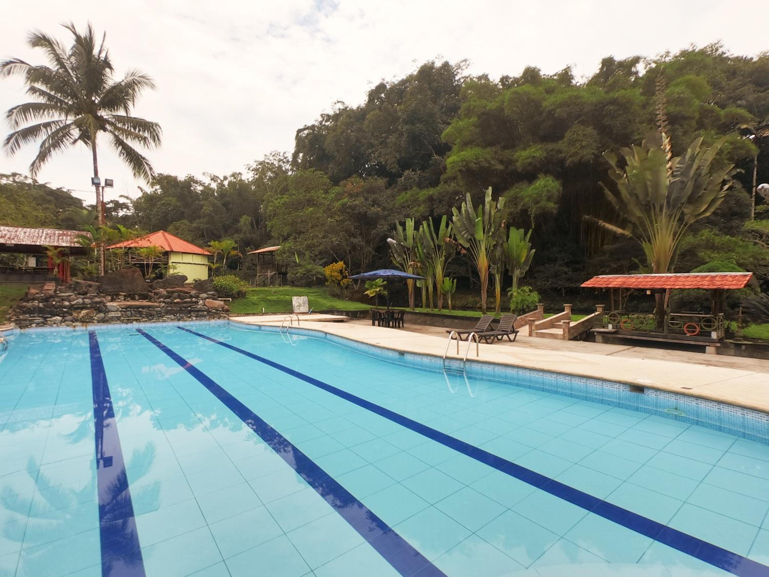 We were driving to Baños after a trip to Cuyabeno and we stopped at Hosteria Ojo de Agua as a good distance to break up the drive. The hotel far surpassed our expectations. The rooms were modern and clean. Our window had a lovely view of the pond. And we loved the pool and property. The property has loads of extra touches that really make it so special, like a fairy house, a volley ball net, hammocks and swings, and nice little spots to sit.