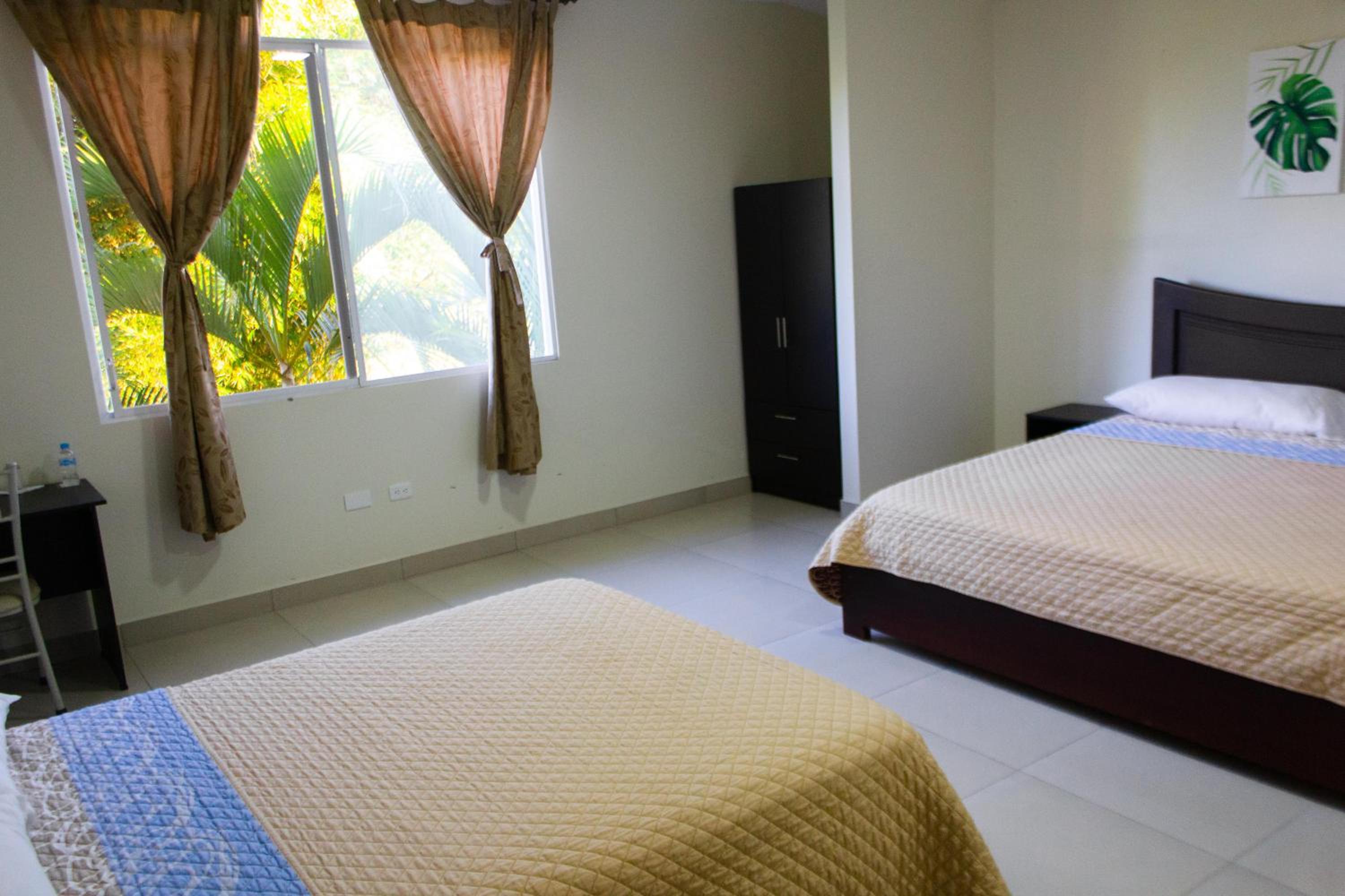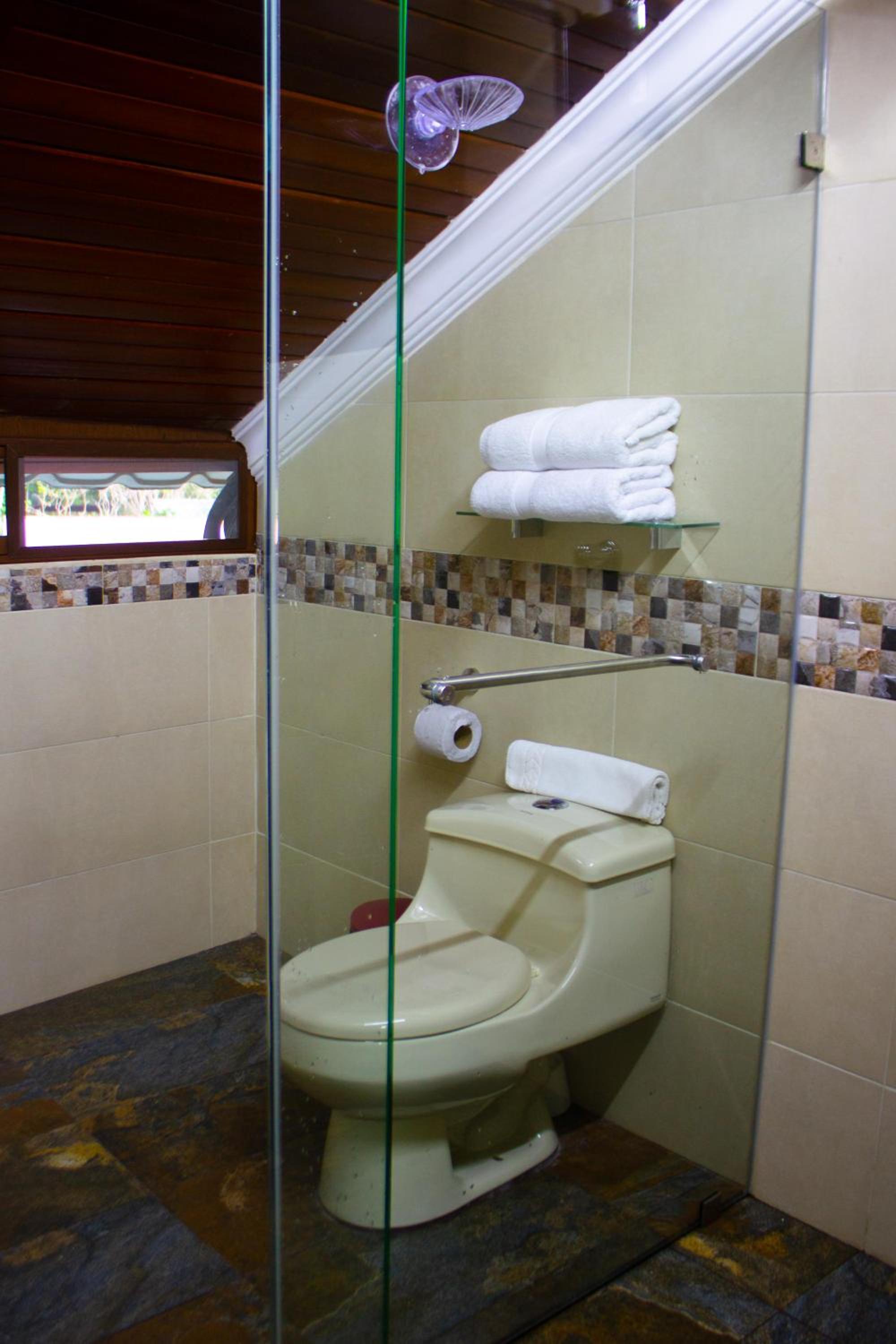 We shared a room with our son and it was spacious, beds were comfortable and hot water consistent. The pool area is very large and private with much shade in a beautiful garden setting . Provisions for all manner of food and drink and to be waited on by friendly staff