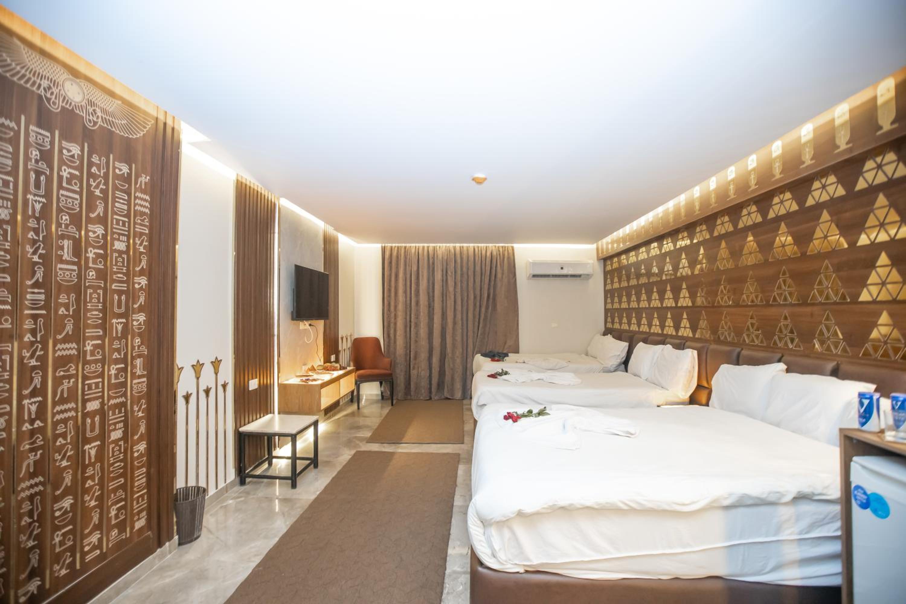 The room was spacious, clean, and well-organized, equipped with everything you might need. The rooftop view was absolutely stunning, directly overlooking the pyramids—it was my favorite part of staying at this hotel. Overall, an excellent deal for the price.