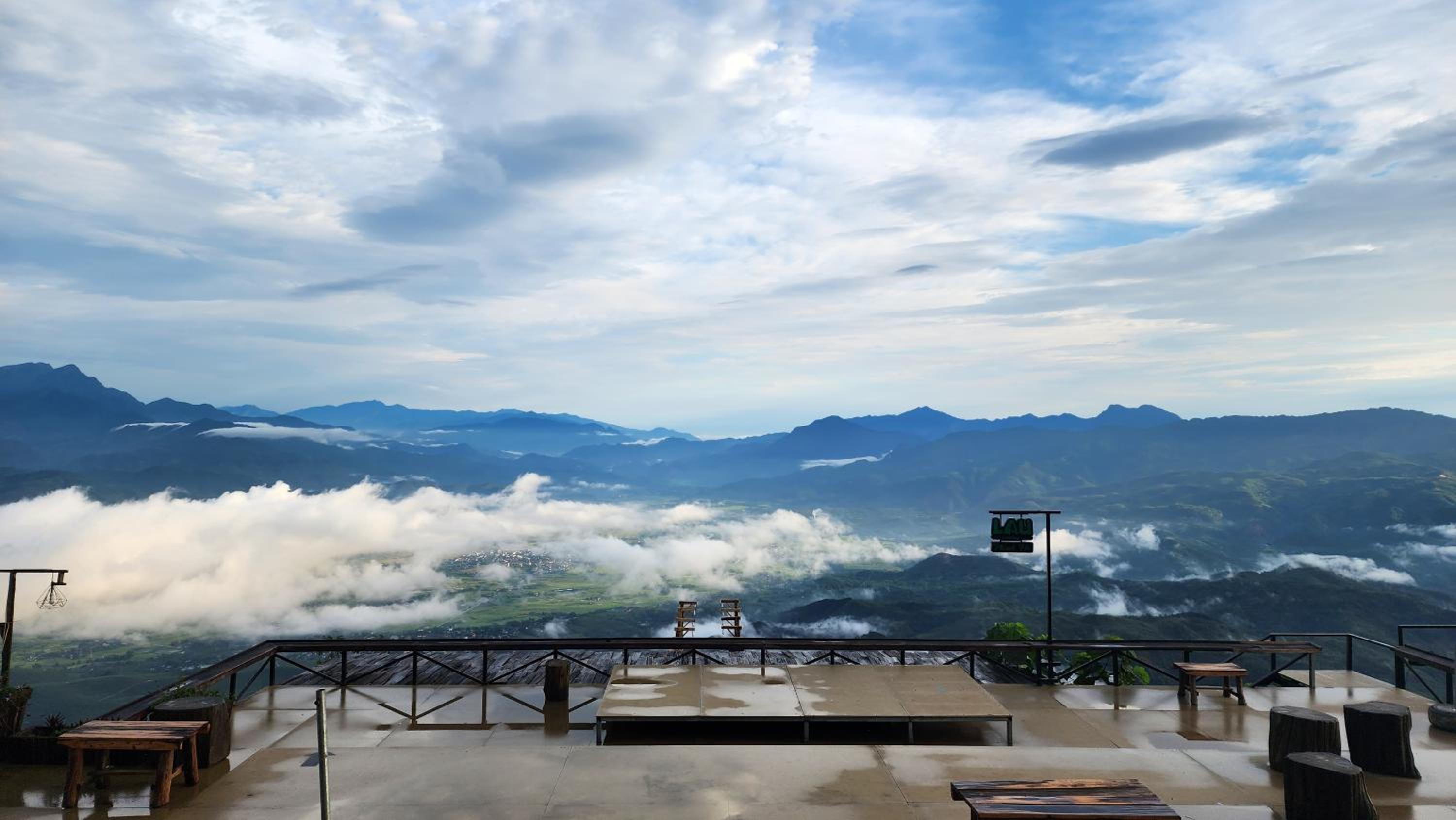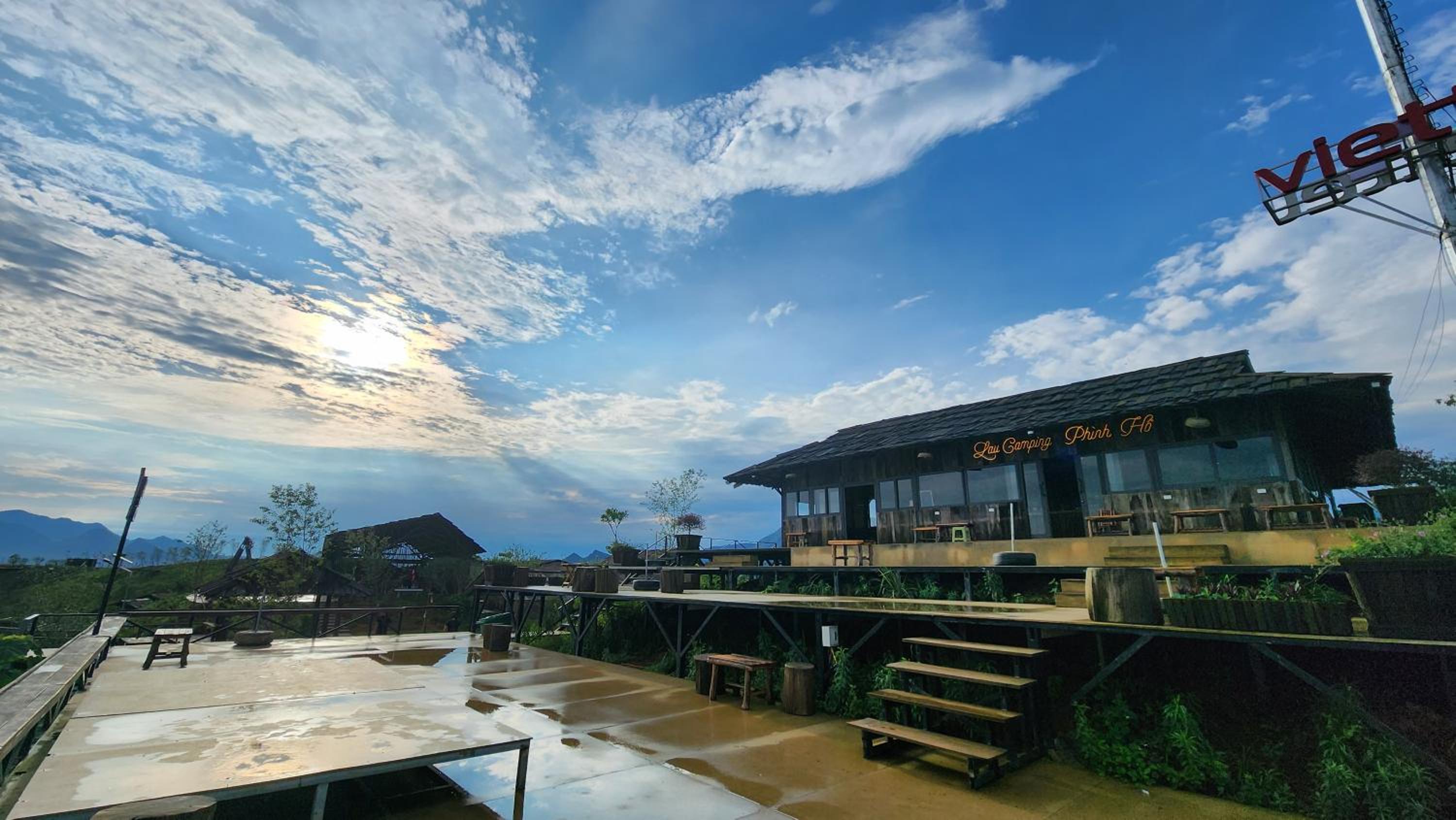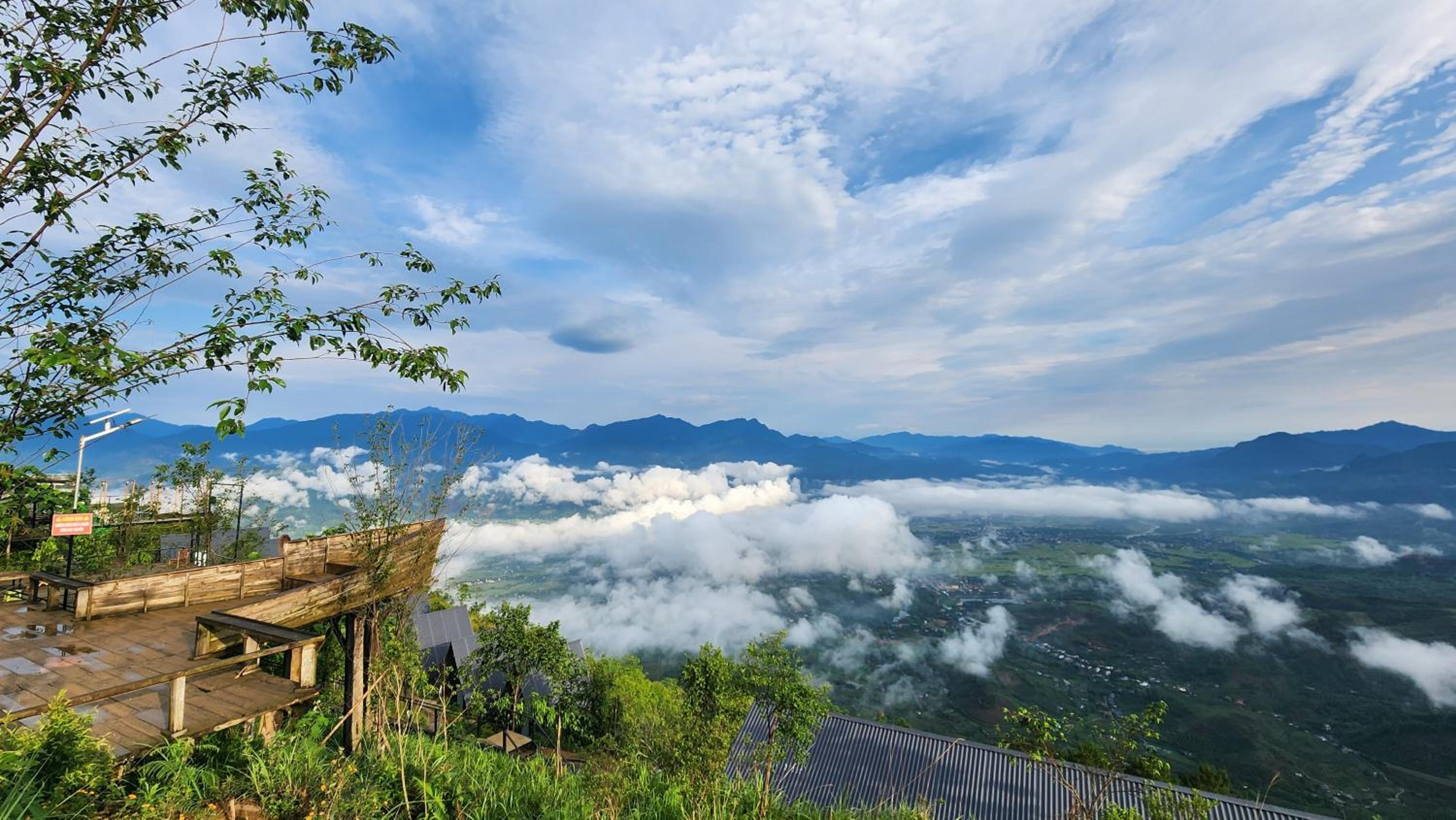 The view is stunning, especially for cloud hunting in the morning. The atmosphere is perfect for photopraphy and relaxation, with mountain views and a clear sight of the second largest Muong Lo plain in the northwest. The meals here are also excellent.