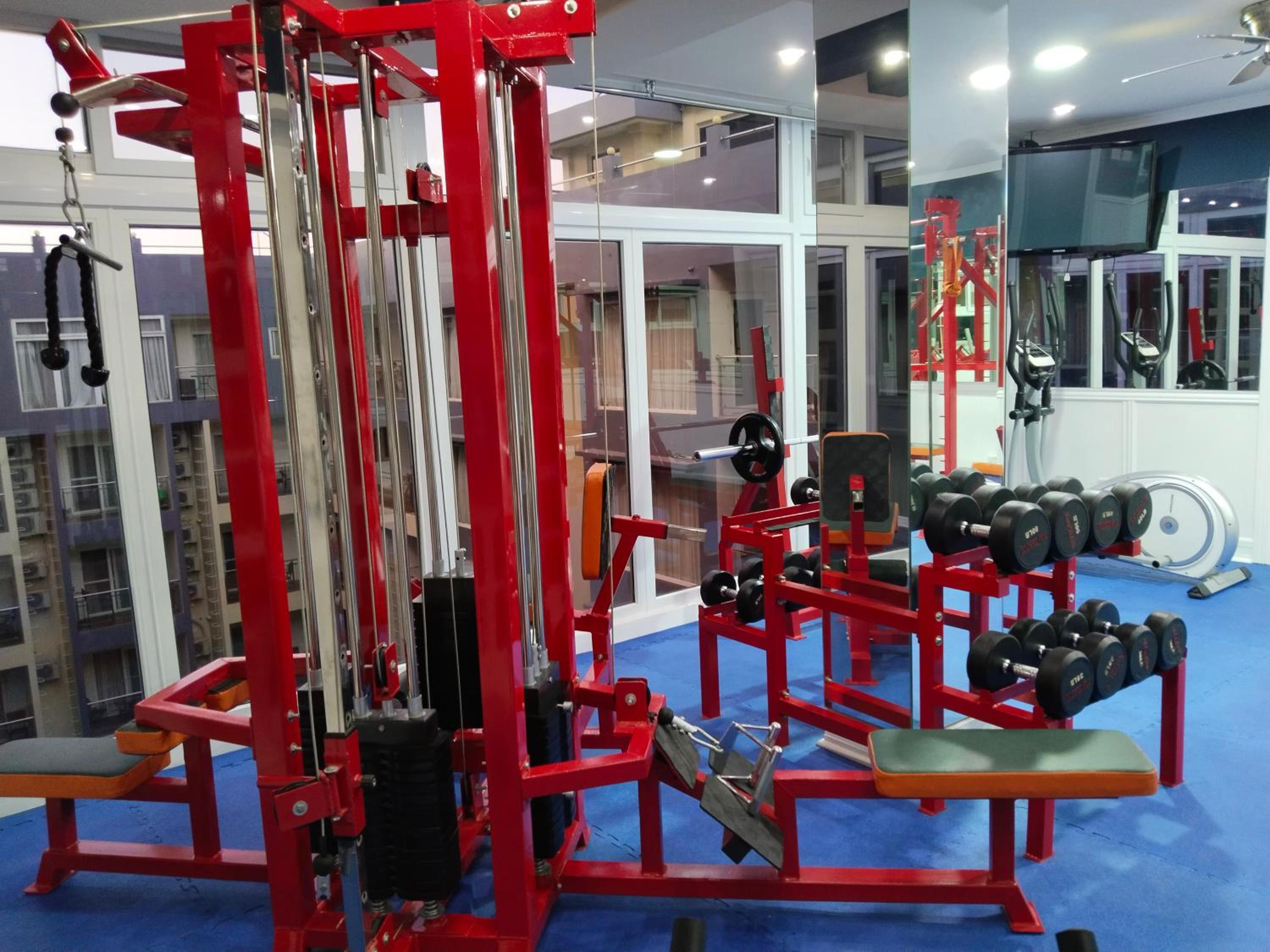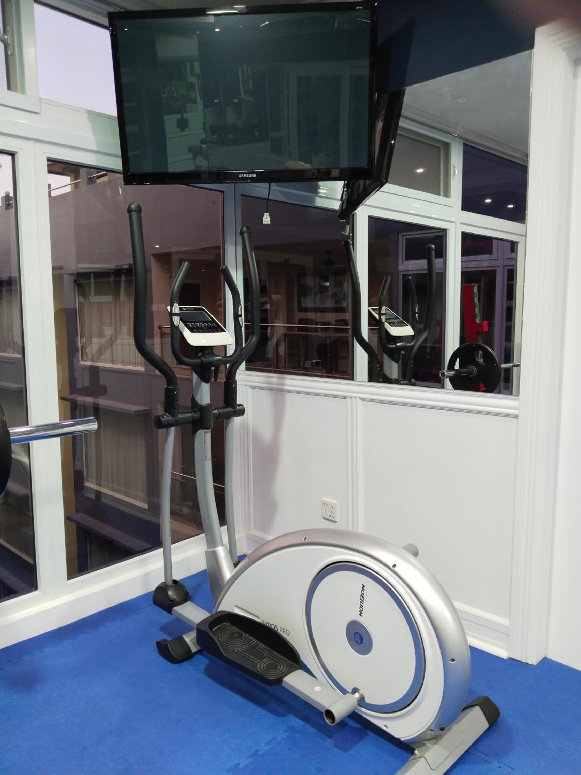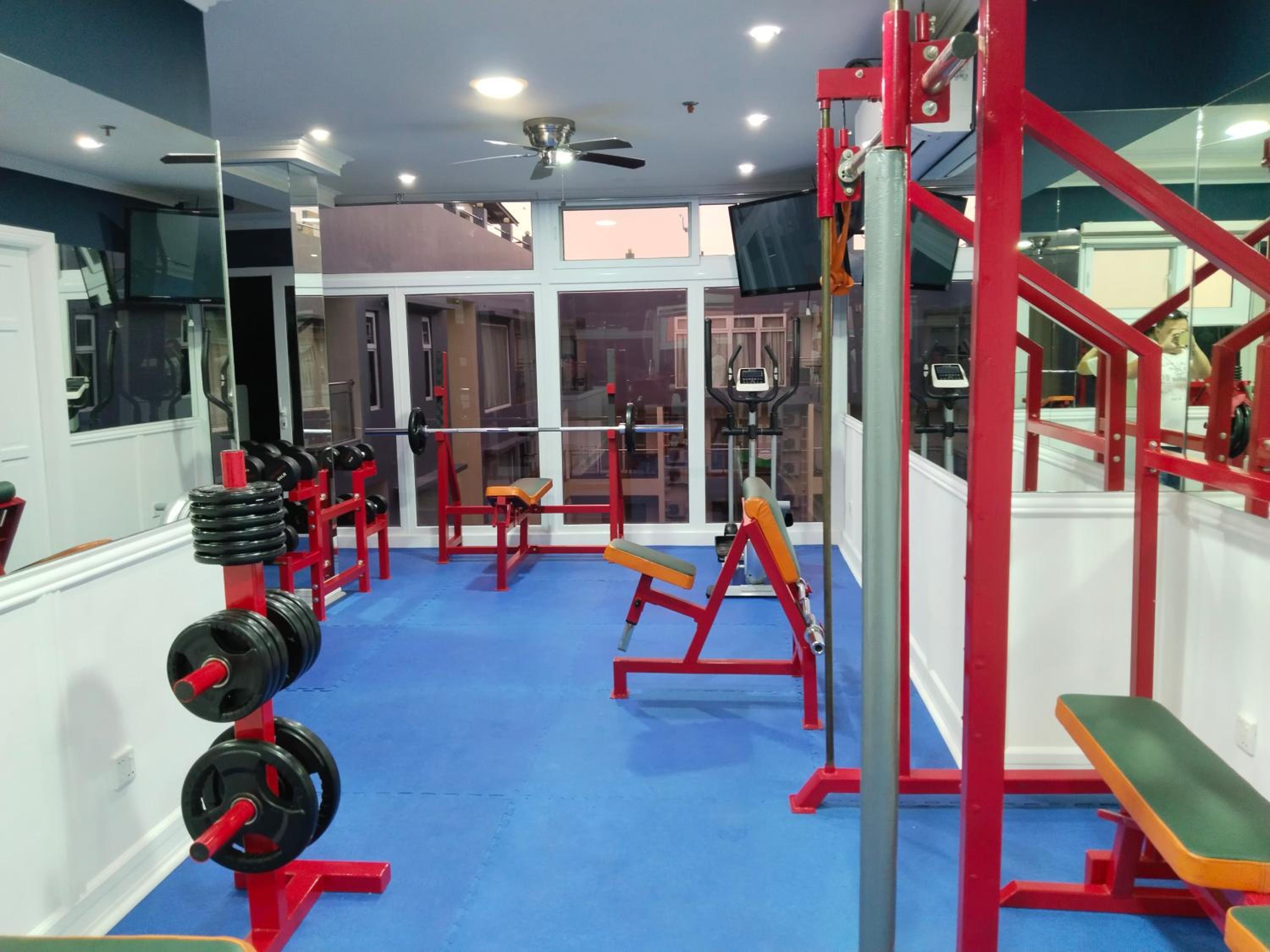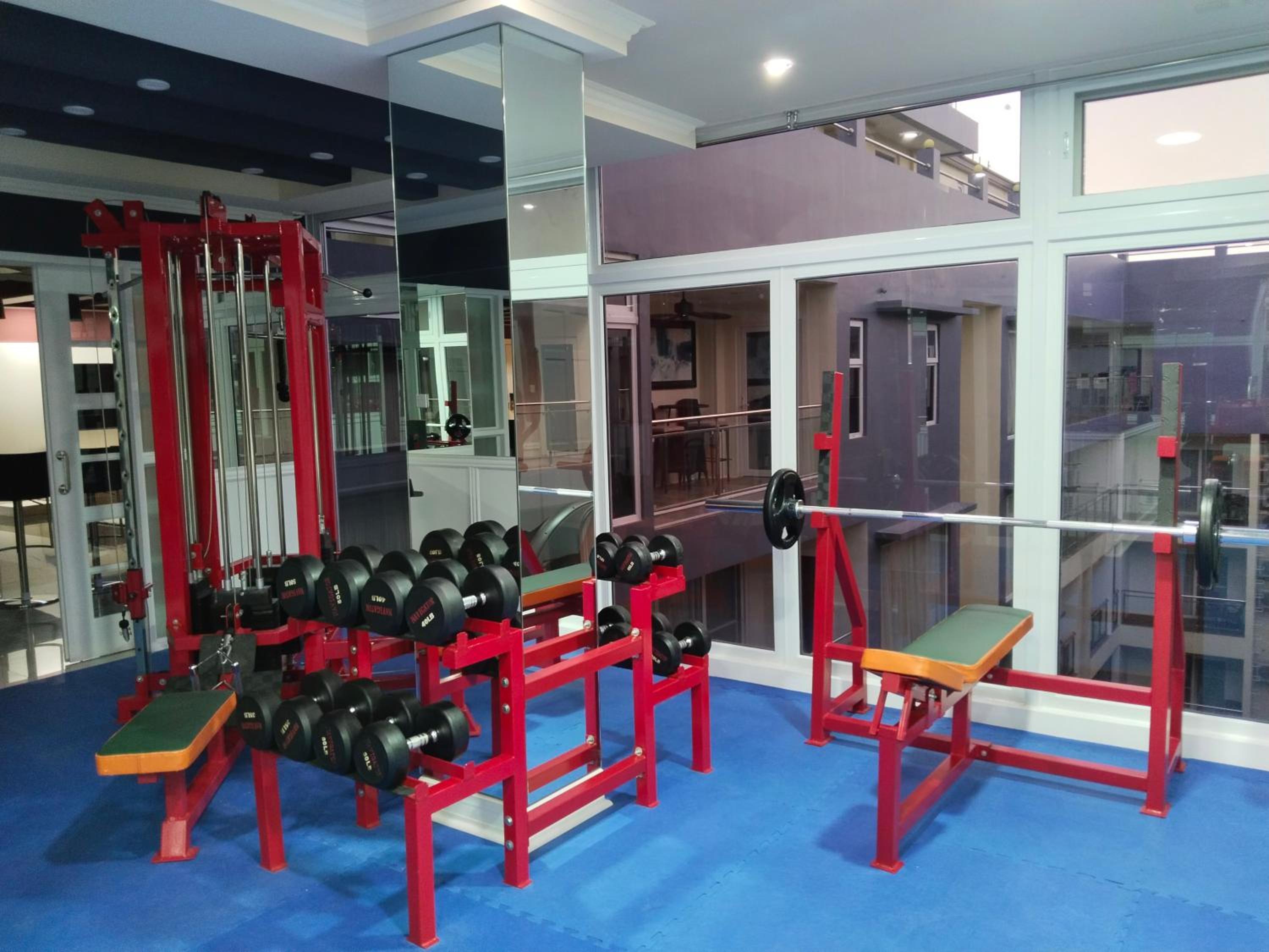 The gym, and there is no dishwasher.