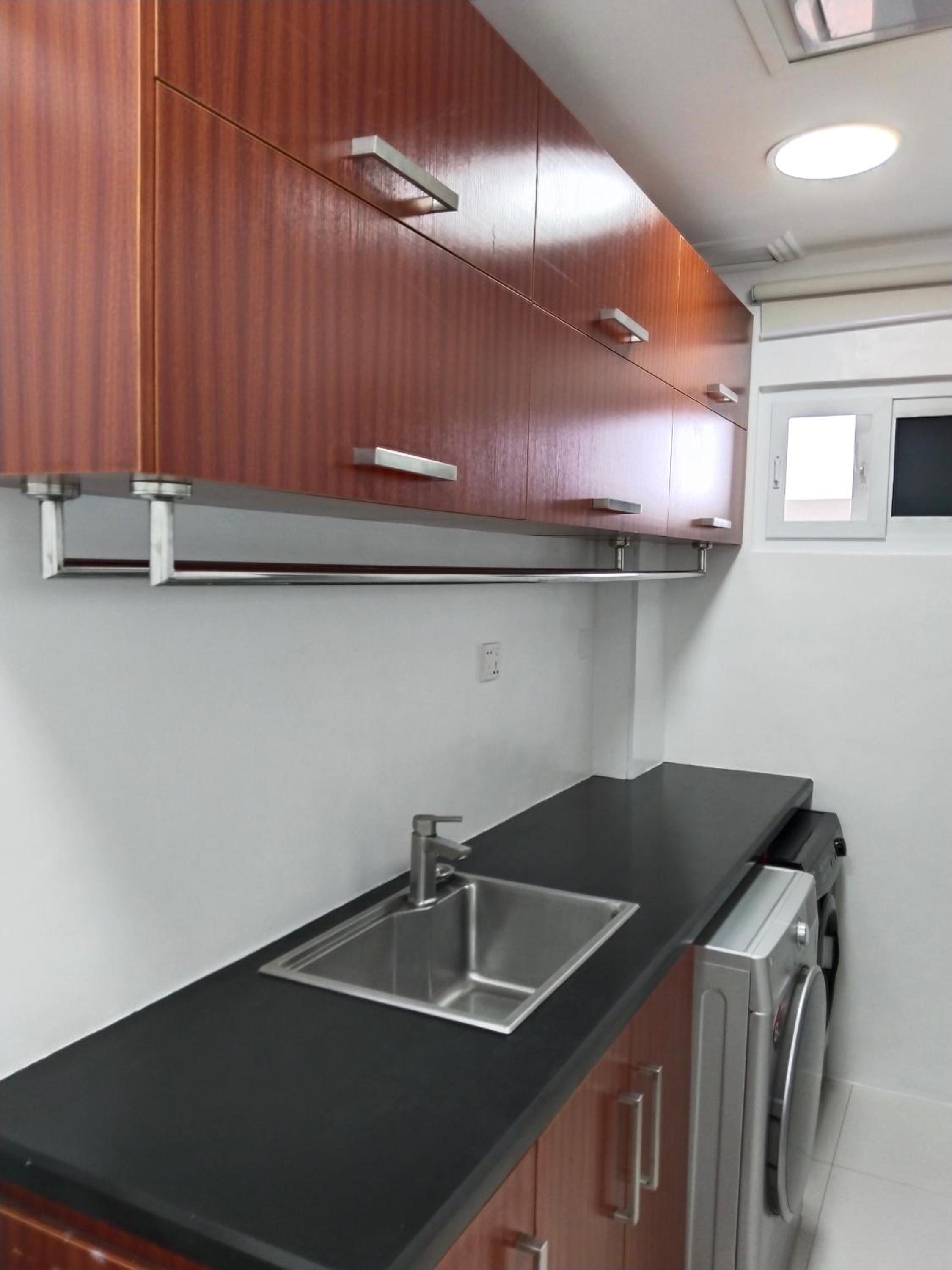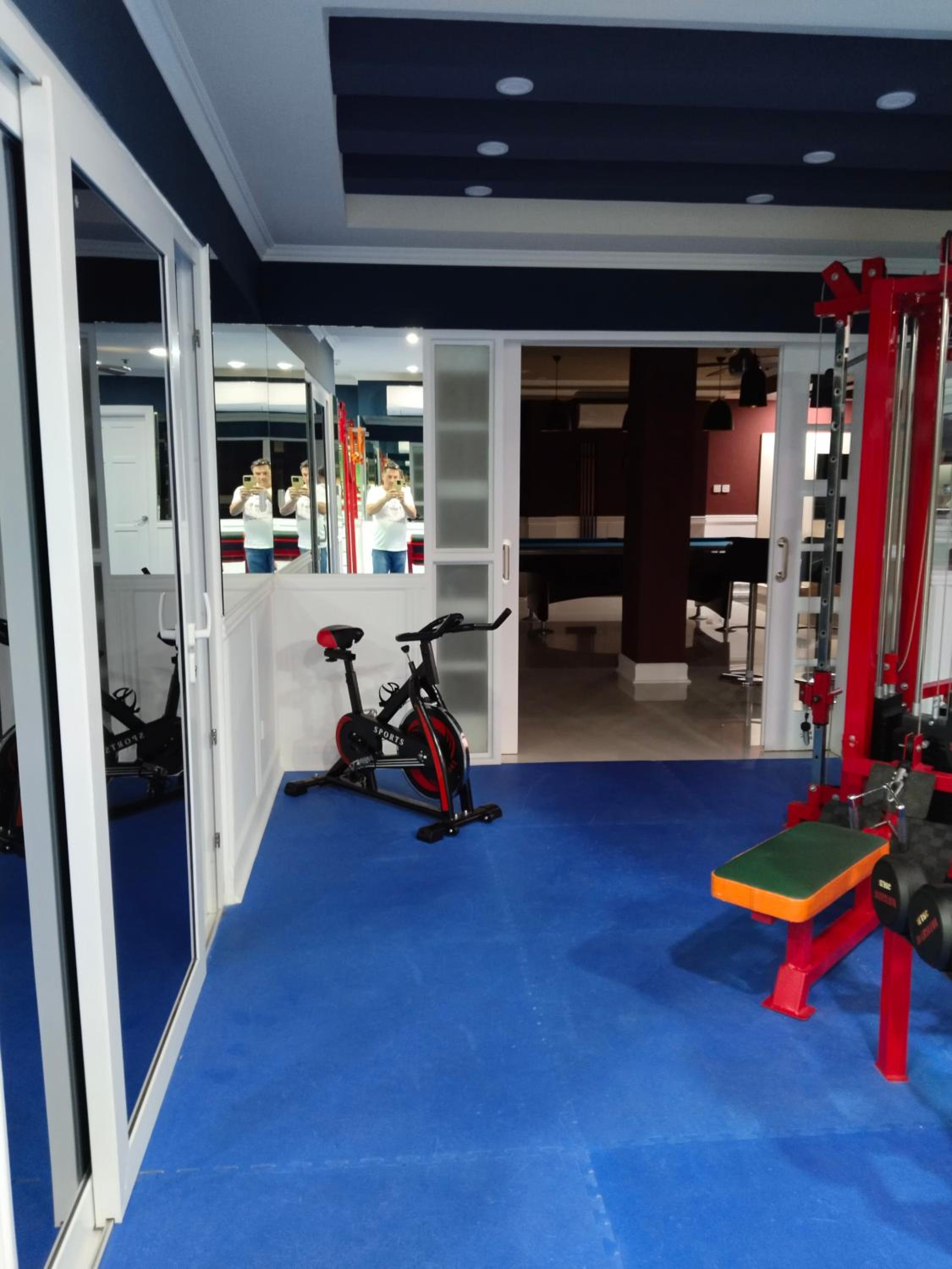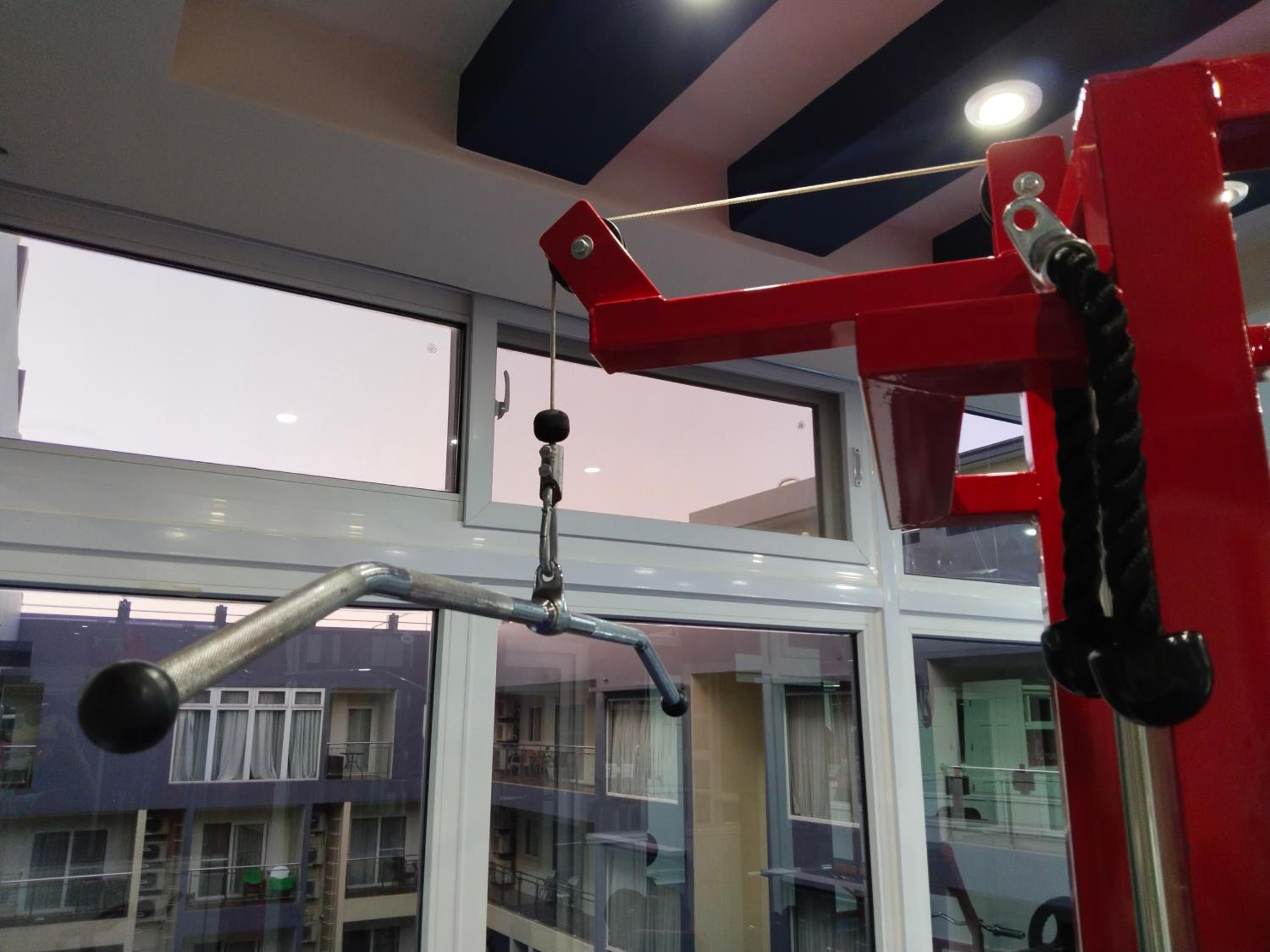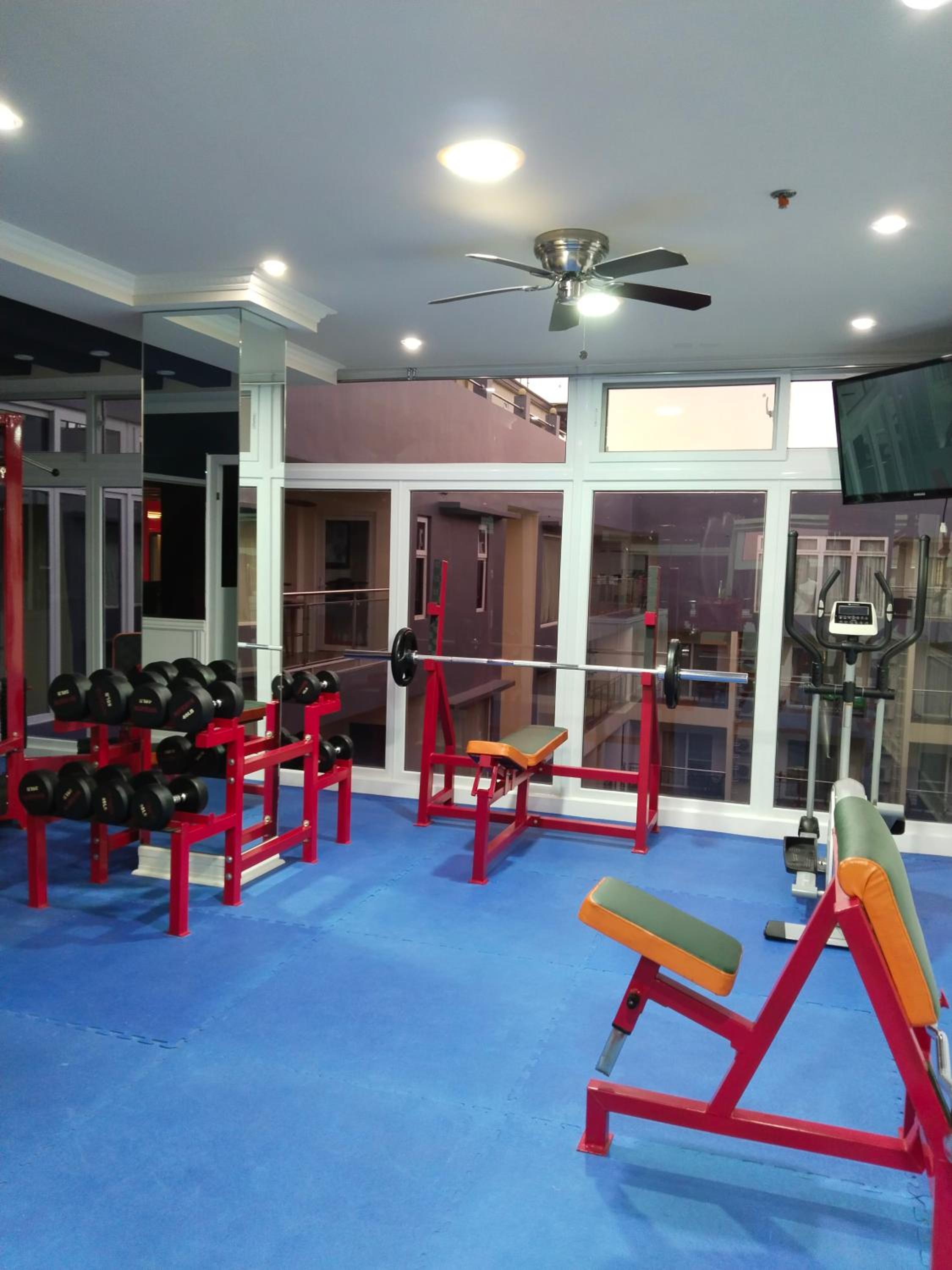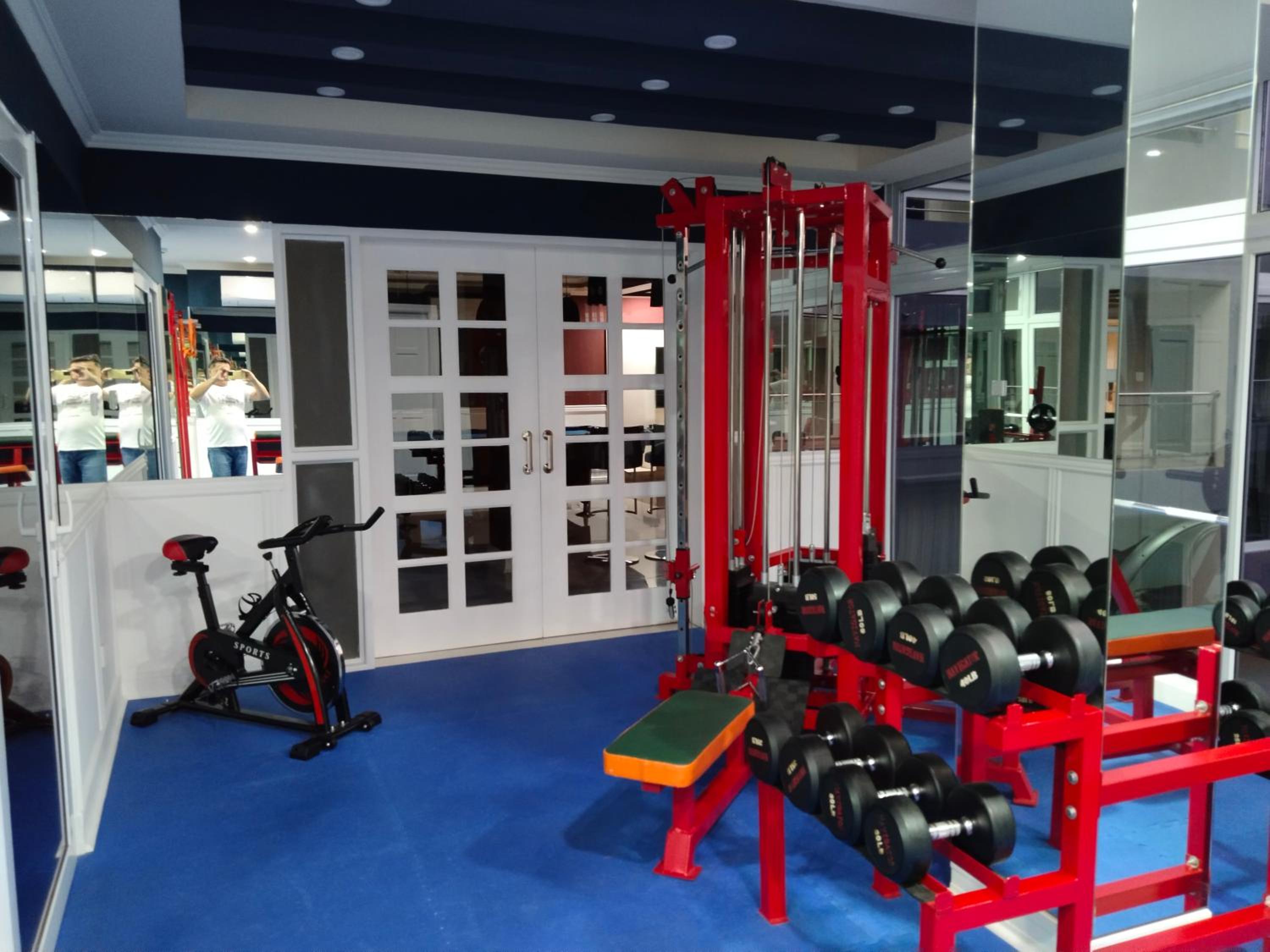 The gym, and there is no dishwasher.