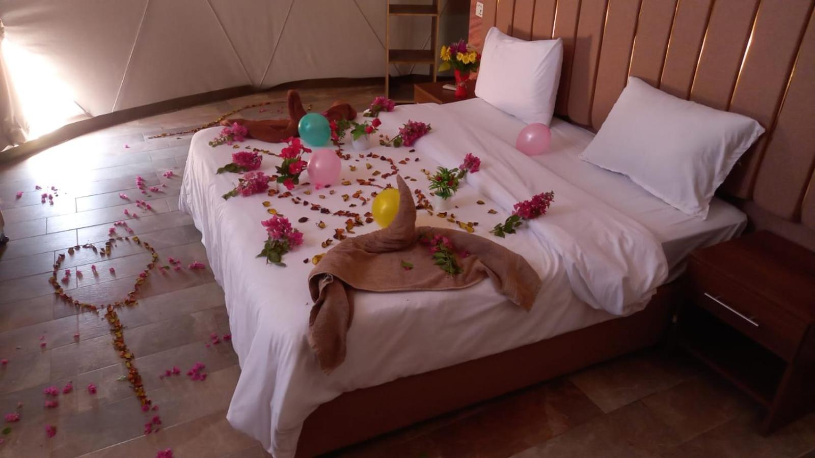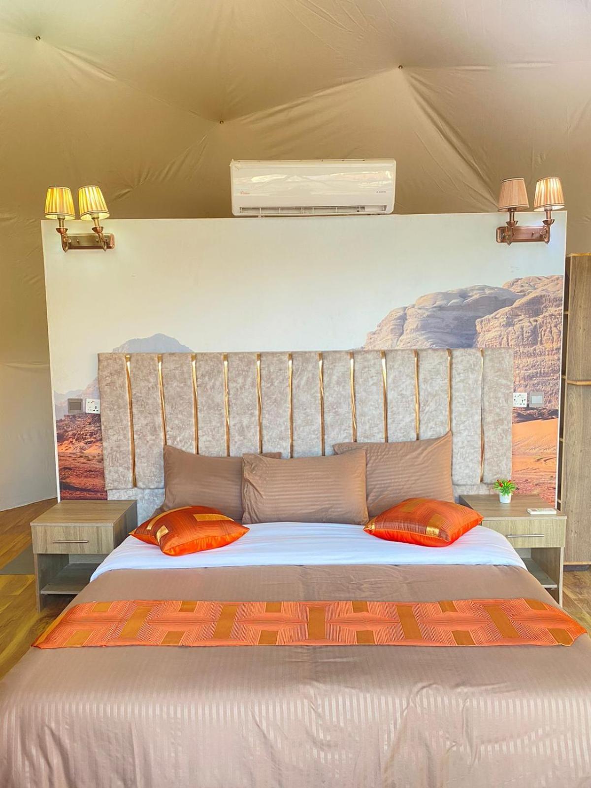 Escape to a unique desert glamping experience at Wadi Rum Desert Tours and Glamping with Hussein. Each air-conditioned tent features a private bathroom and terrace with stunning mountain views.