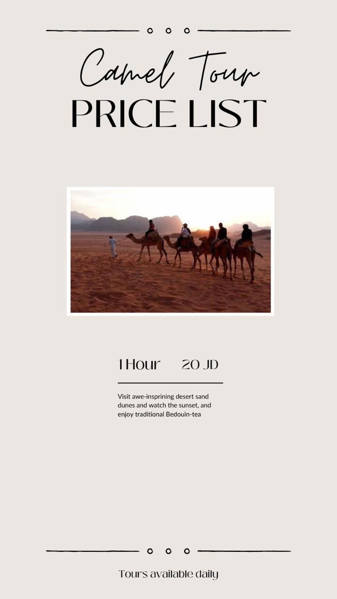 Unforgettable Desert Adventure: "My stay at the Wadi Rum camp was an adventure of a lifetime. The red sand dunes and rugged mountains provided the perfect backdrop for an unforgettable desert safari. Highly recommend for anyone seeking an authentic outdoor experience."