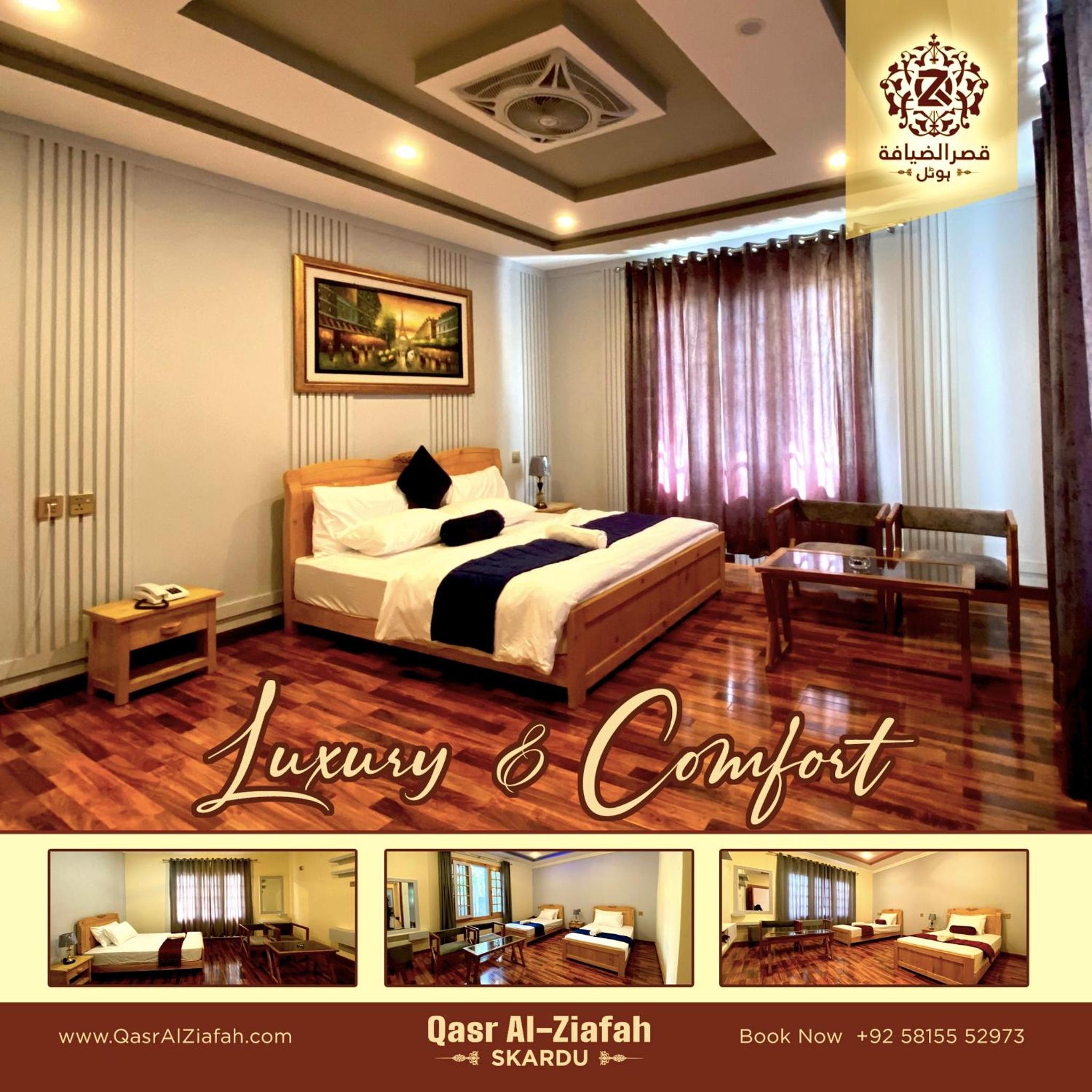 To book your stay at Qasr Al Ziafah Hotel Skardu and indulge in luxury and convenience.