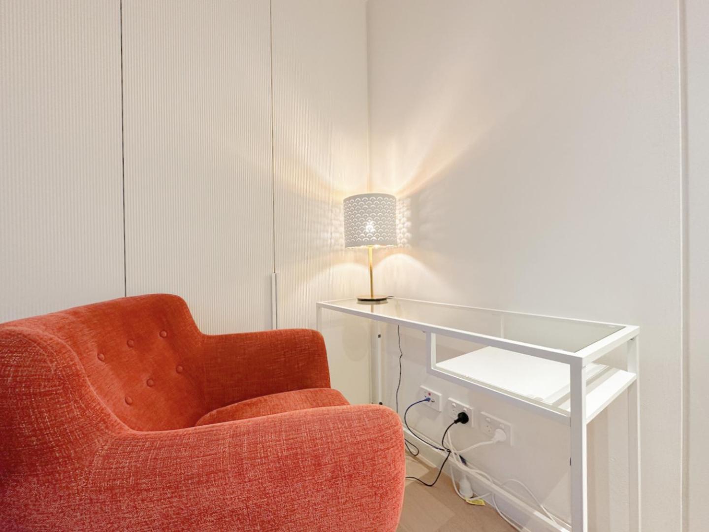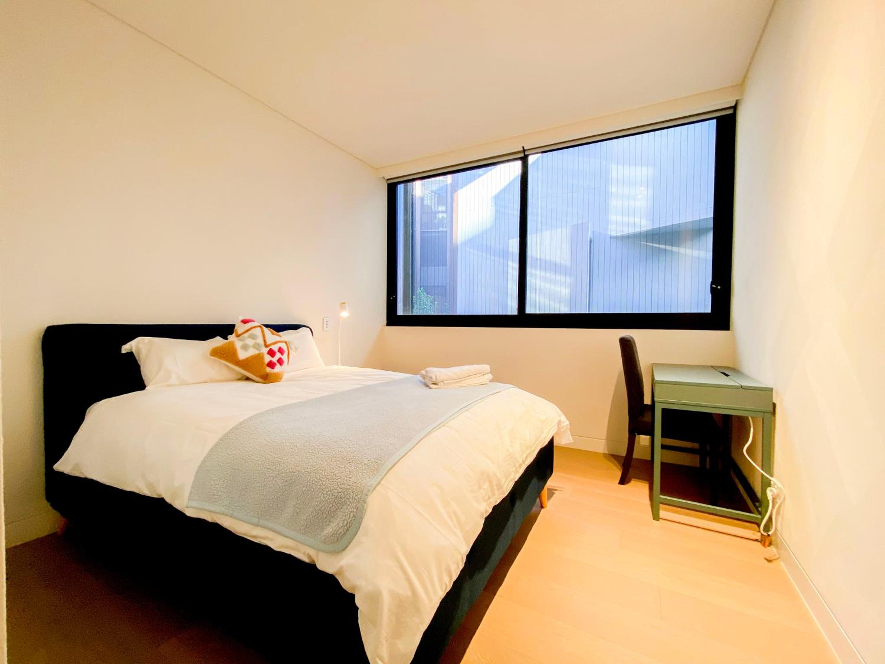 Each guest unit at the homestay is thoughtfully furnished with a desk, cozy bed linen, and fluffy towels for a comfortable stay.