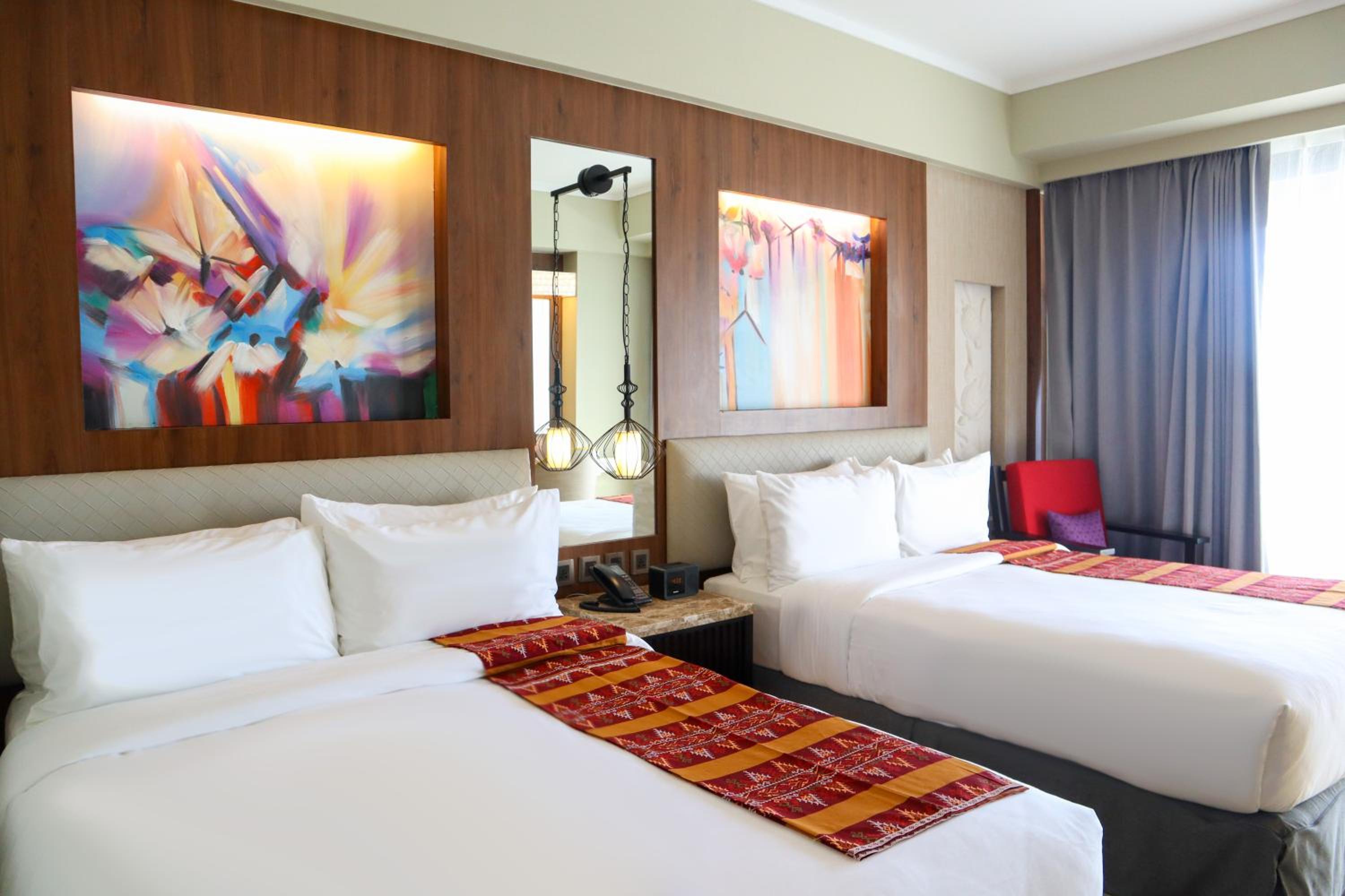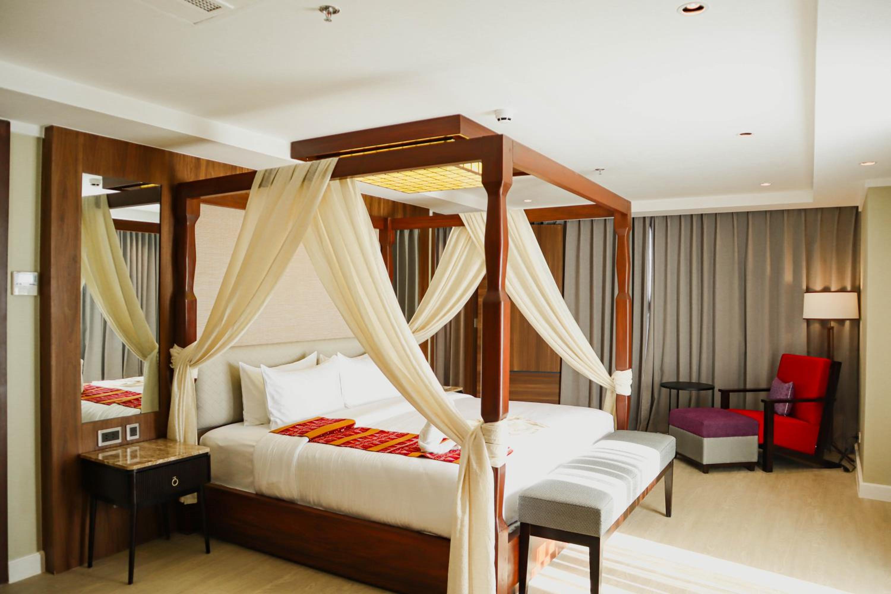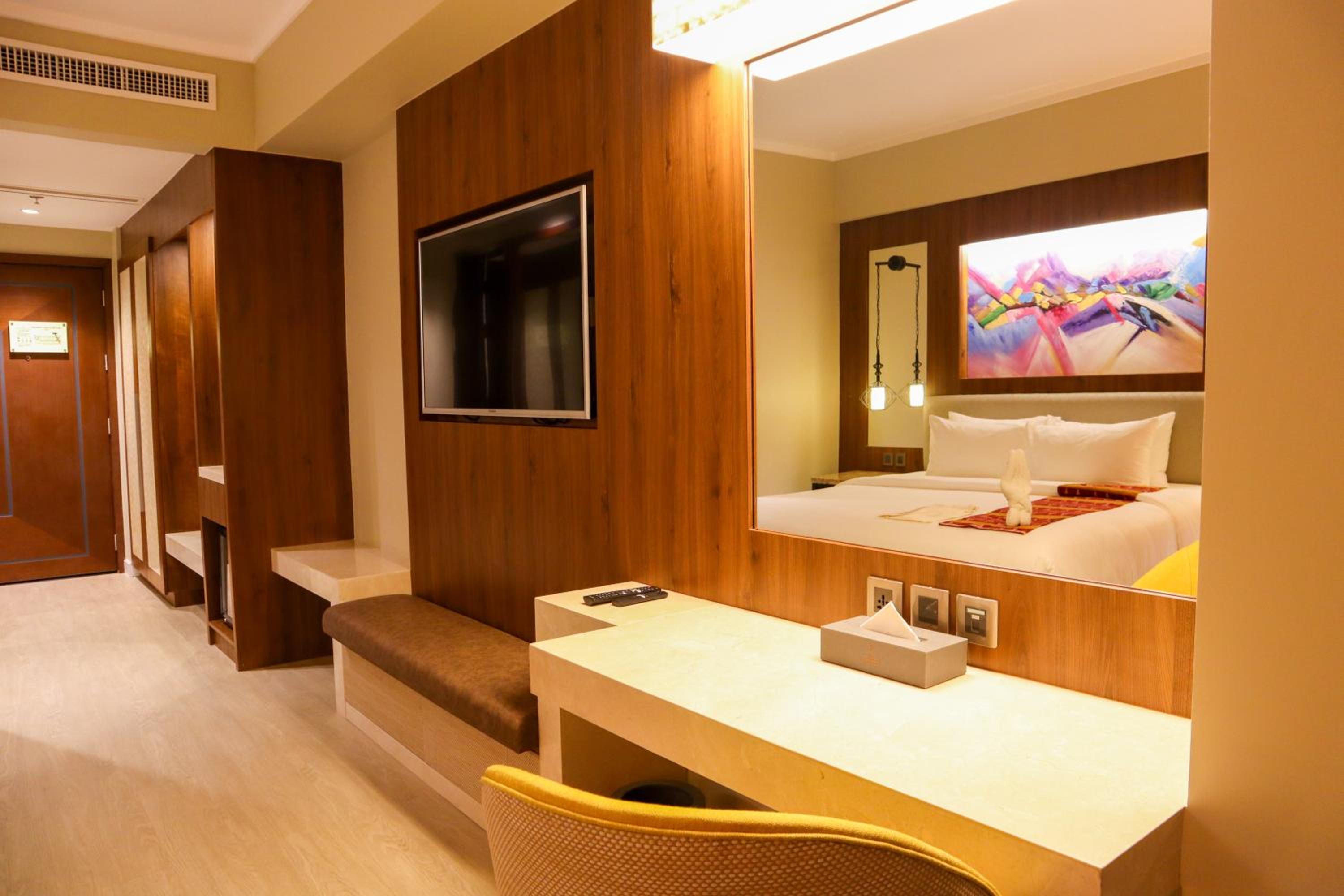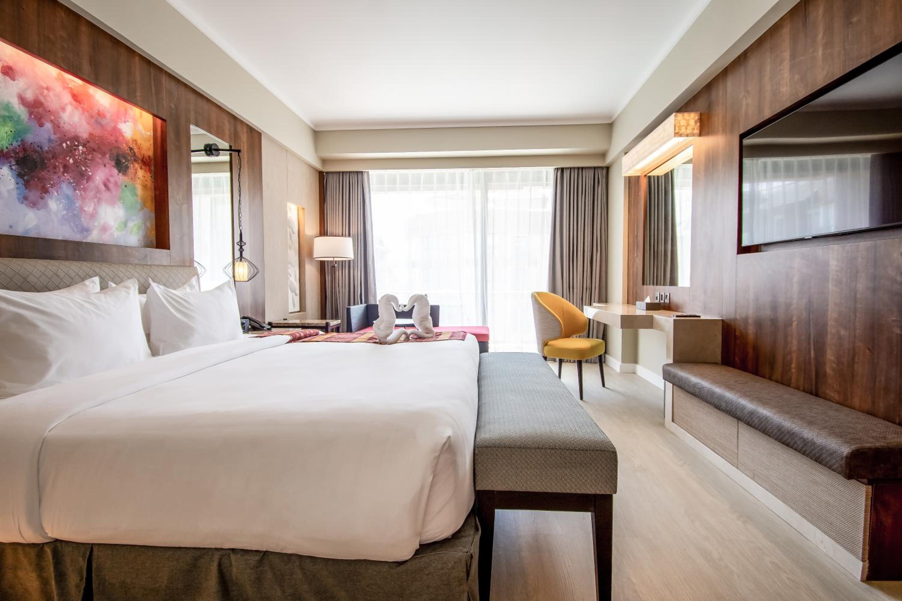 Indulge in air-conditioned rooms with modern comforts like flat-screen TVs, free WiFi, and plush bedding. Some rooms even feature private balconies for a touch of elegance.
