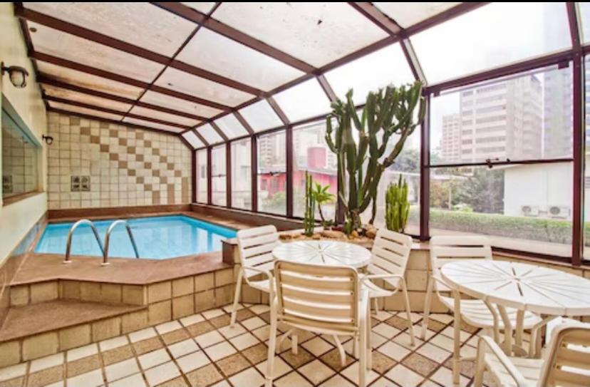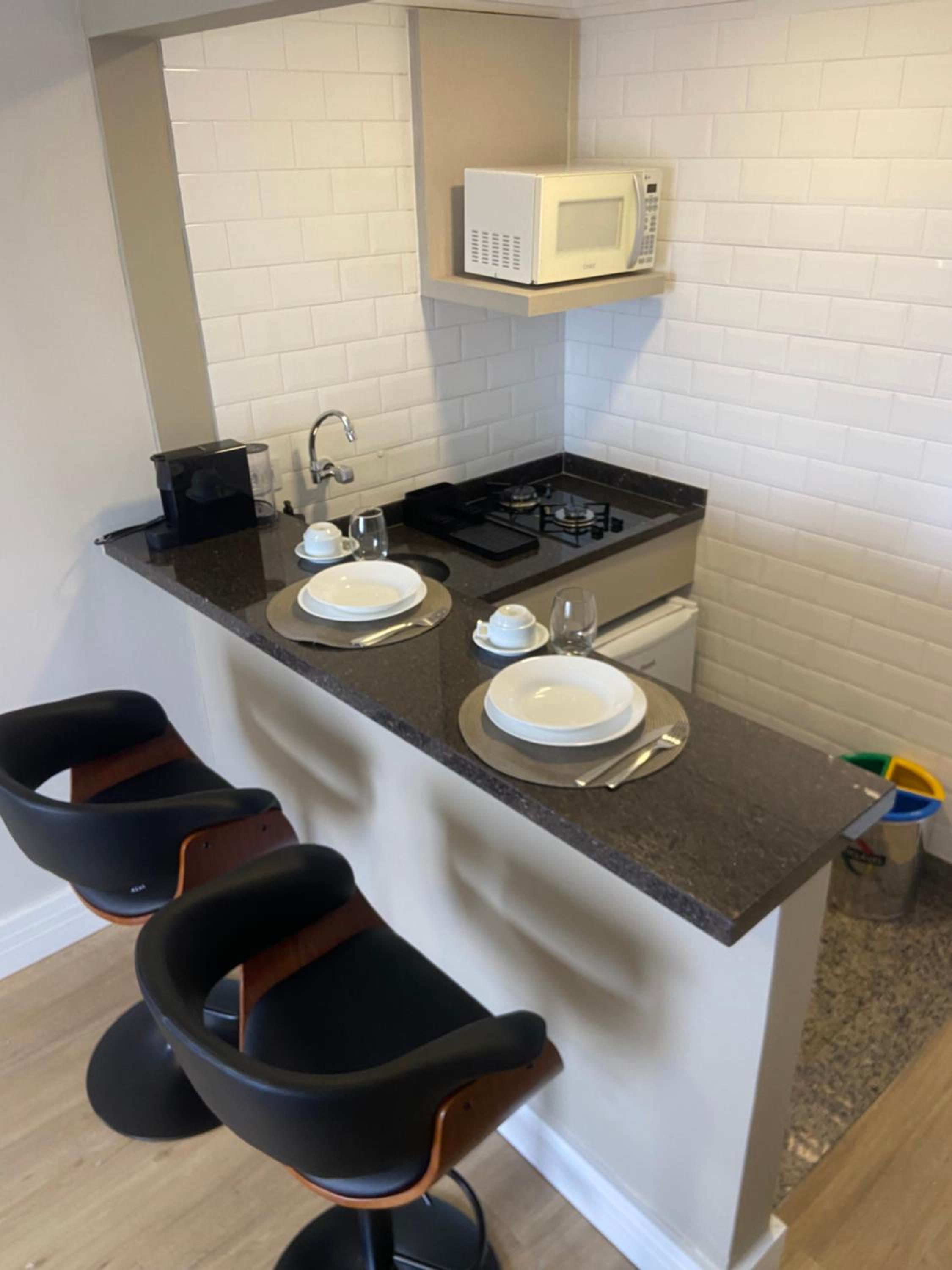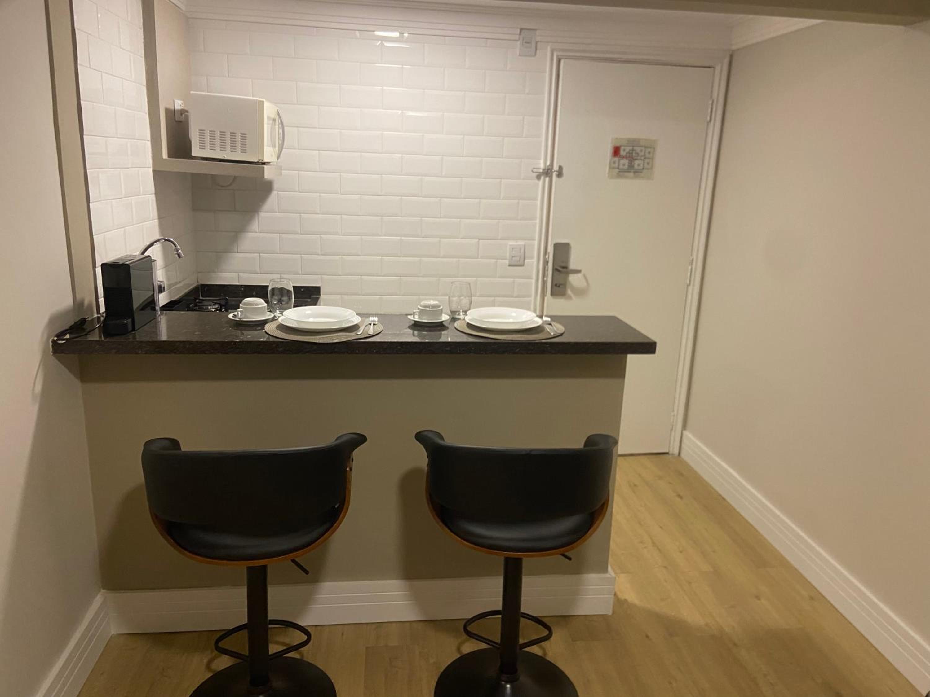 O apto é muito bem localizado e seguro, perto de vários restaurantes e padarias excelentes e famosos, supermercado... Checkin e chekout foi direto com a portaria. No condomínio tem portaria 24h, estacionamento com manobrista, mercadinho 24h, piscina coberta, academia, entrada por reconhecimento facial, serviço de limpeza nos aptos, dois elevadores. No apto tem microondas 20L, geladeira, fogão duas bocas, panela e frigideira, pratos/talheres/copos/taças/abridor de garrafa e saca rolhas, cafeteira nespresso, ar condicionado, sofá confortável, cama queen, travesseiros cobertor e lencois de hotel, banheiro espaçoso, muitos espelhos, TV, cortina blackout. O espaço é muito confortável e fica em um andar alto, o que isola o barulho. Foi muito fácil pegar carros de aplicativo na porta. Conhecemos muitos restaurantes a pé.