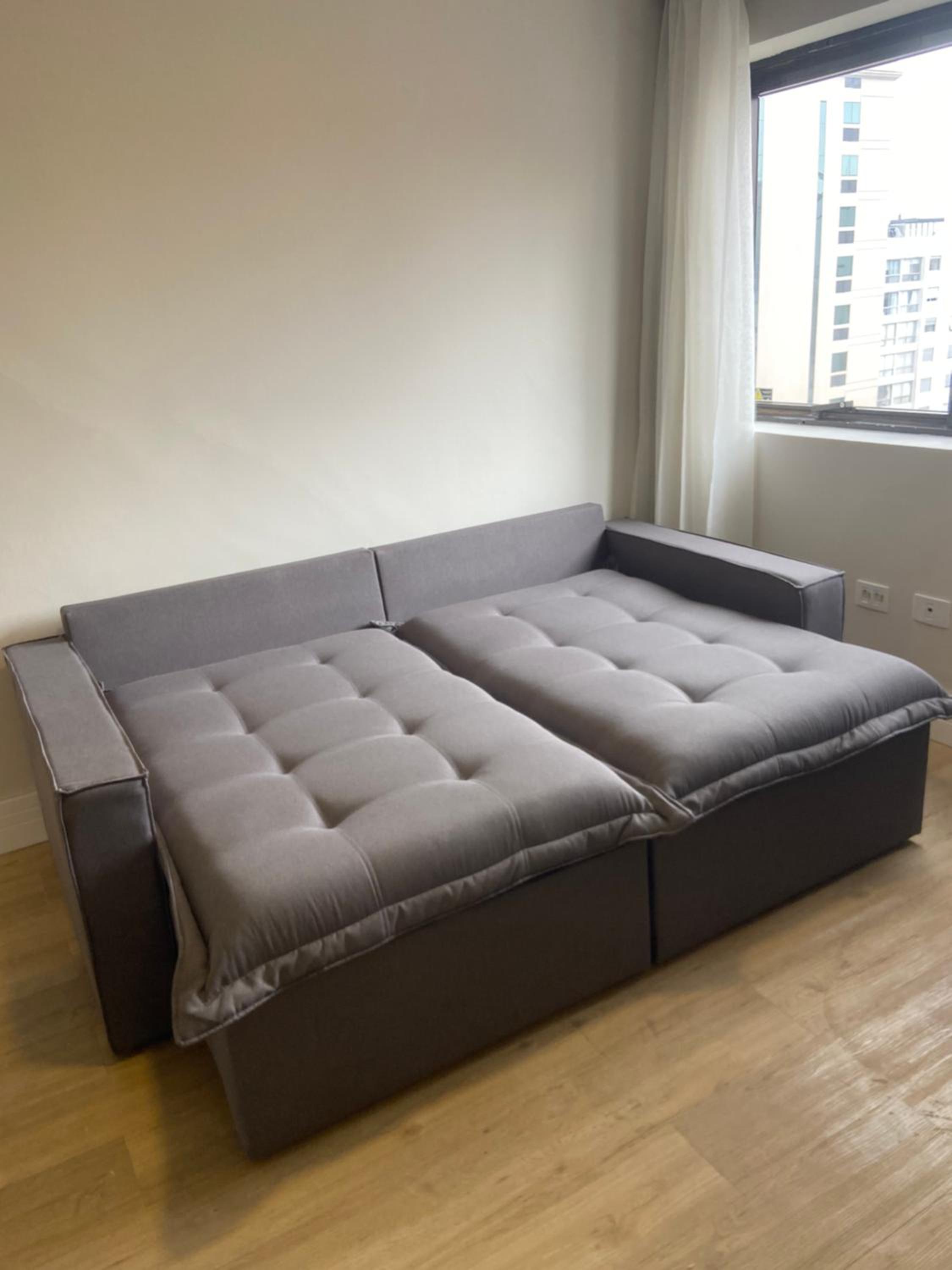 Colchão de casal desconfortável. Não havia cama extra, somente um sofá.
