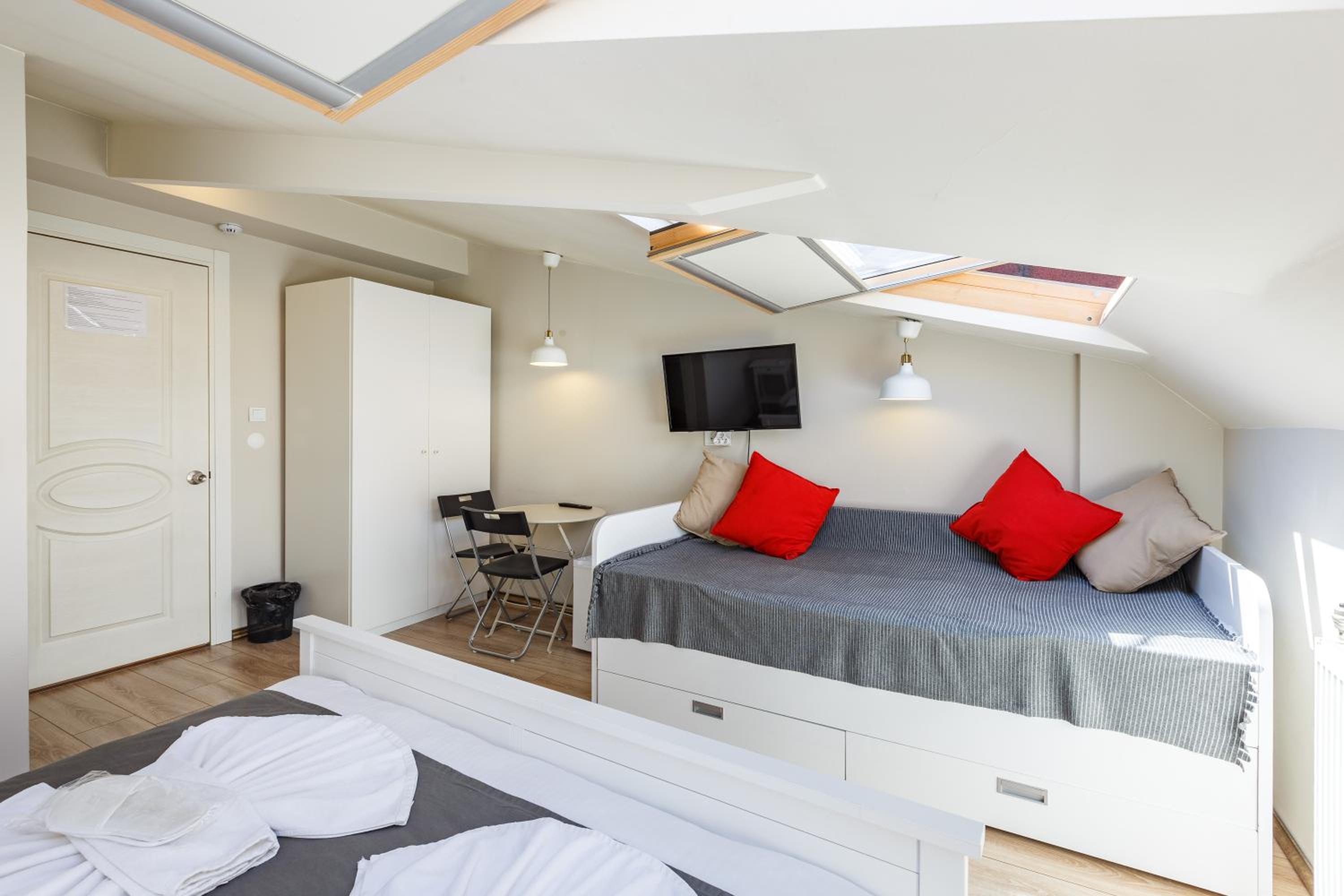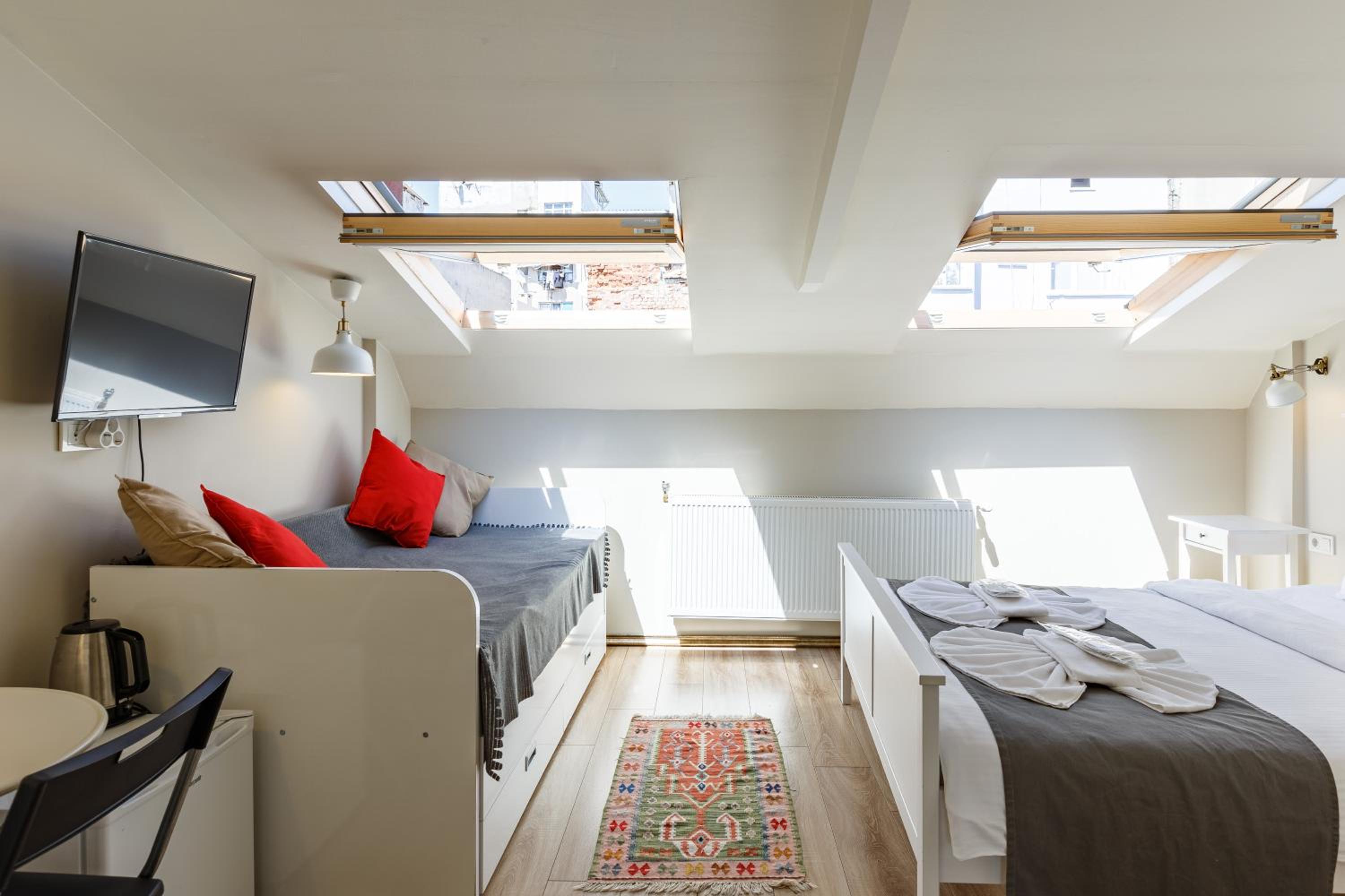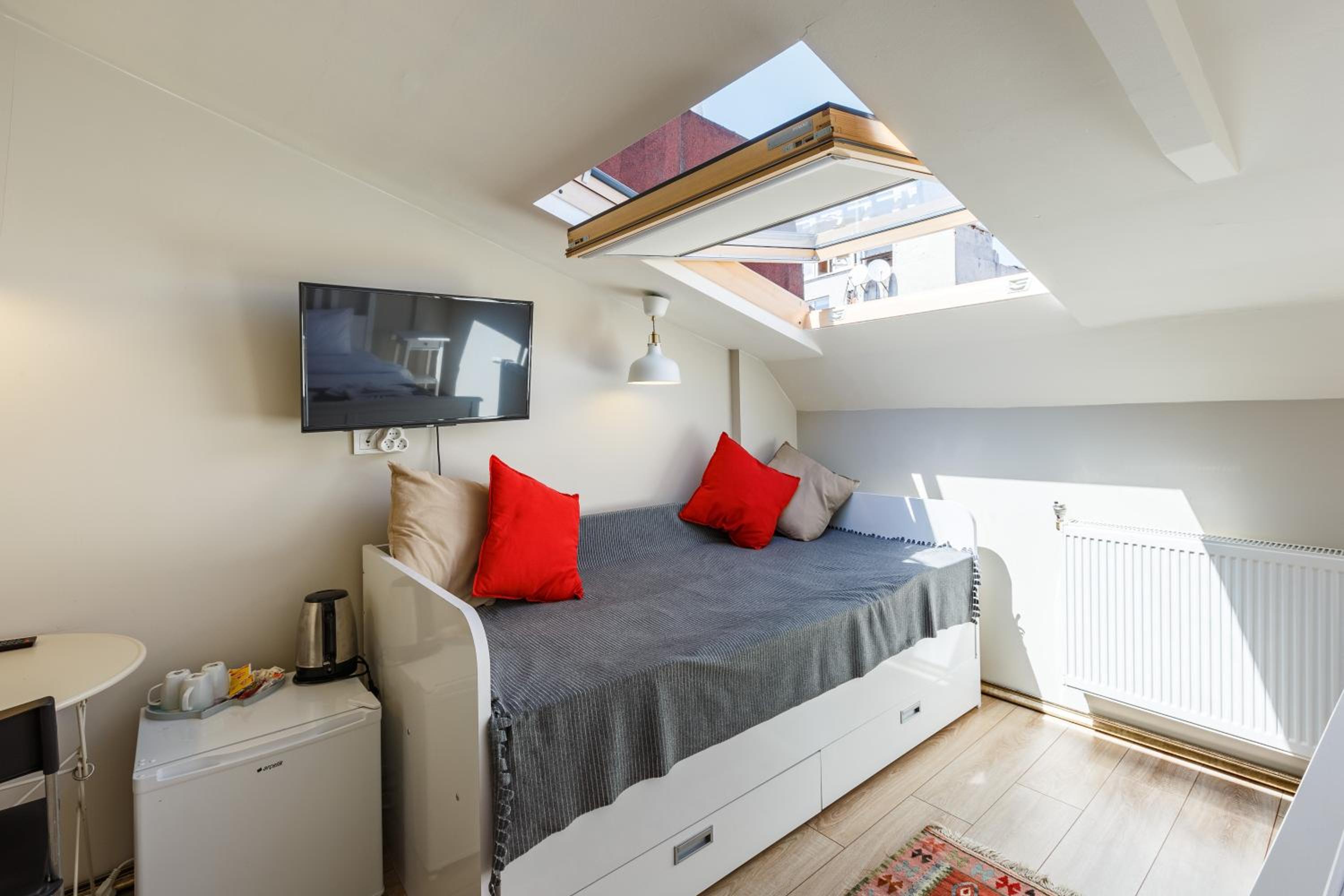 L'hotel è in una posizione centrale e vicino a molti mezzi pubblici, oltre che a negozi e ristoranti. I punti principali di Sultanahmet si possono raggiungere con una passeggiata. La stanza era molto carina, con tutto il necessario a disposizione (come asciugacapelli, sapone, ciabatte). La colazione viene servita a partire dalle 8.30, e include cose dolci e salate. Alla reception c'è sempre qualcuno a ogni ora del giorno e della notte.