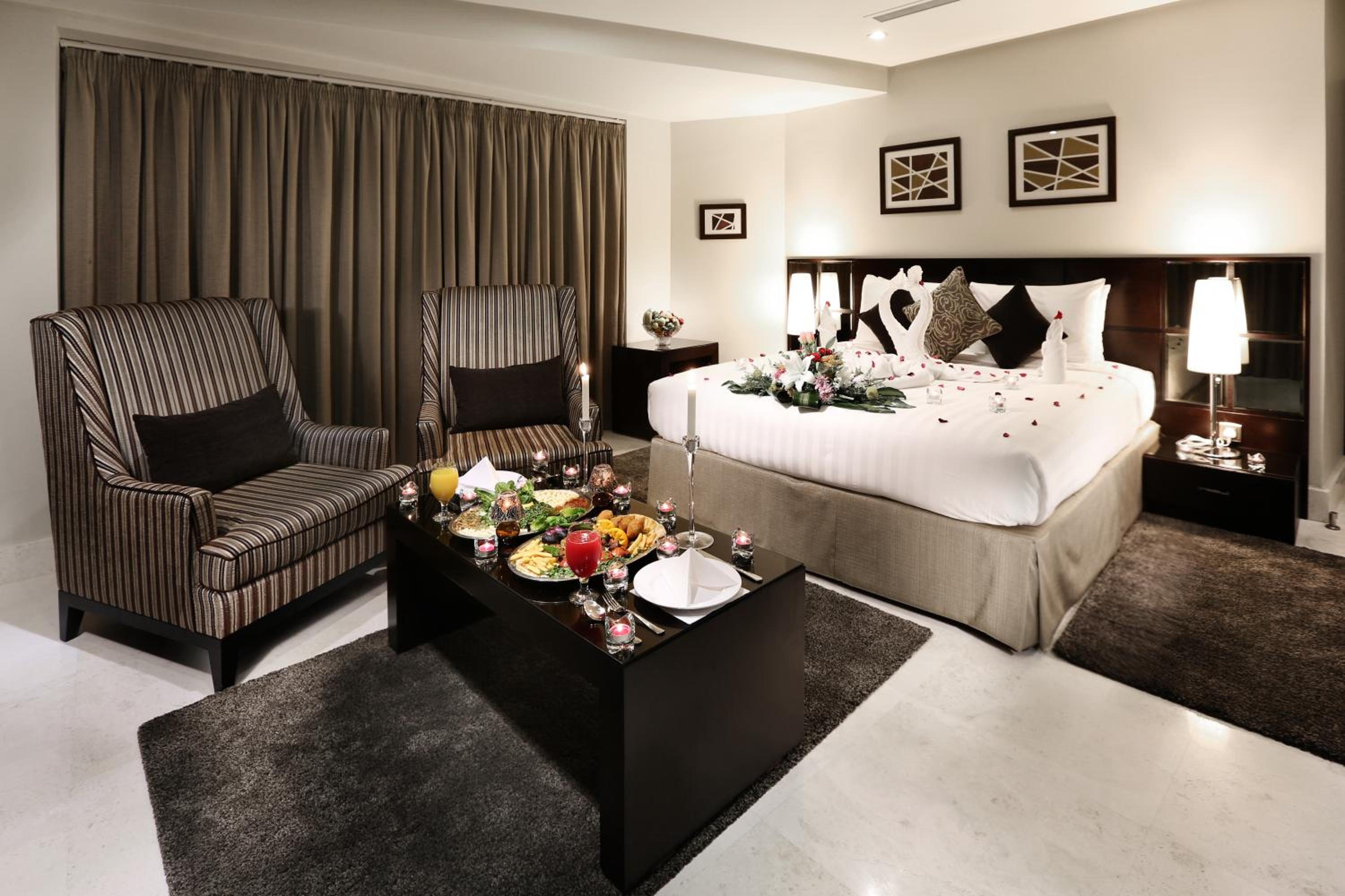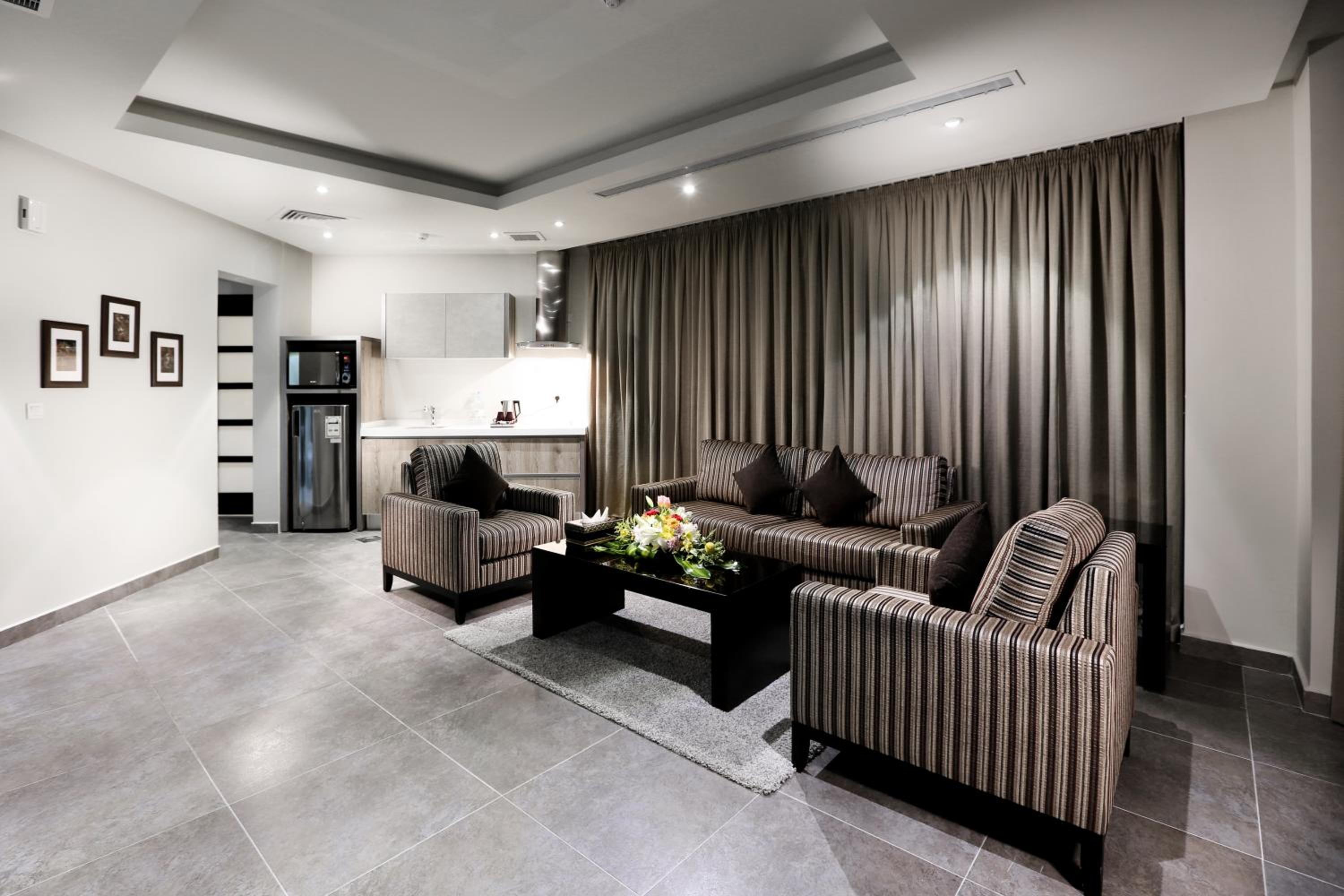 Indulge in a peaceful stay at Aswar Al Olaya Hotel Suites, centrally located in Al Khobar. Unwind in our soundproof rooms designed for your comfort and relaxation.