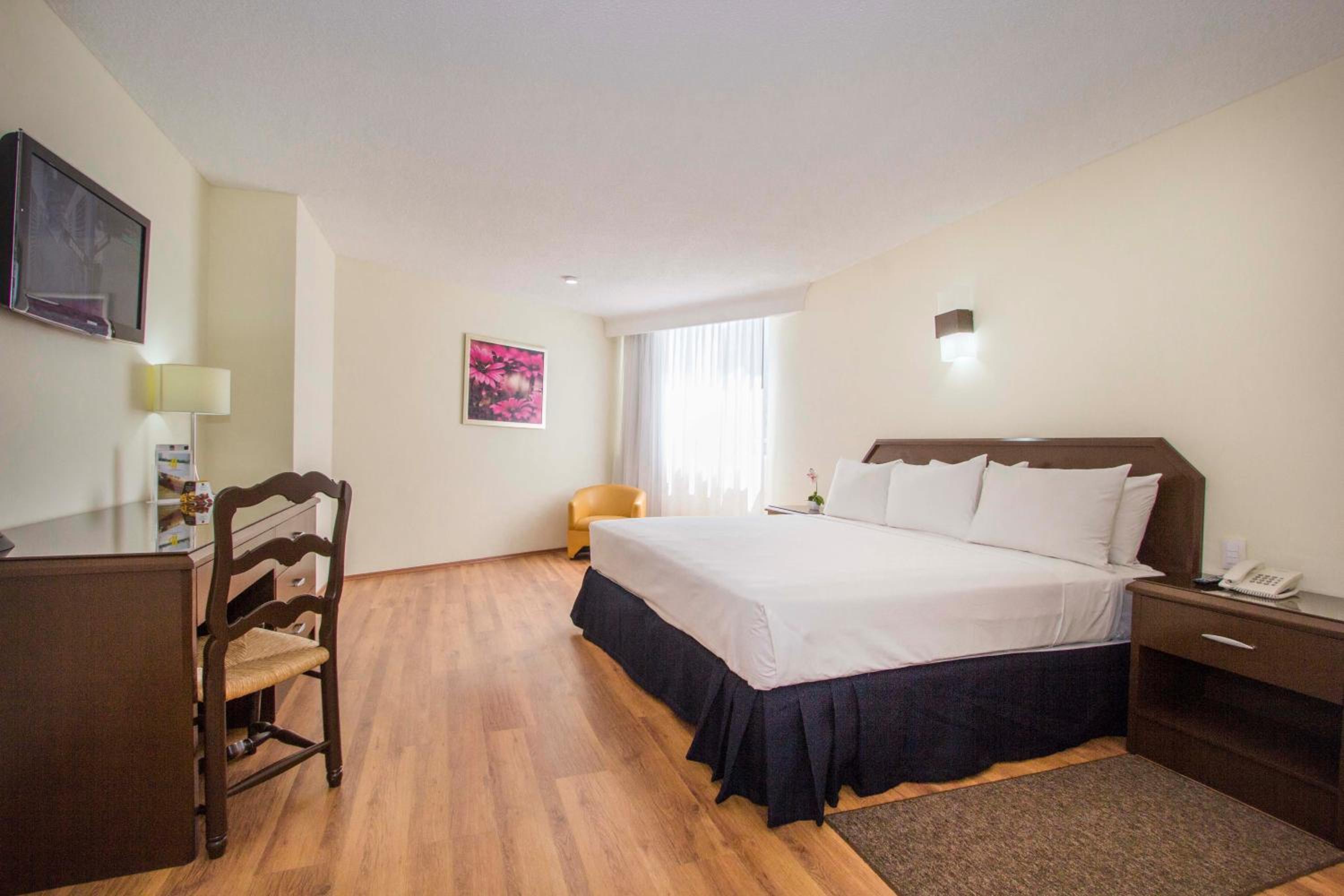 Hotel Valle de Mexico Toreo offers elegant rooms with modern amenities, including a work desk, cable TV, and private bathrooms.