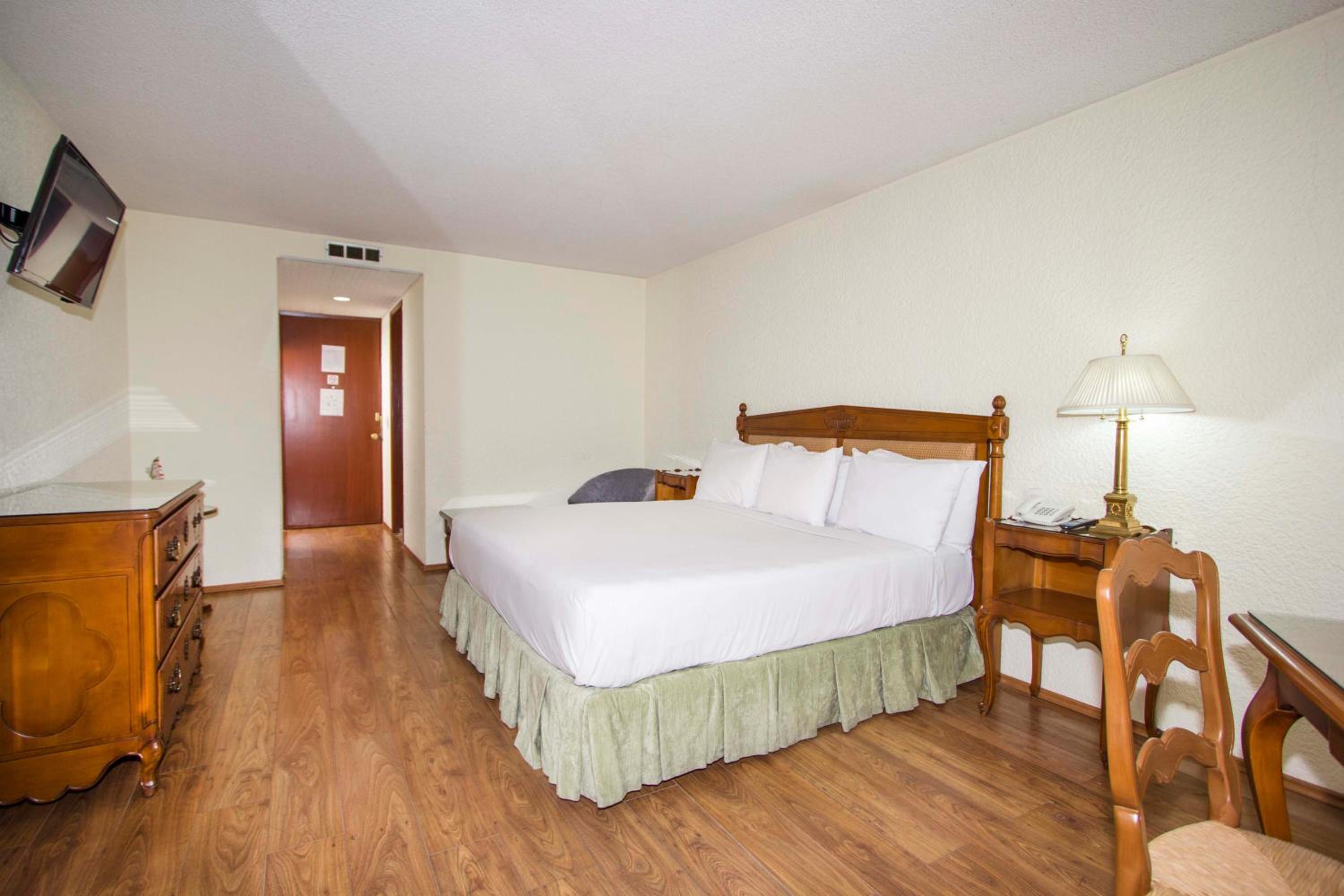 Las habitaciones están horribles y viejas, las camas duras, la tele solo tiene 5 canales y se le va la señal, el lavabo tiró agua todo el tiempo, el excusado es como de baño público, el papel de baño te lo ponen usado, el personal del estacionamiento es grosero y ni te sientes seguro de dejarle el carro, las fotos de la habitación nada que ver con la que me dieron, todo huele a tierra, las cortinas no las lavan.
